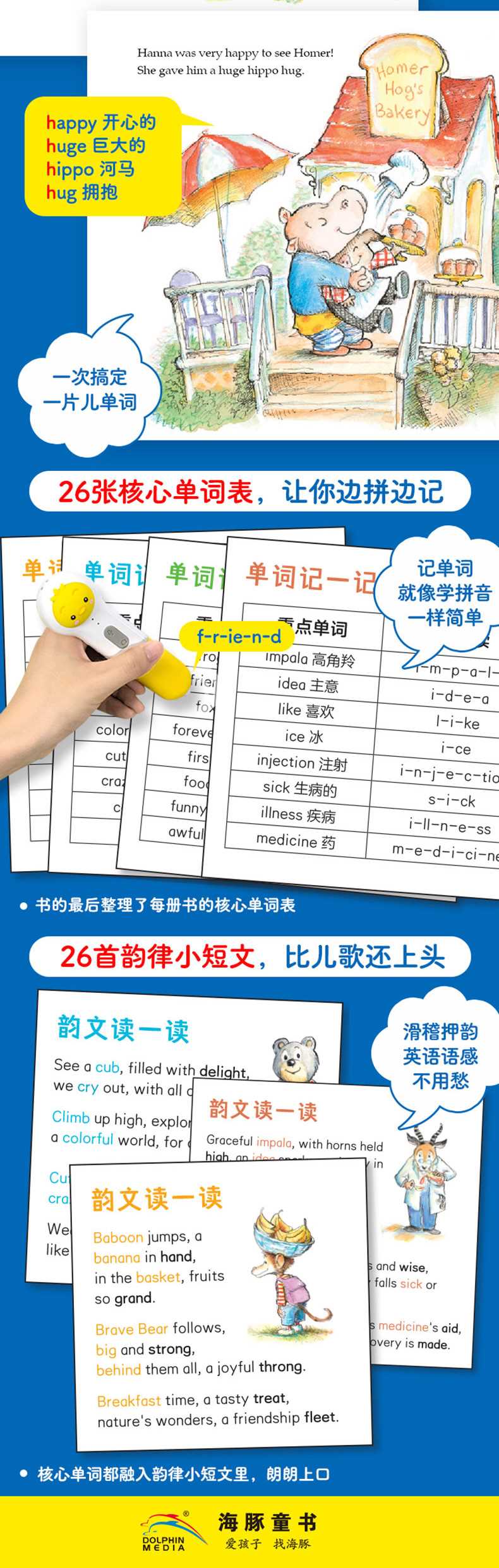 《神奇单词双语绘本玩转A TO Z》是《帕丁顿熊》插画师R.W.阿利的又一动画绘本巨献,超可爱又有童趣的画风,每个孩子都会喜欢!26个故事聚焦孩子成长过程中家长关心的方方面面,有性格养成、习惯培养、安全教育、情绪管理、心态建设等等,解决3~6岁孩子成长中的育儿难题。每本故事聚焦解决一个字母相关的英语拼读难题,26本书聚集了接近800个重点单词的拼读,帮助英语初级阶段的孩子进行单词启蒙!