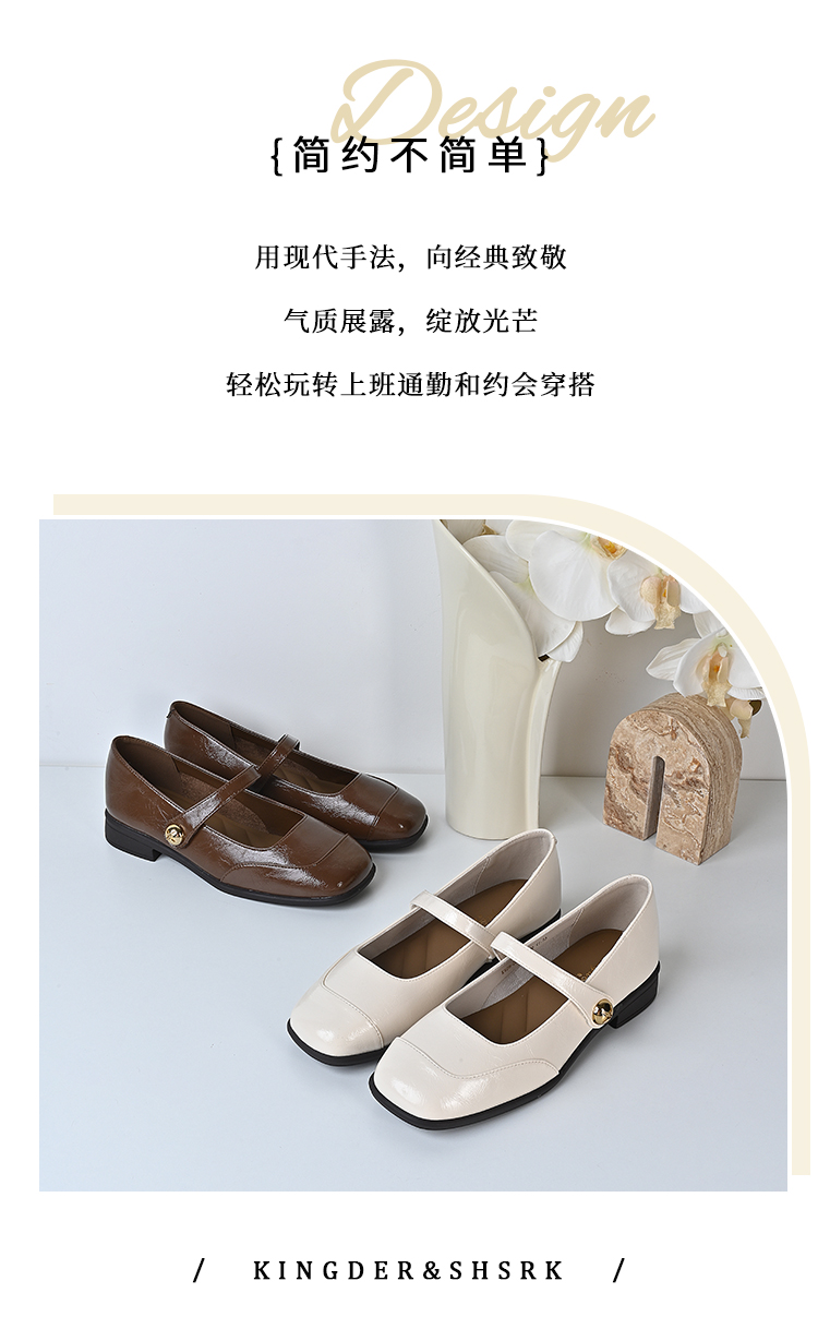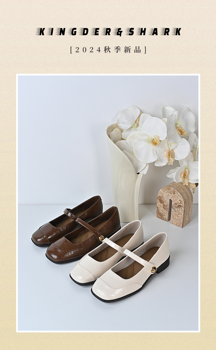 经典鲨2024年秋季新品复古方头简约气质舒适平底通勤单鞋女KW89-D37111