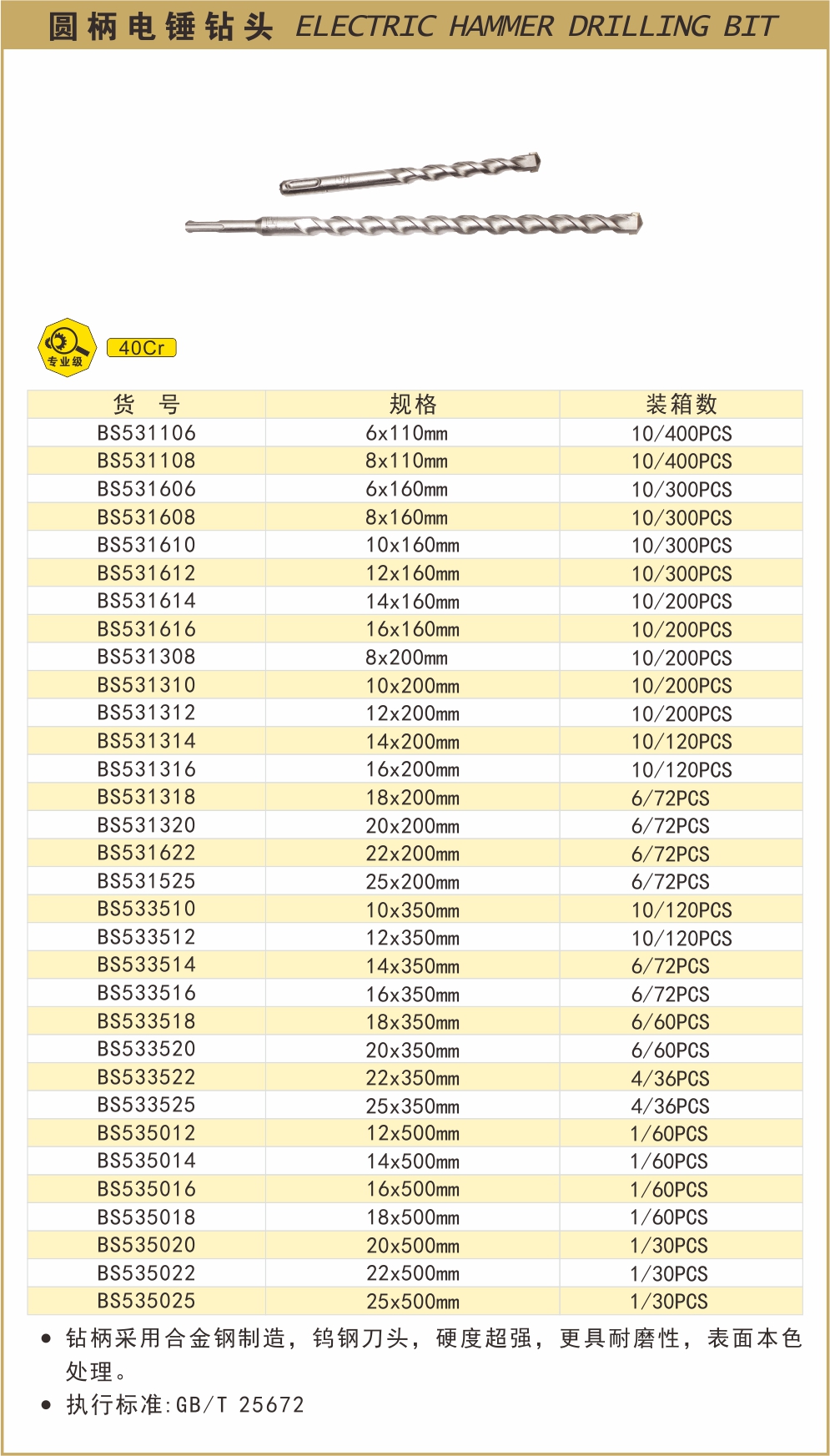 波斯 圆柄电锤钻头22*350mm-T BS533522