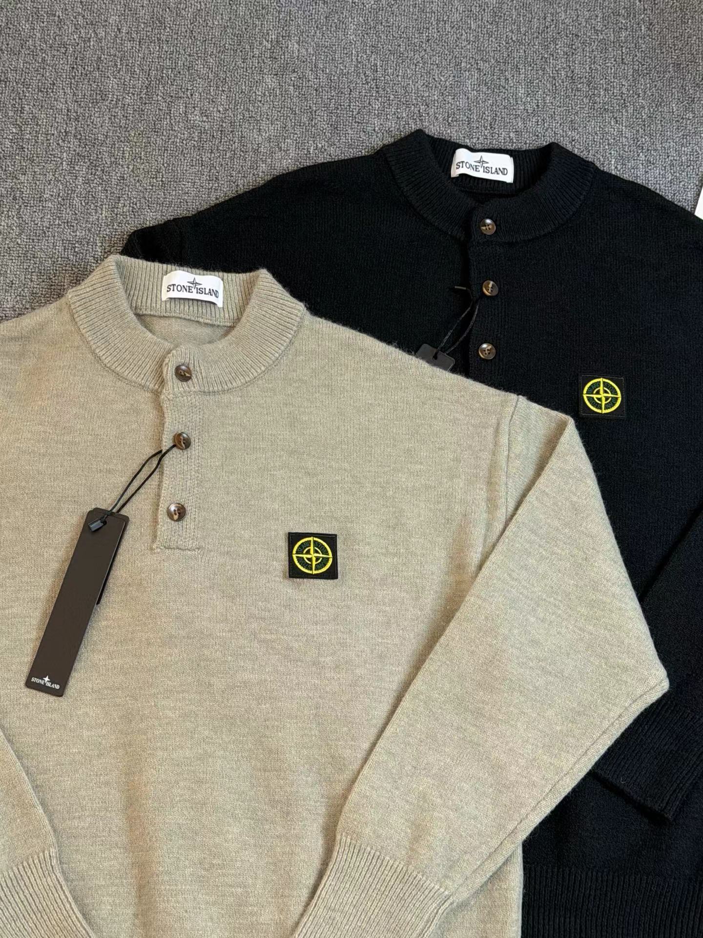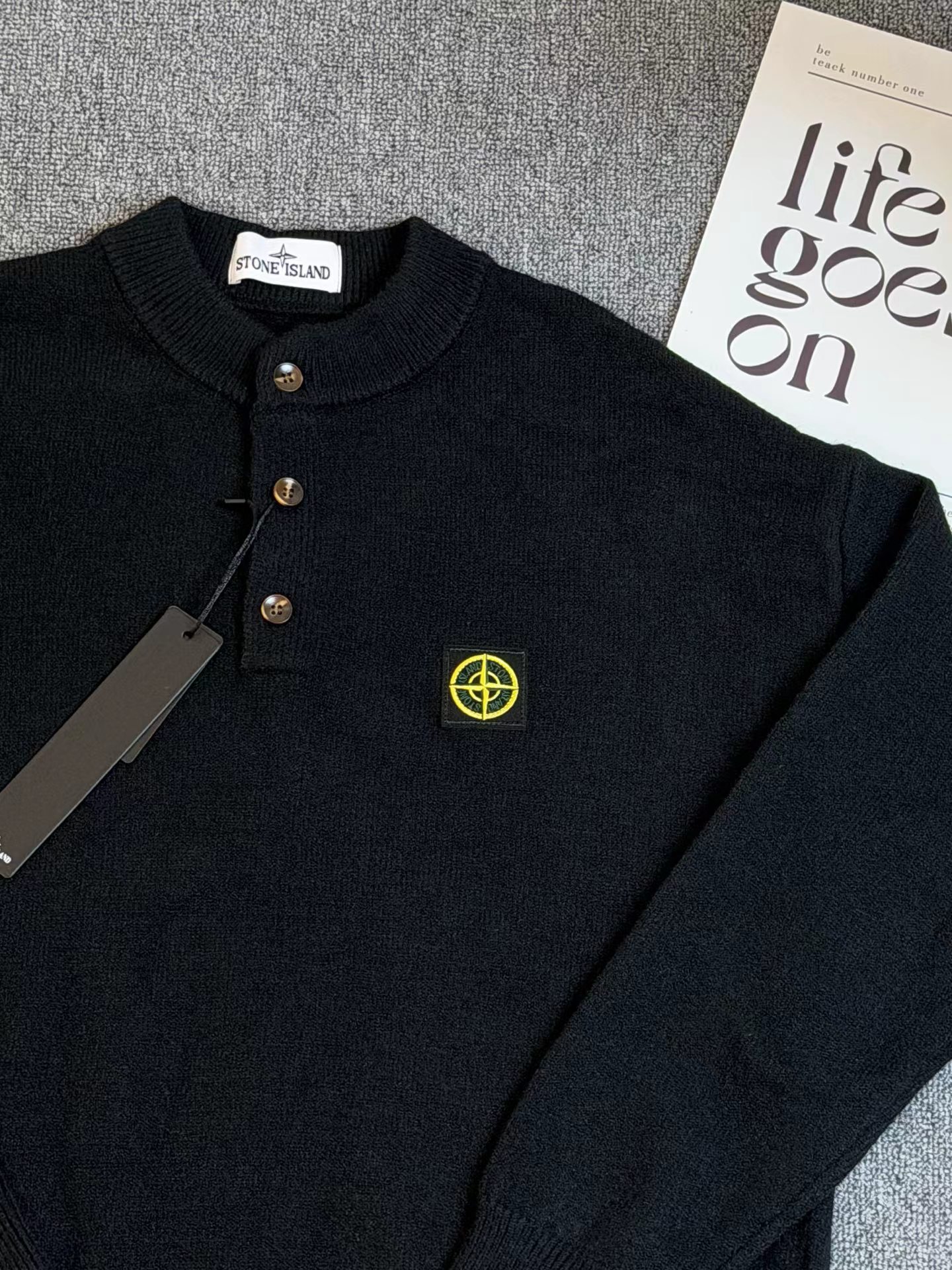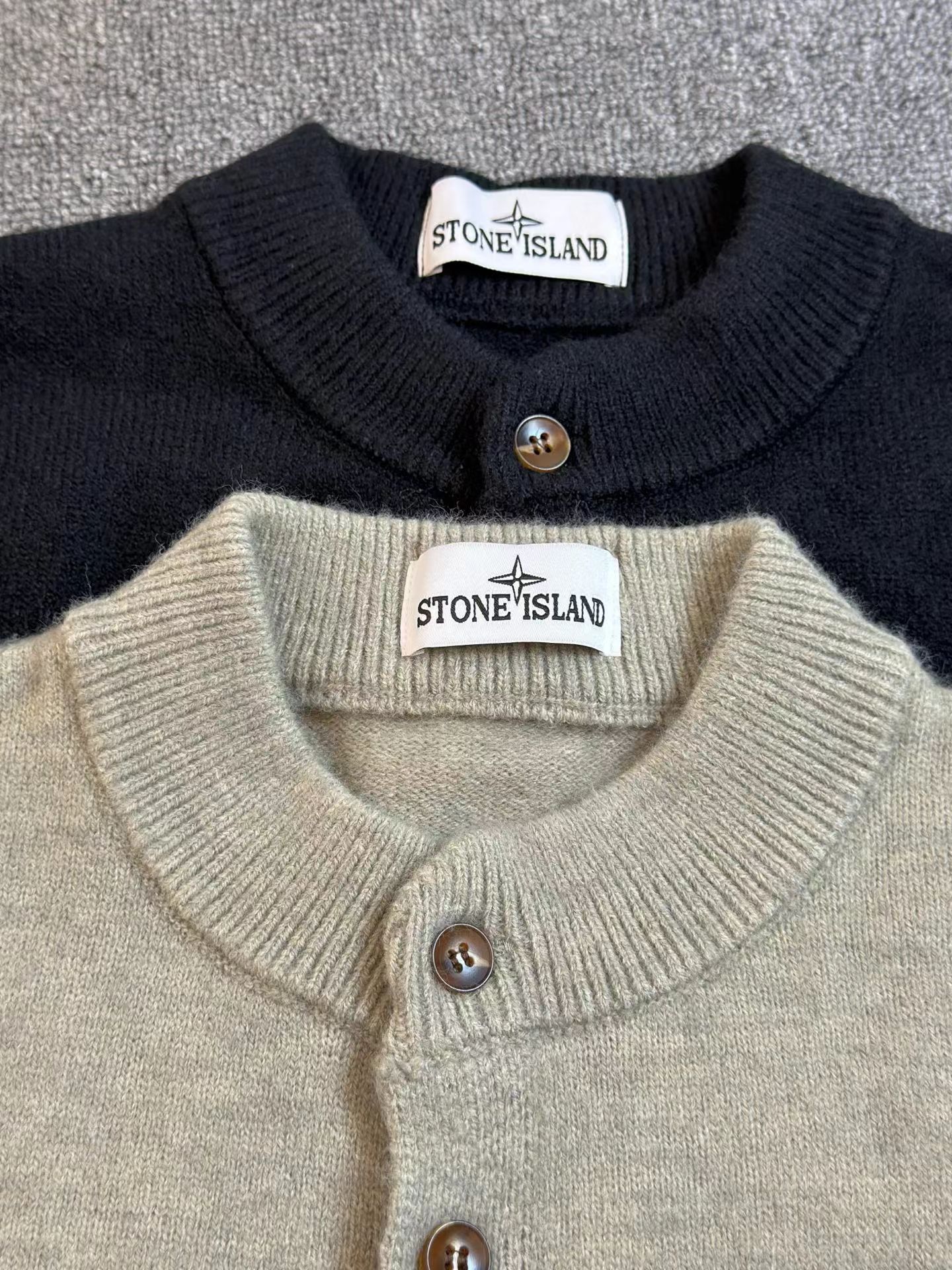 25ss羊绒针织衫户外机能25新作 羊绒衫推荐 宽松圆领半开版型 半开纽扣设计 随意穿搭 上身慵懒舒适 手感软糯丝滑 很有分量的一款重磅针织衫 黑 咖色 十分简约百搭 1:1定制植绒胸章 细节质感满满 秋冬穿搭 毛衣必不可少 慵懒随性的一款纯色毛衣开衫推荐
