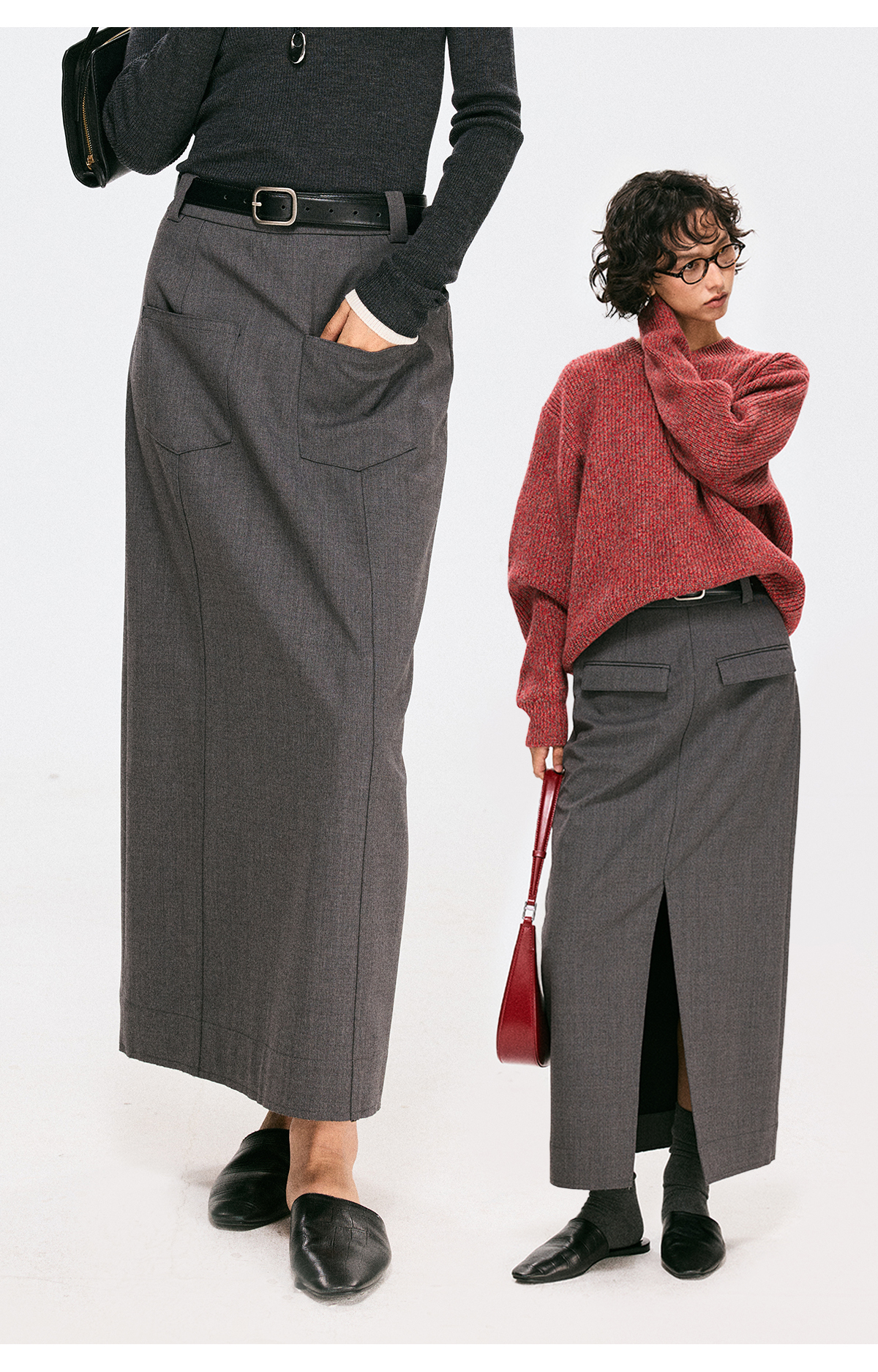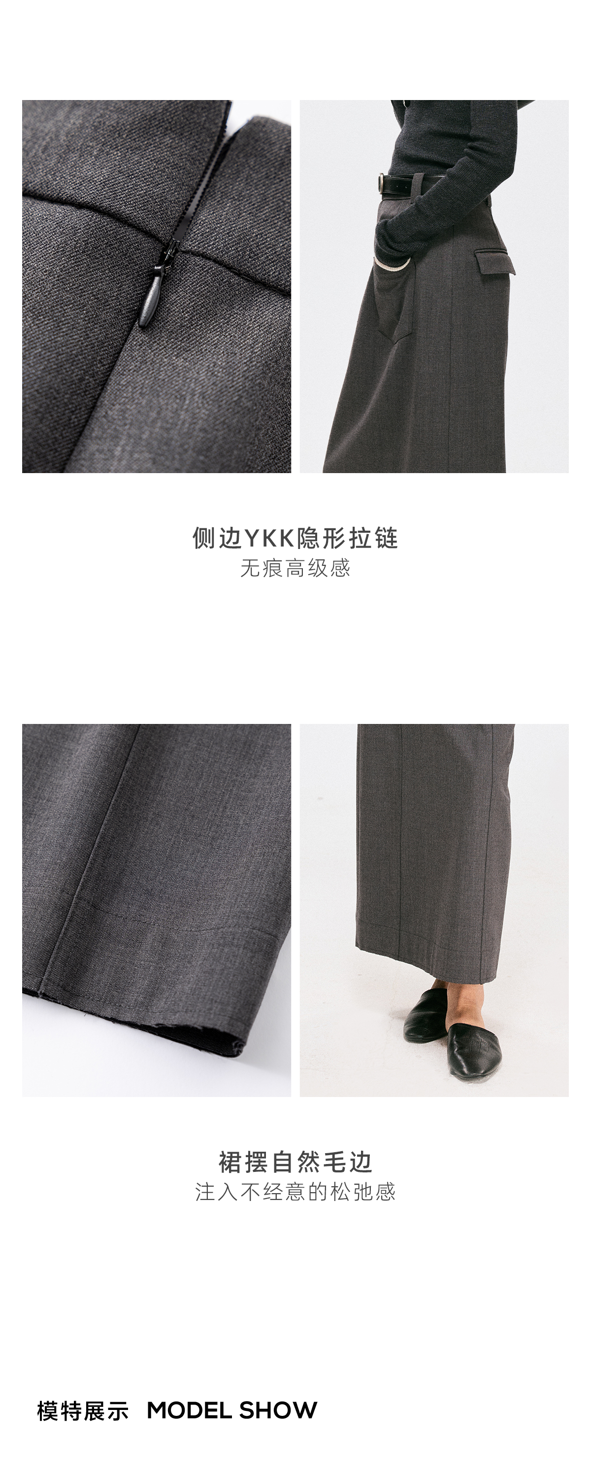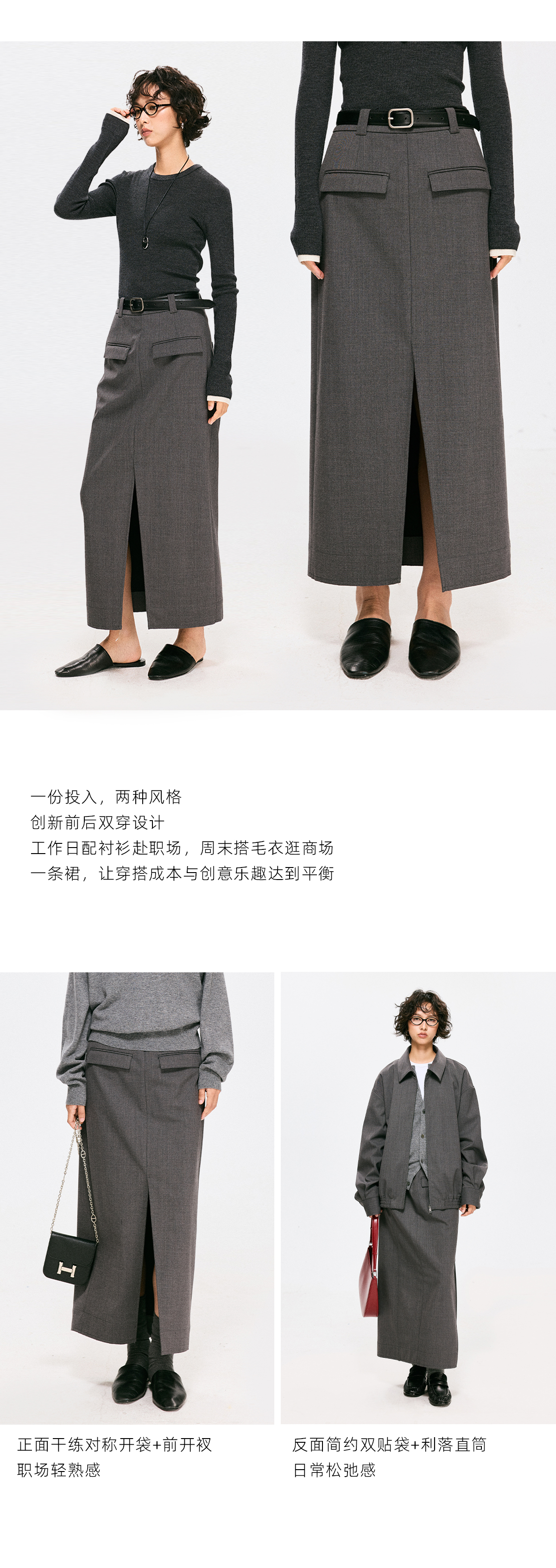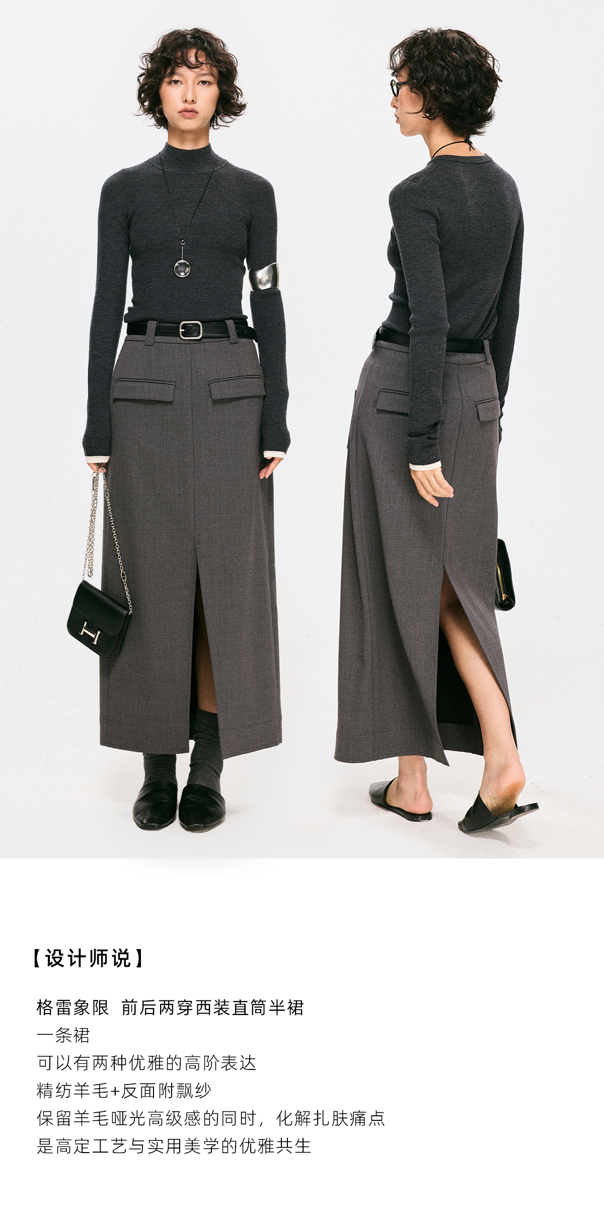 棉仓3661018001-【格雷象限】纸片人含羊毛半身裙前后两穿H版型