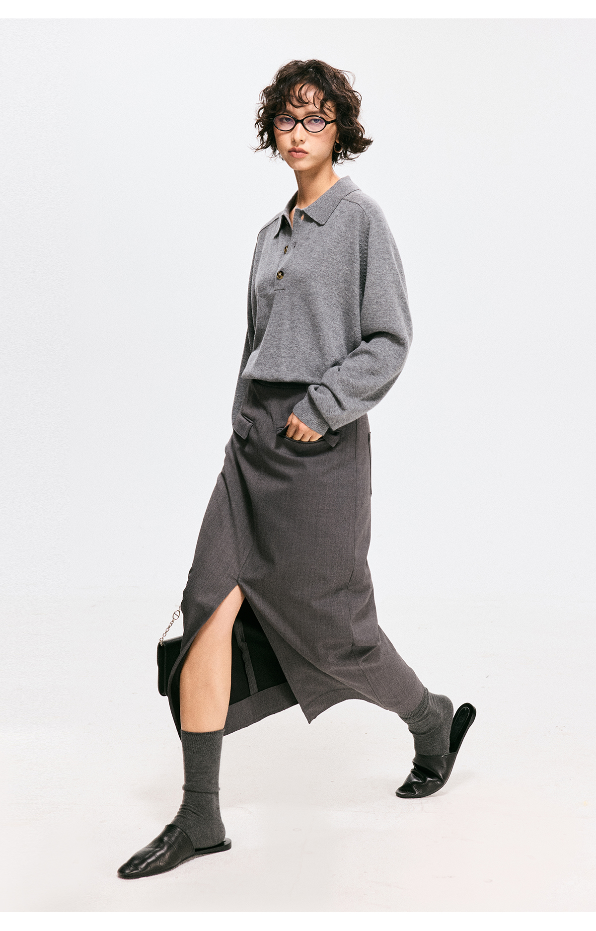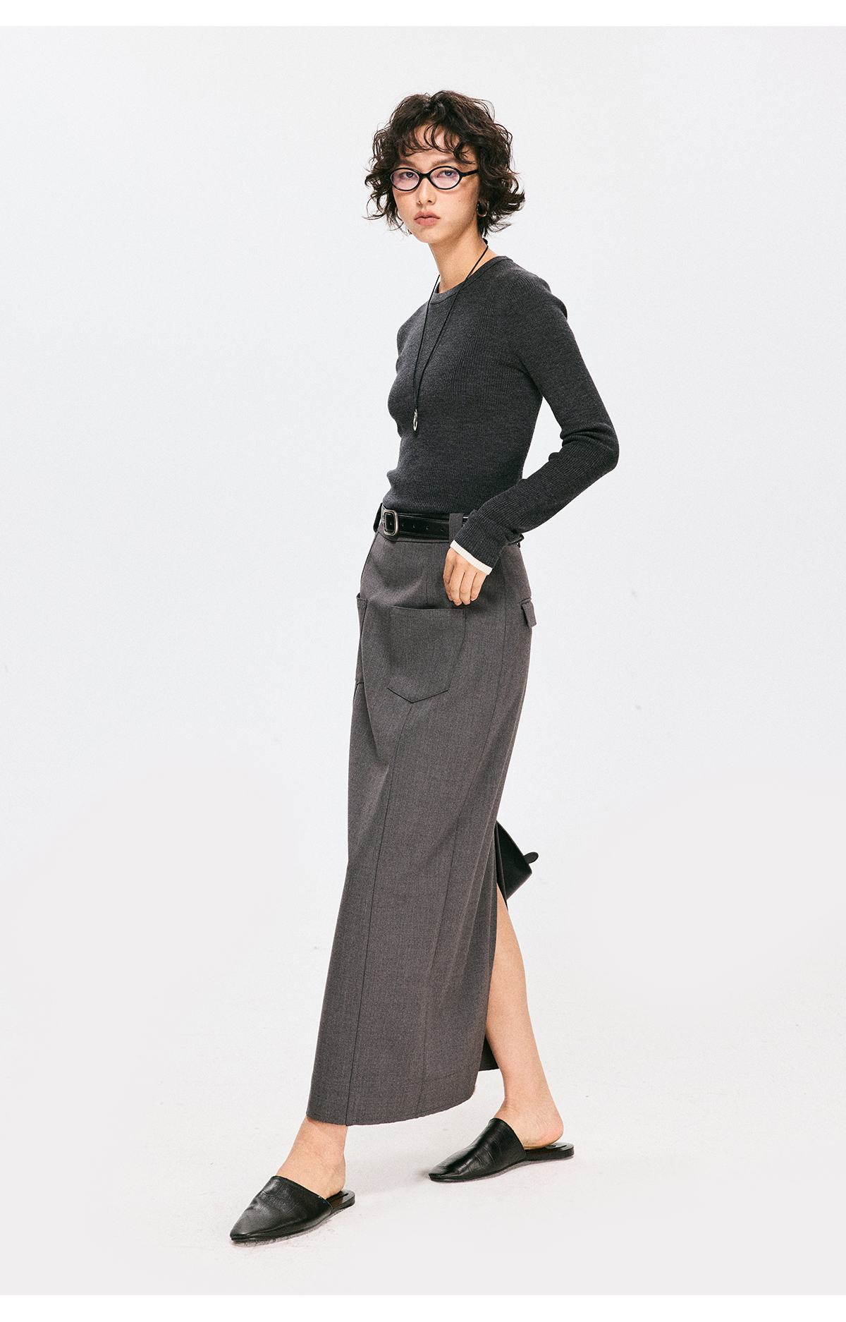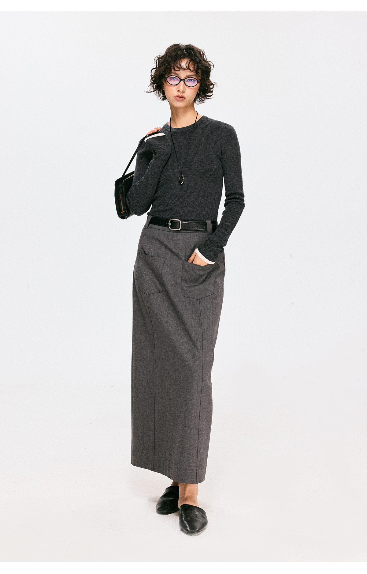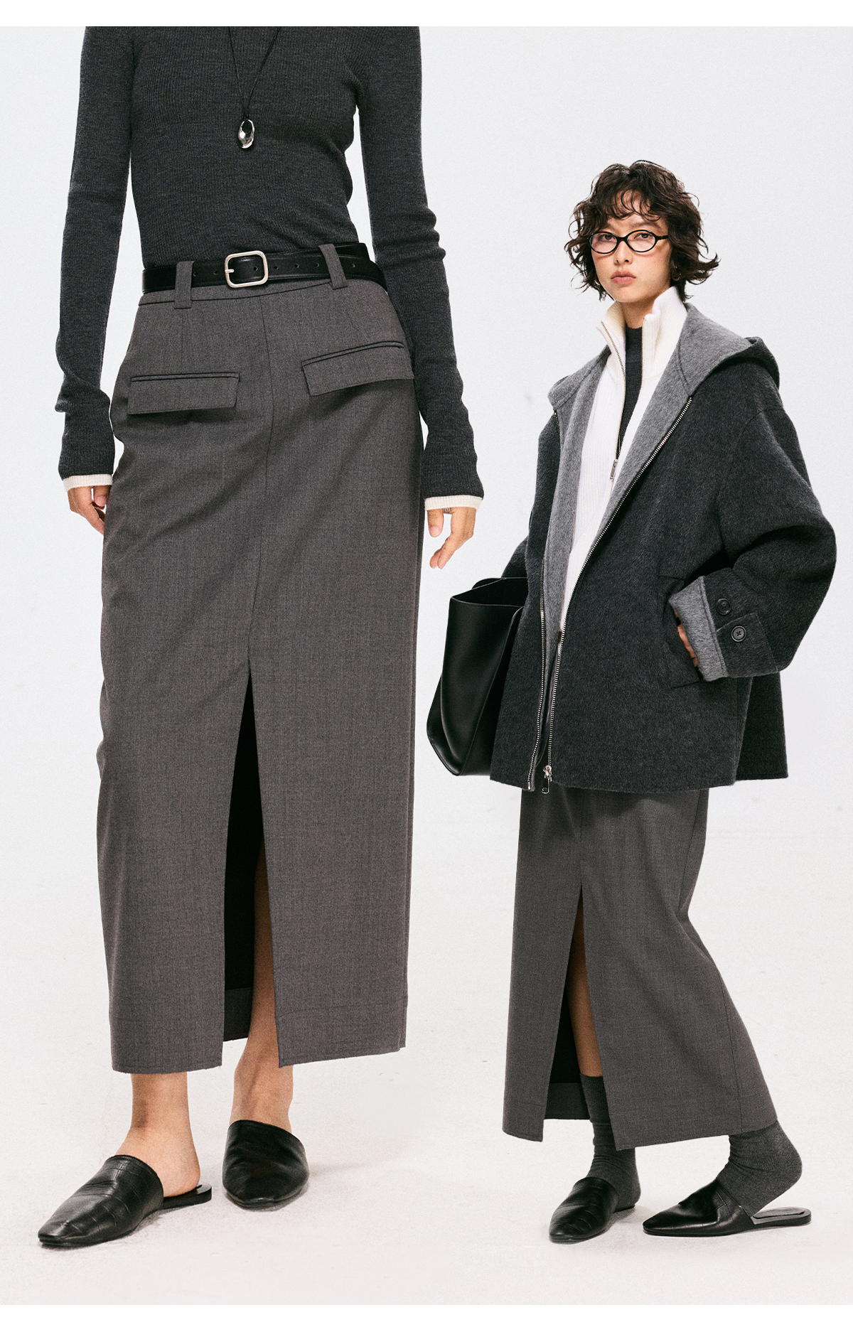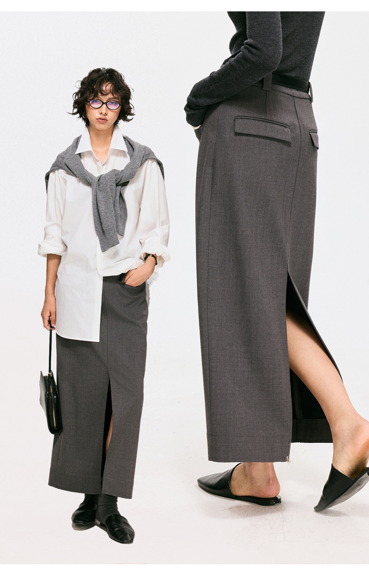 棉仓3661018001-【格雷象限】纸片人含羊毛半身裙前后两穿H版型