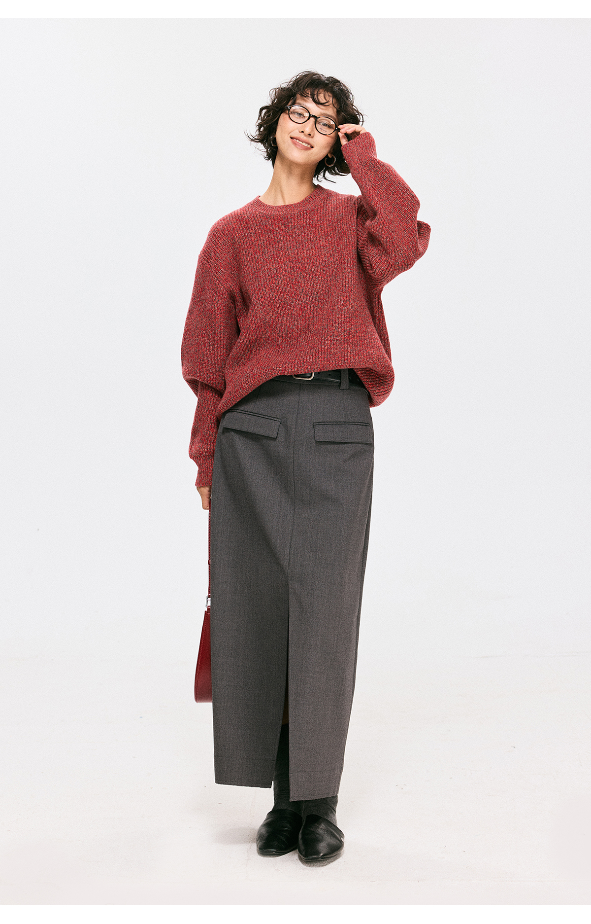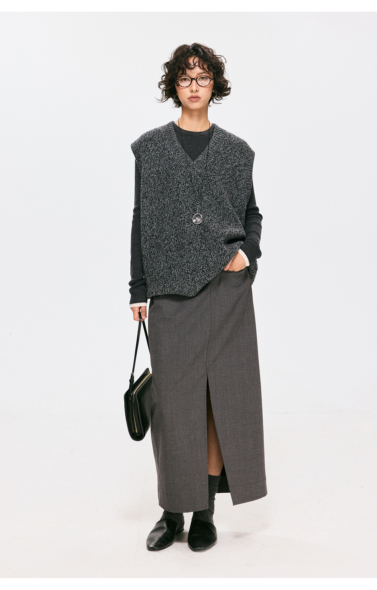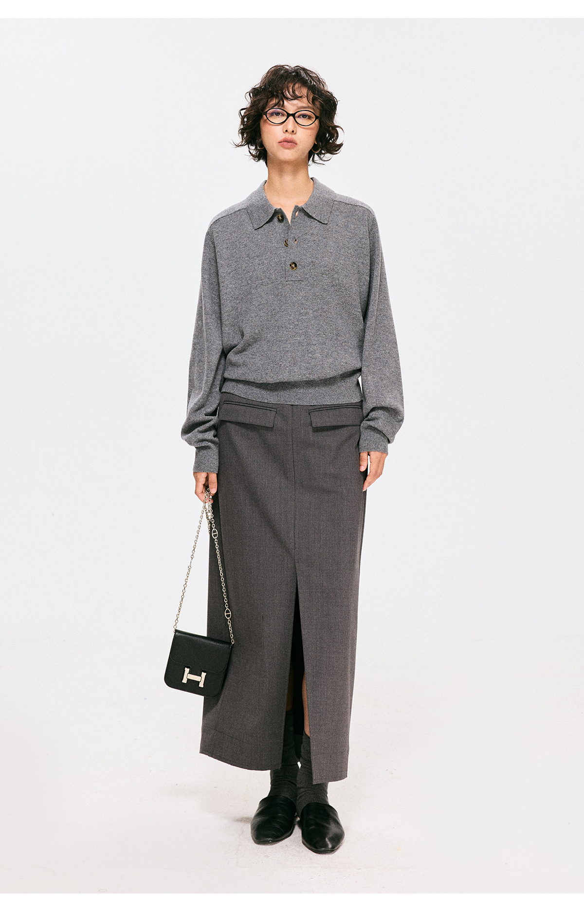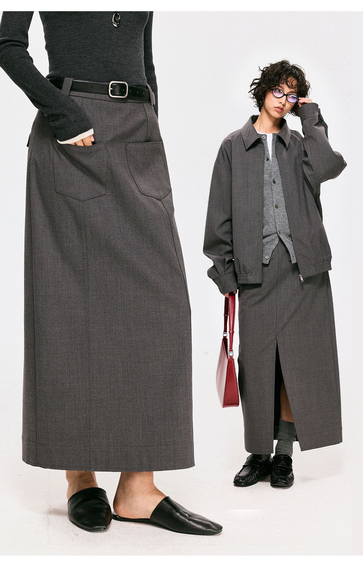 棉仓3661018001-【格雷象限】纸片人含羊毛半身裙前后两穿H版型