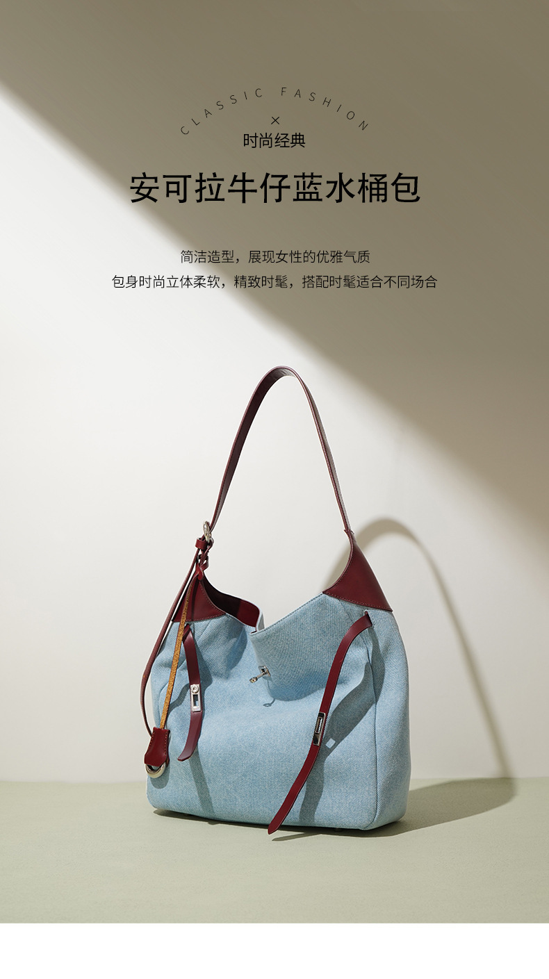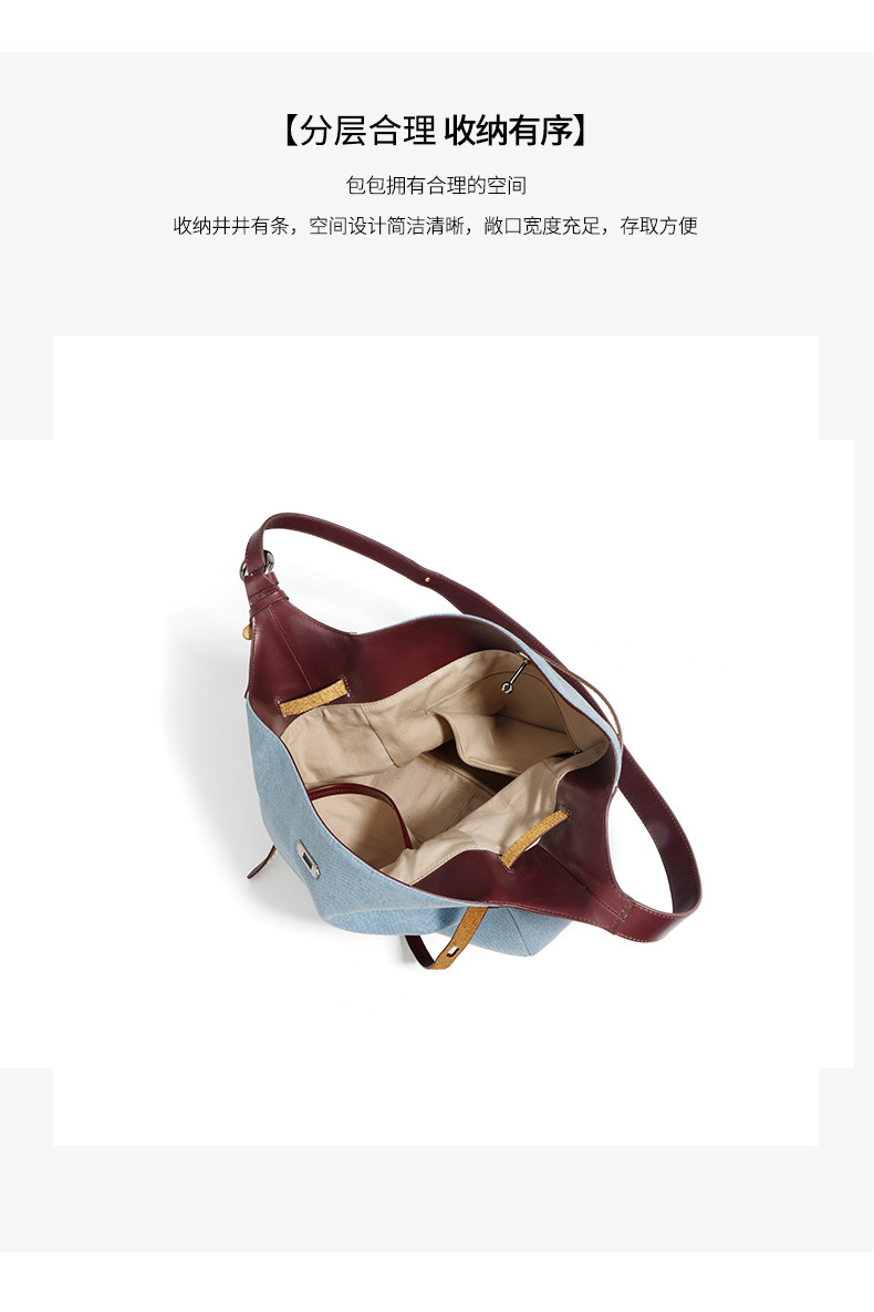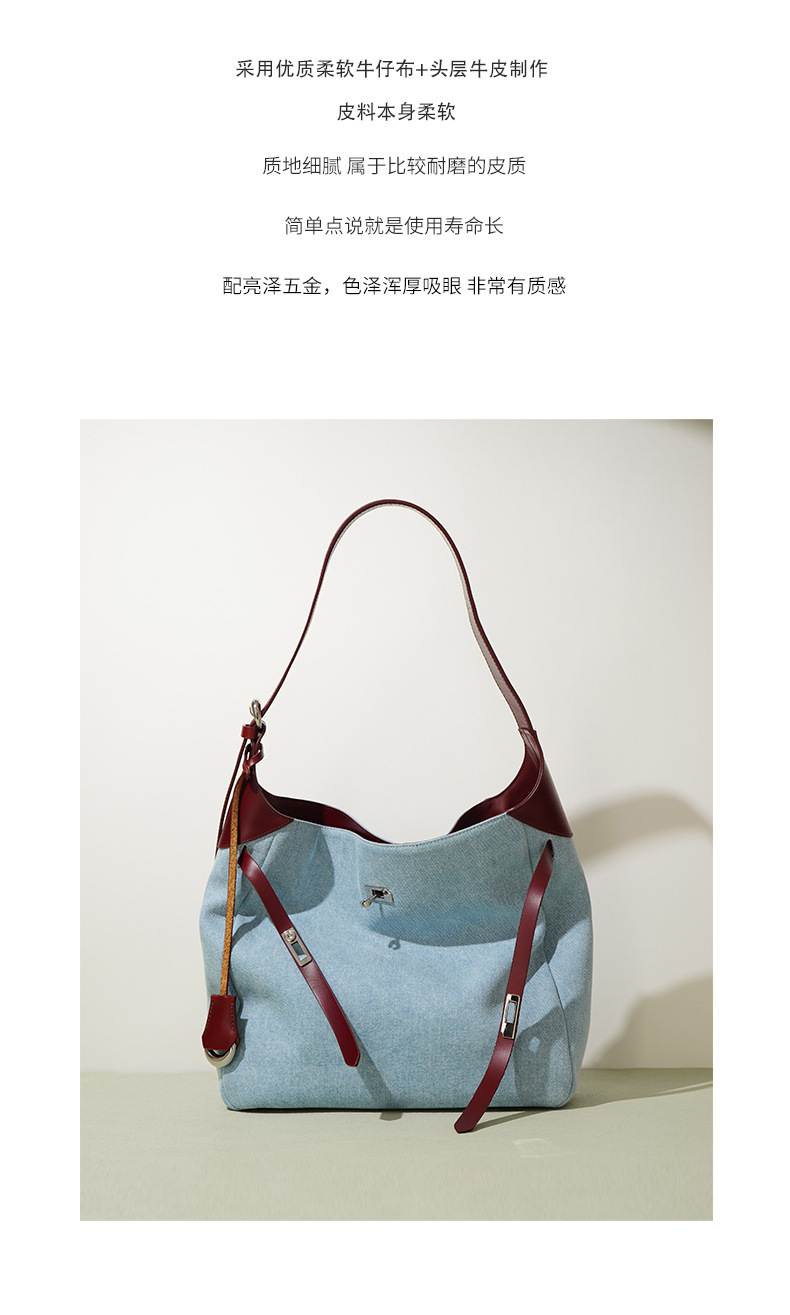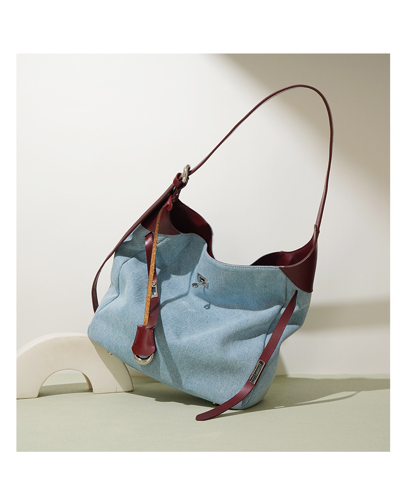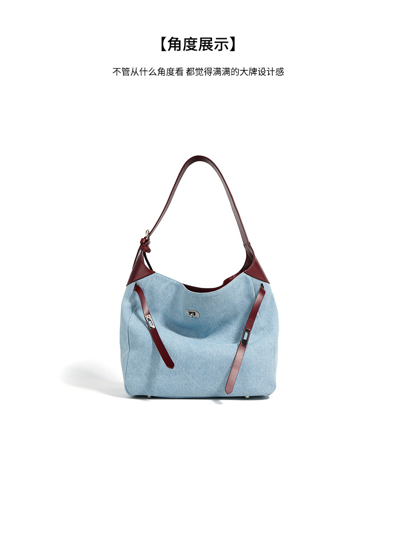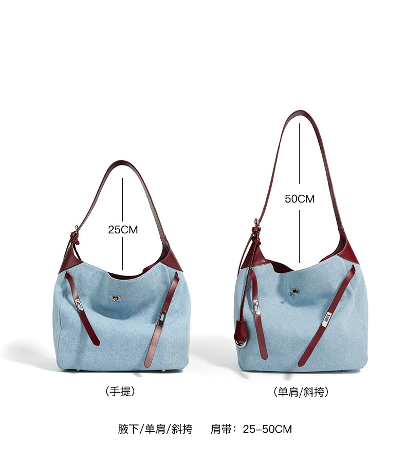 【预售3天】2025新款原创慵懒风牛仔拼接托特包大容量通勤单肩手提包YJ8185