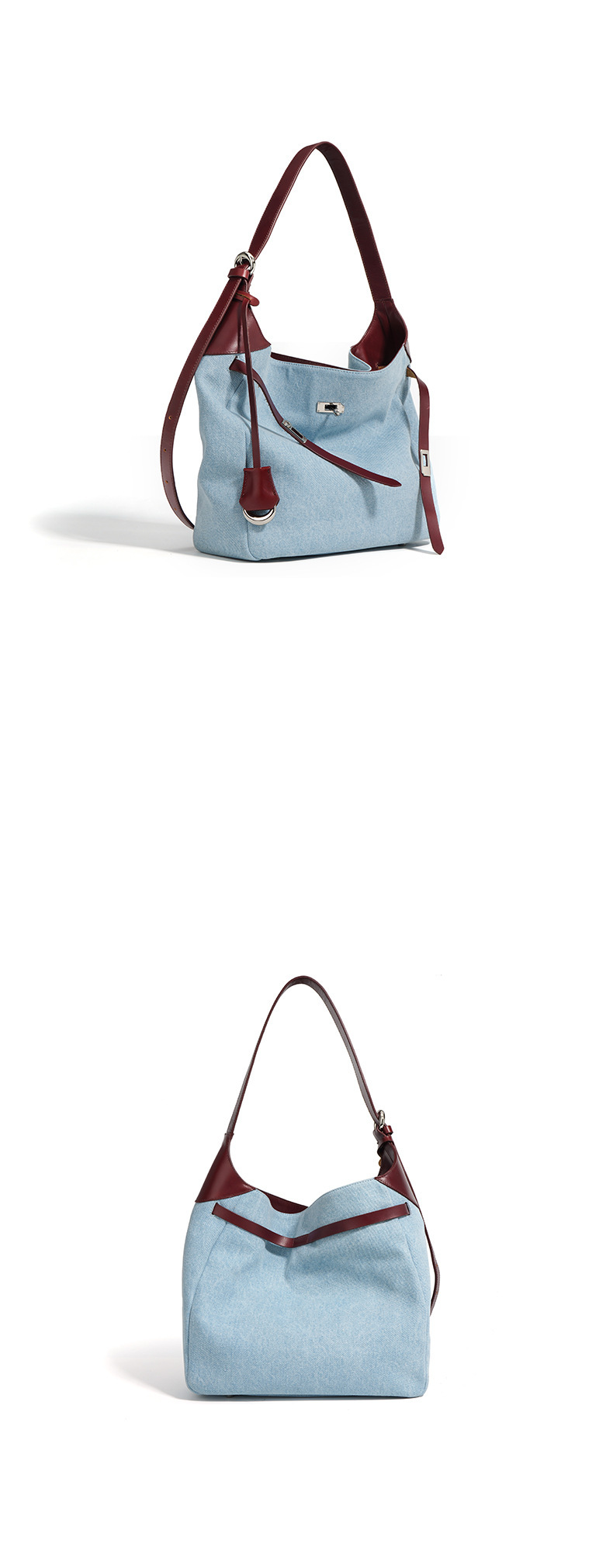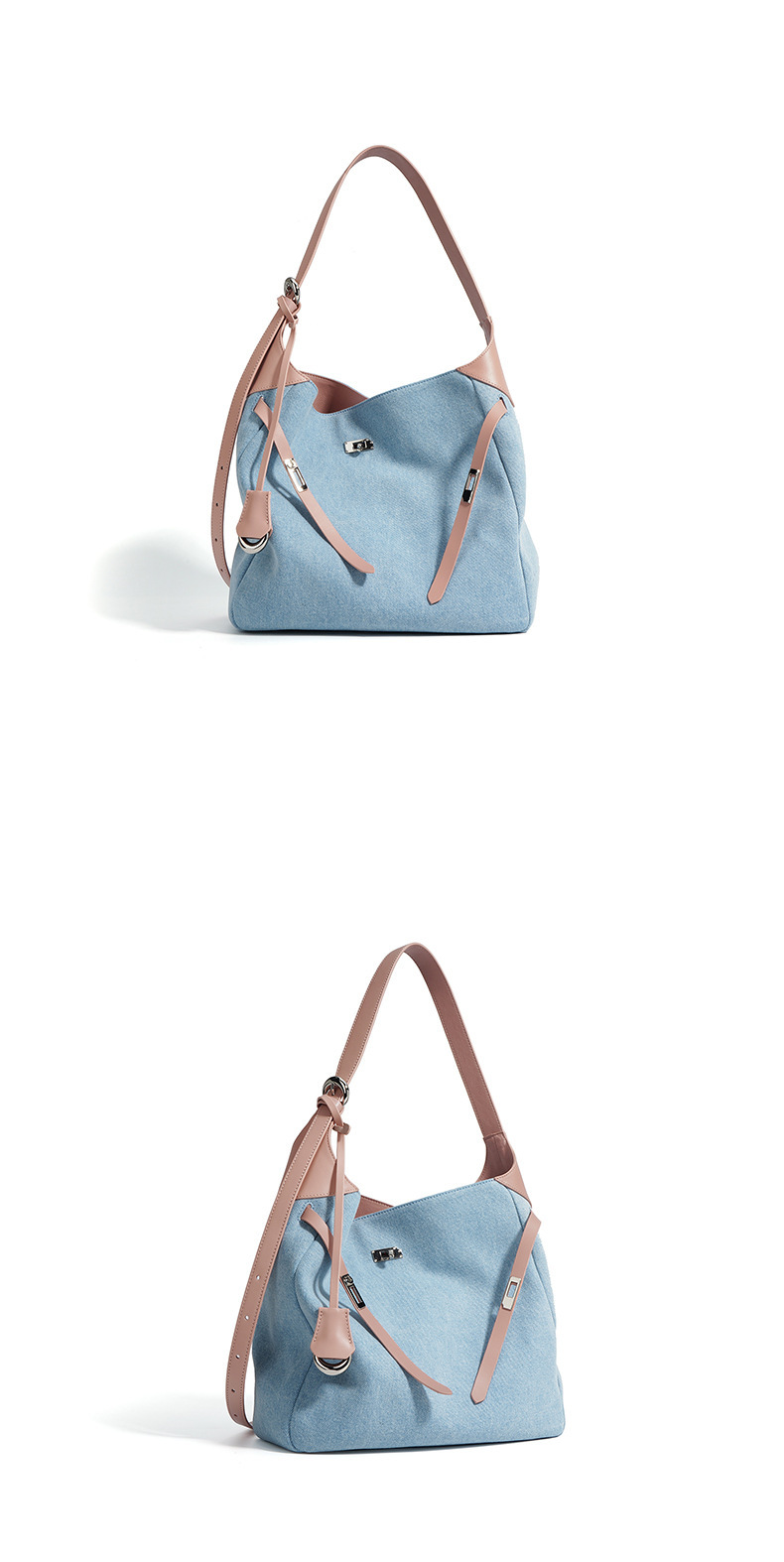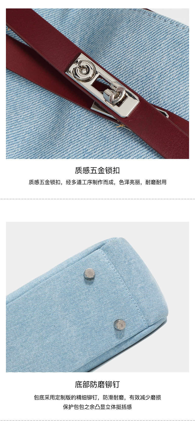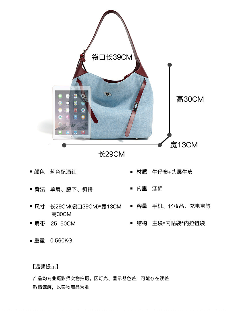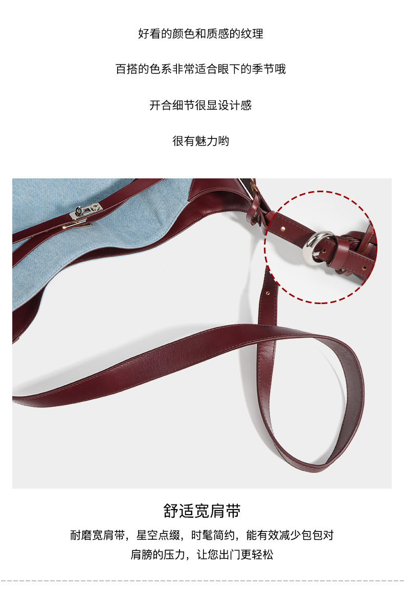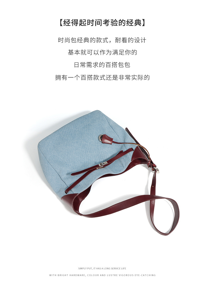【预售3天】2025新款原创慵懒风牛仔拼接托特包大容量通勤单肩手提包YJ8185