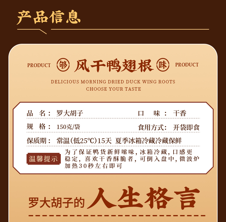 罗大胡子风干鸭小腿耐嚼鸭翅根休闲充饥解馋追剧无添加零食150克