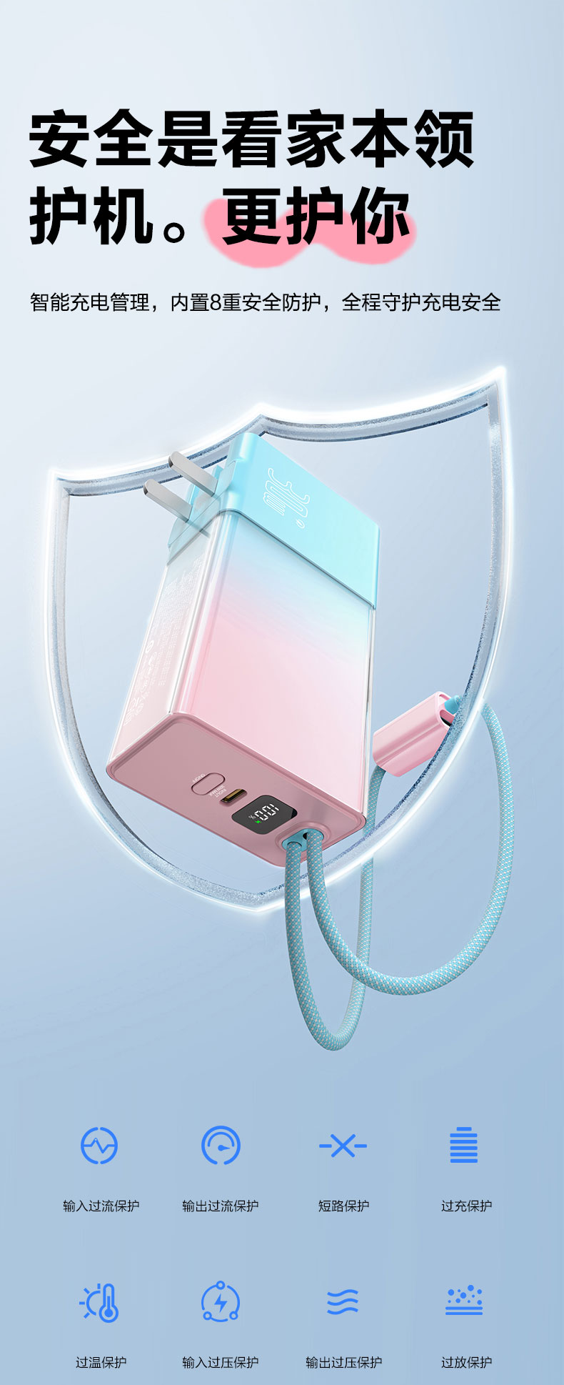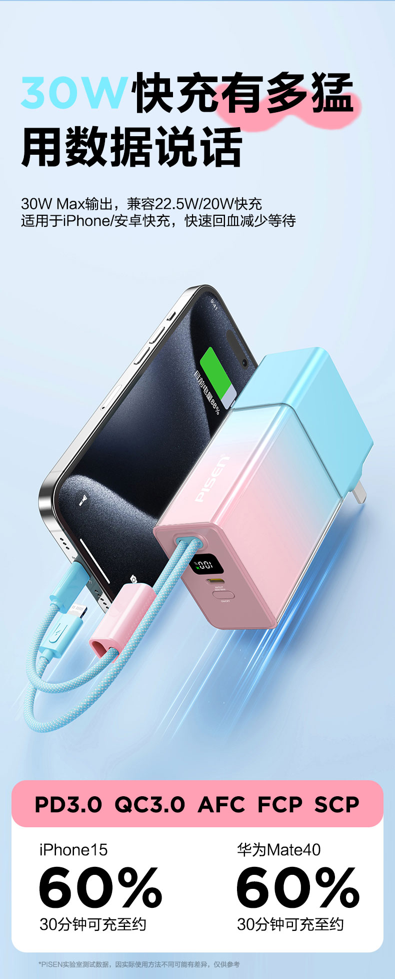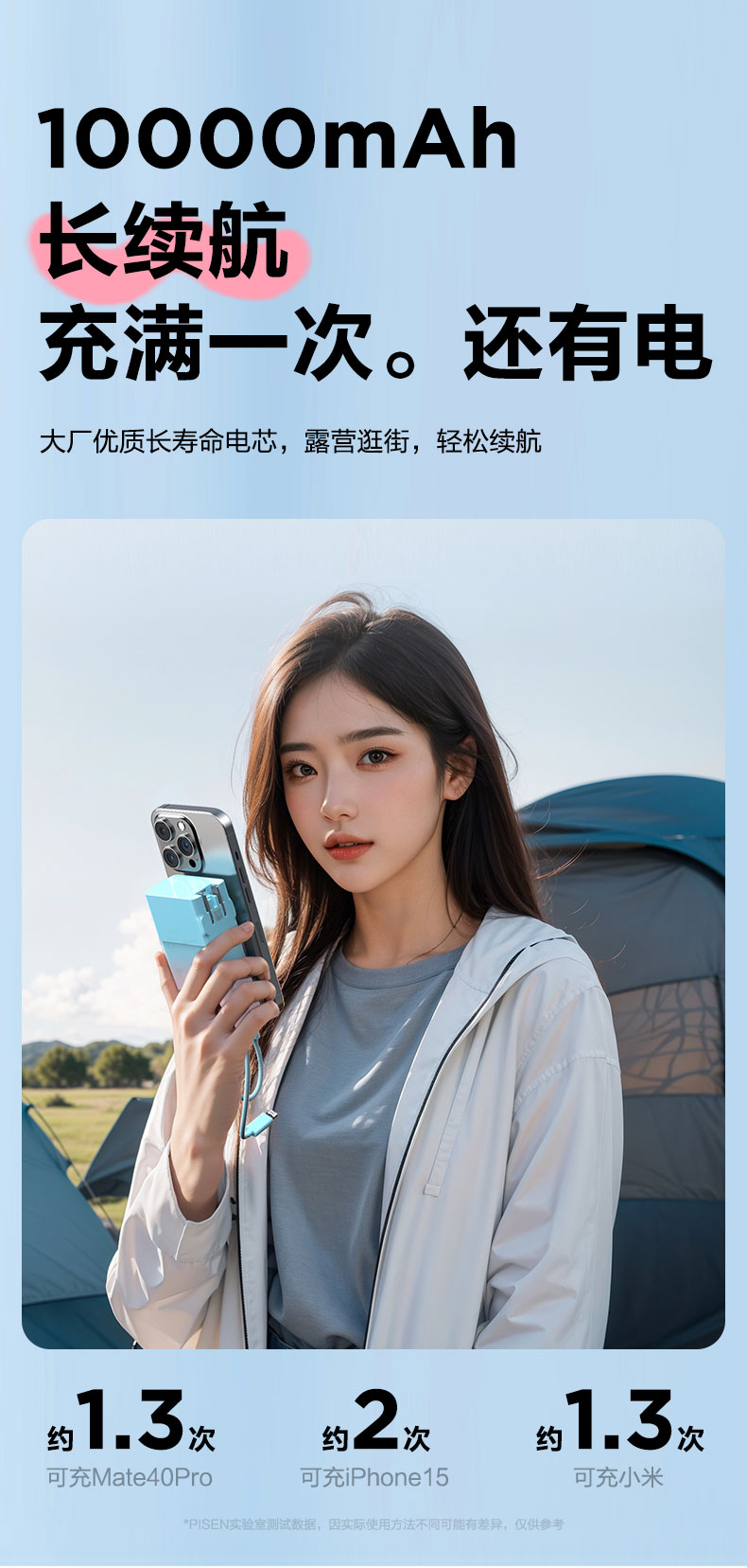 品胜 30W果冻电霸10000毫安移动电源 PD30W快充自带Type-C/Lightning输出口 支持苹果小米华为 充电宝