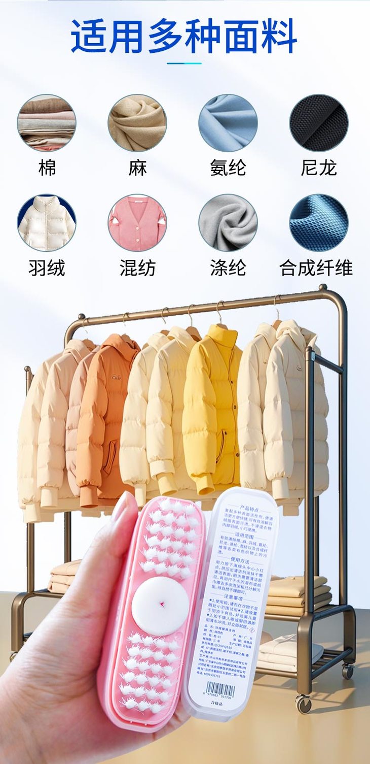 而且,不仅适用于羽绒服,棉、麻、氨纶等多种面料也都可以,天然去污因子能够深入衣物纤维内部去除污渍,且不会留下痕迹。宝宝的领口、袖口还是其他部位的常见污渍,都能轻松应对,就不用整件洗了!而且体积小巧,方便携带,带娃出门玩,或是吃饭容易漏下巴的,也能随时应对突发状况,不用怕弄脏衣服而束手无策了!可以家里、办公室、车上更放一盒,应对突入其来的小污渍,随时见人都不尴尬!