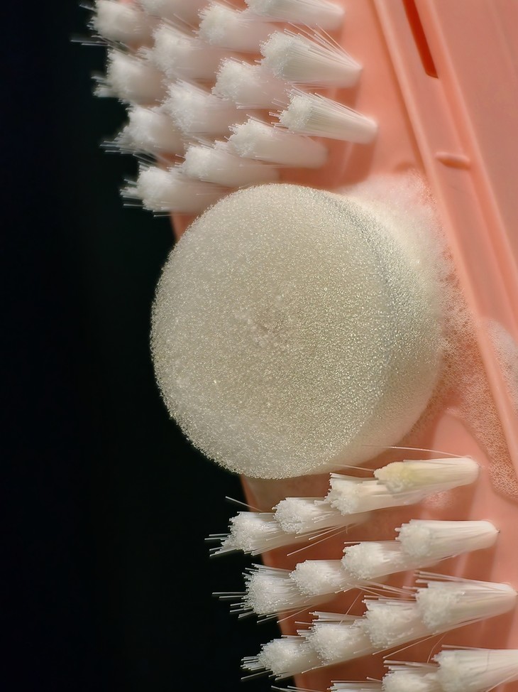 3.把洗脸巾浸湿拧干,再擦拭表面,把泡泡擦干净,如果渗到背面,也要擦一下。