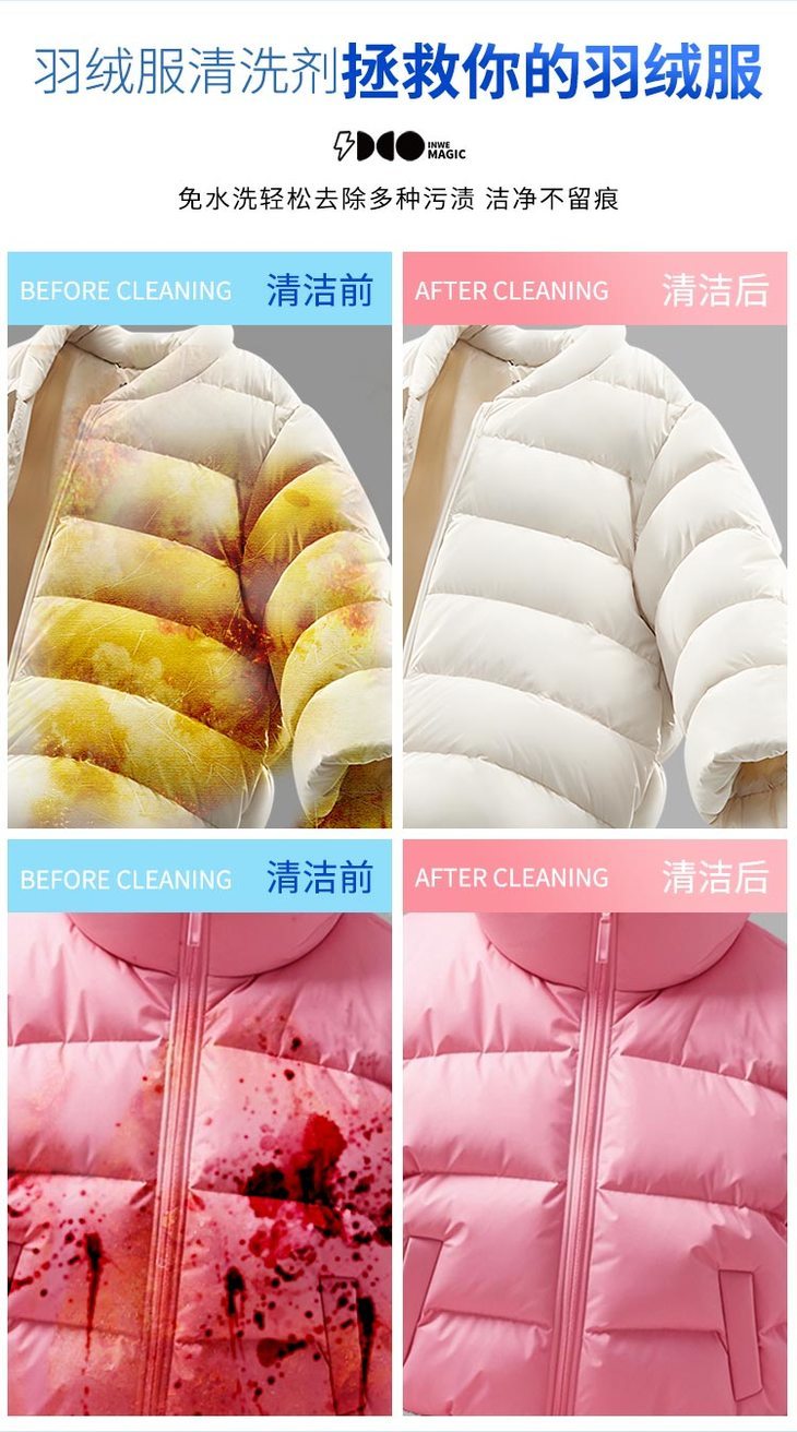 2.最好尽快用白倍极羽绒服清洁剂,面积别刷太大,衣服背面垫些纸巾。