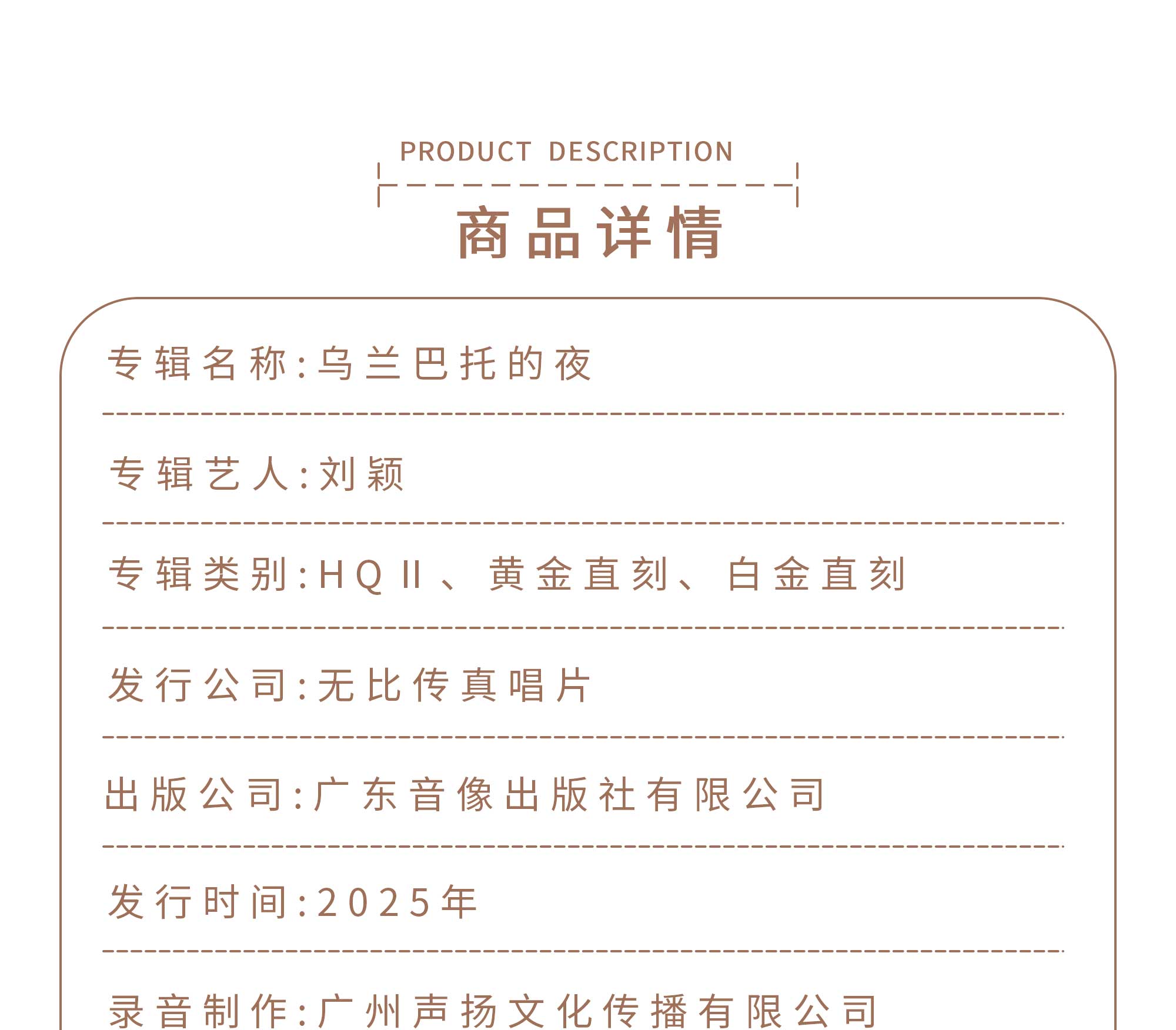 刘颖《乌兰巴托的夜》专辑唱片HQ2CD&1:1直刻&1:1黄金直刻 无比传真
