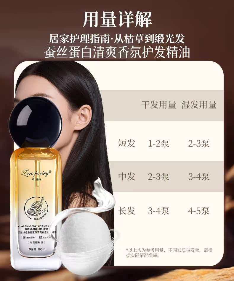 卓洛诗天鹅绒感蚕丝蛋白清爽香氛护发精油(80ml)