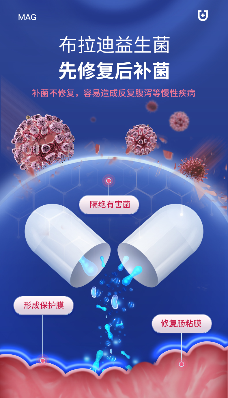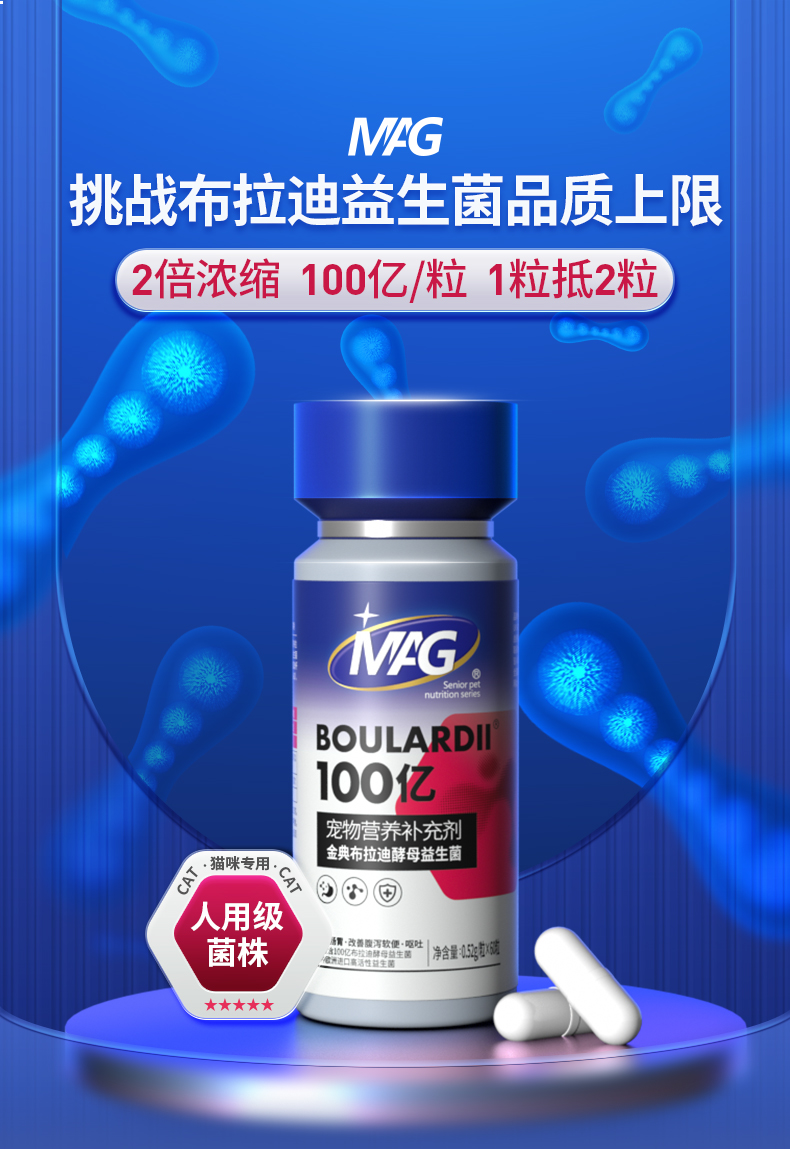【U+系列】MAG金典布拉迪酵母益生菌加强版 0.52g*60粒-猫咪狗狗调理肠胃100亿活菌人用级益生菌