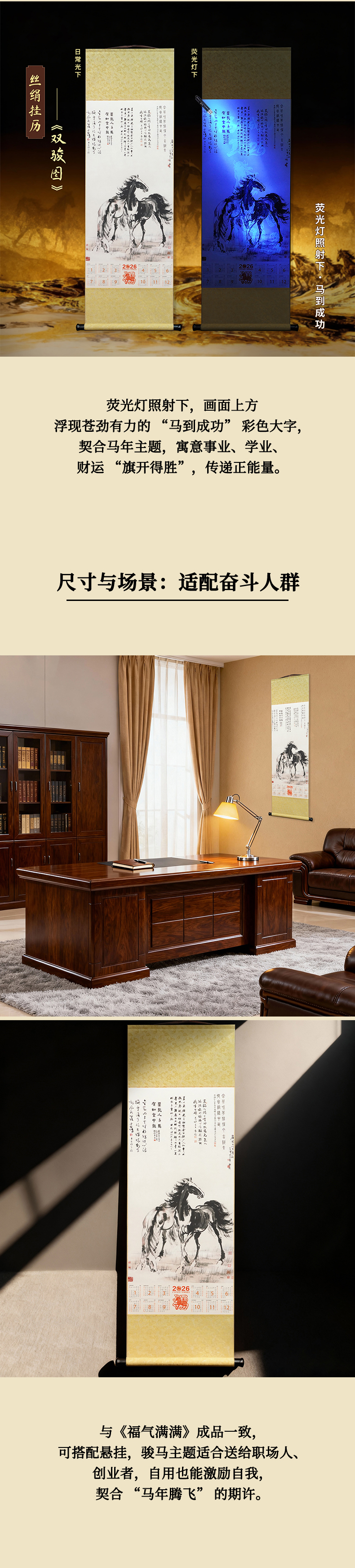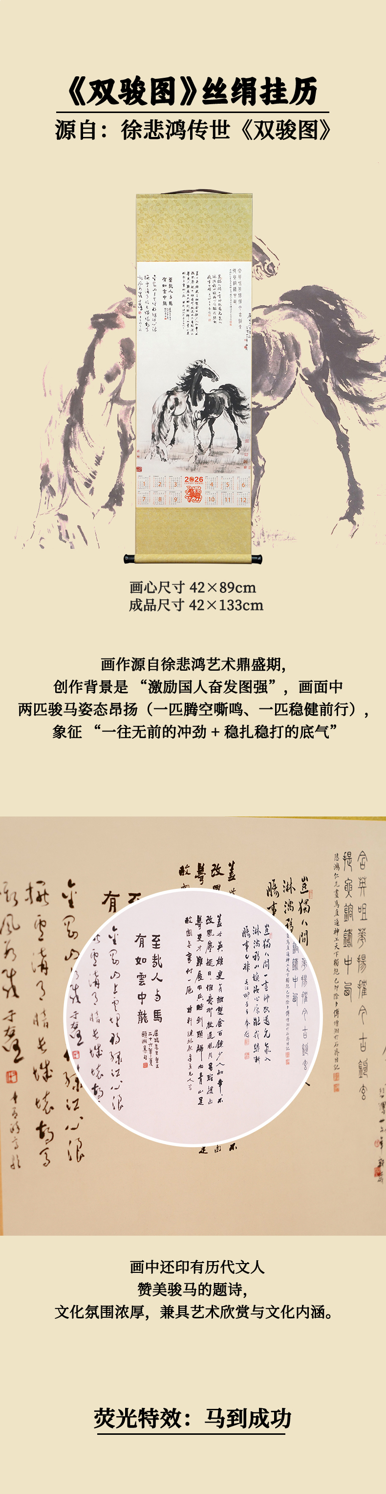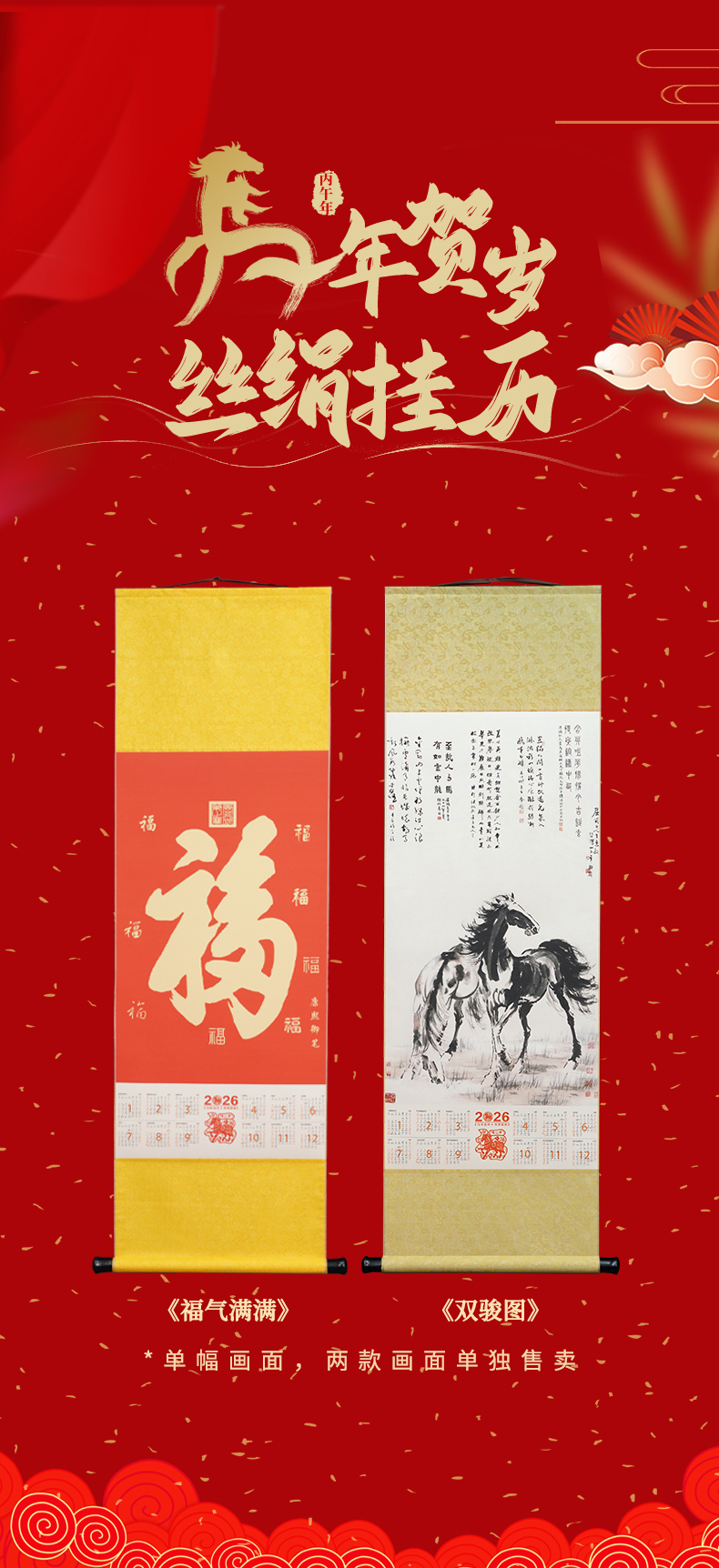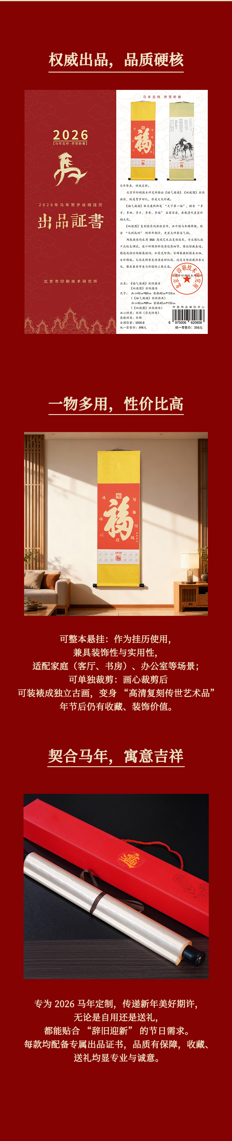 (现货)2026《马年挂历》系列 北研所出品 丝绢装裱 荧光防伪 133*42cm尺寸(京东快递送货上门)