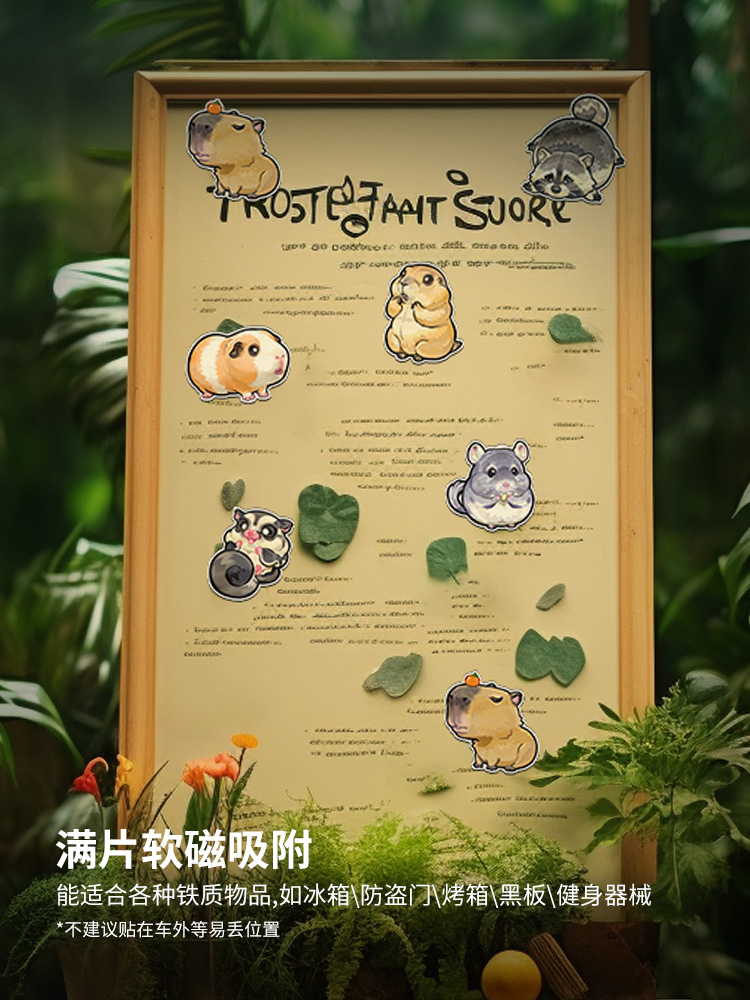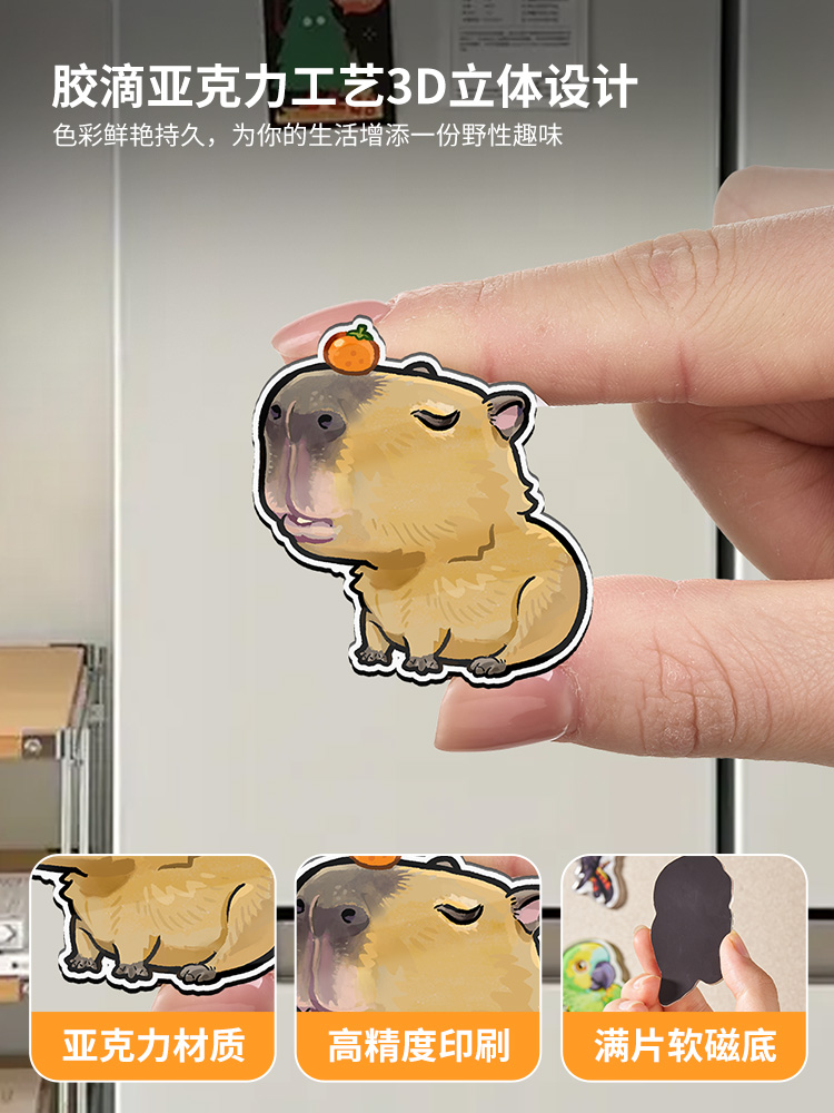 材质:正面亚克力,背部磁吸胶贴(硬冰箱贴)