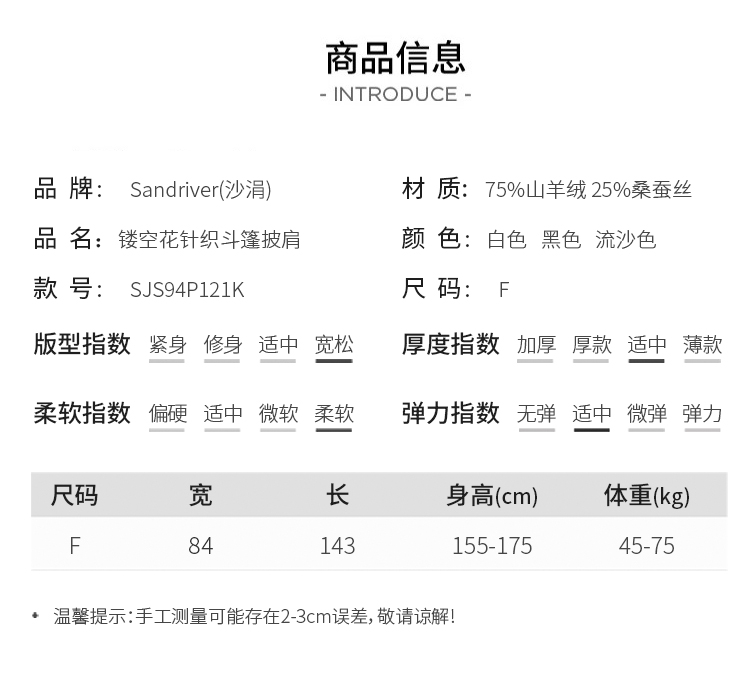 镂空花针织斗篷披肩 SJS94P121K