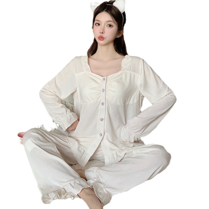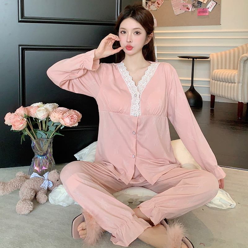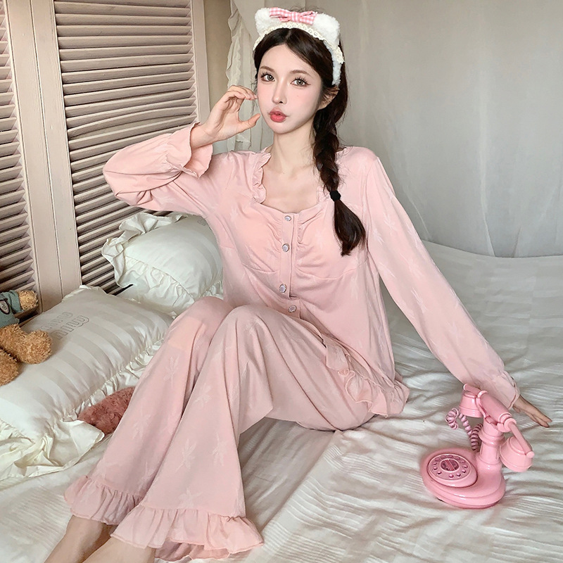【ins公主风❗️长袖开衫家居服套装】自带胸垫,免穿文胸内衣❗️舒适透气,家居外穿都可以,长袖长裤睡衣女春季新款少女两件套
