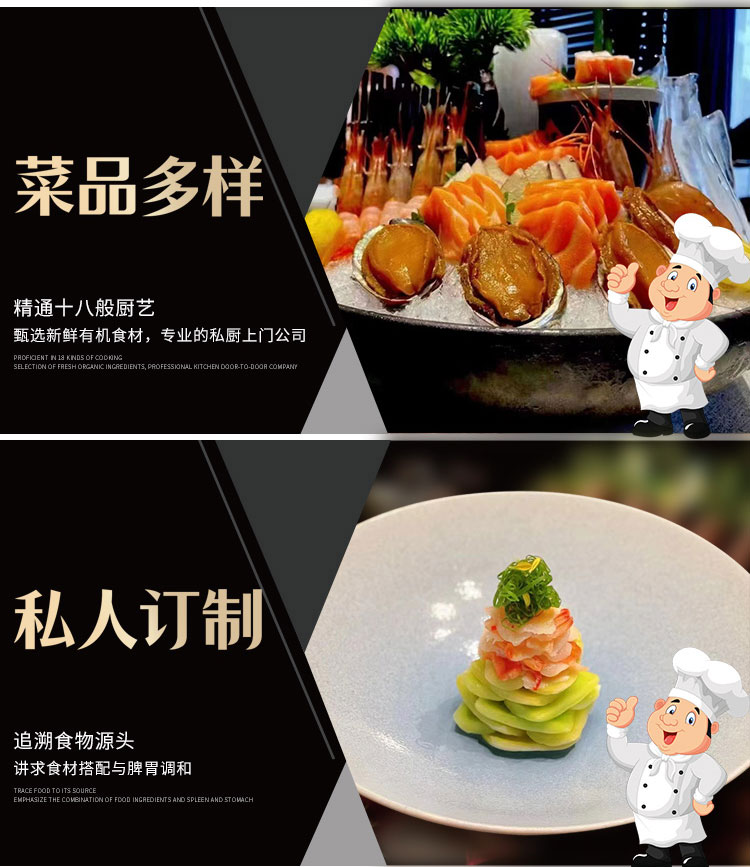 曾在全国各地多家星级酒店担任厨师长,行政总厨职位,在泰国,新加坡等都担任中餐出品总管,总监职位。专业上门私厨服务,创造个性化的菜品和口味,让你的家宴有着不一样的品位。