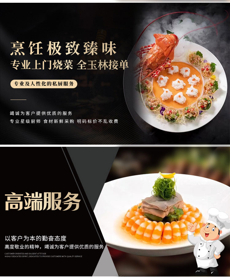 第二、接单厨师着装及佩戴口罩,按时按点到达客户提供地点。做好出餐前的准备。