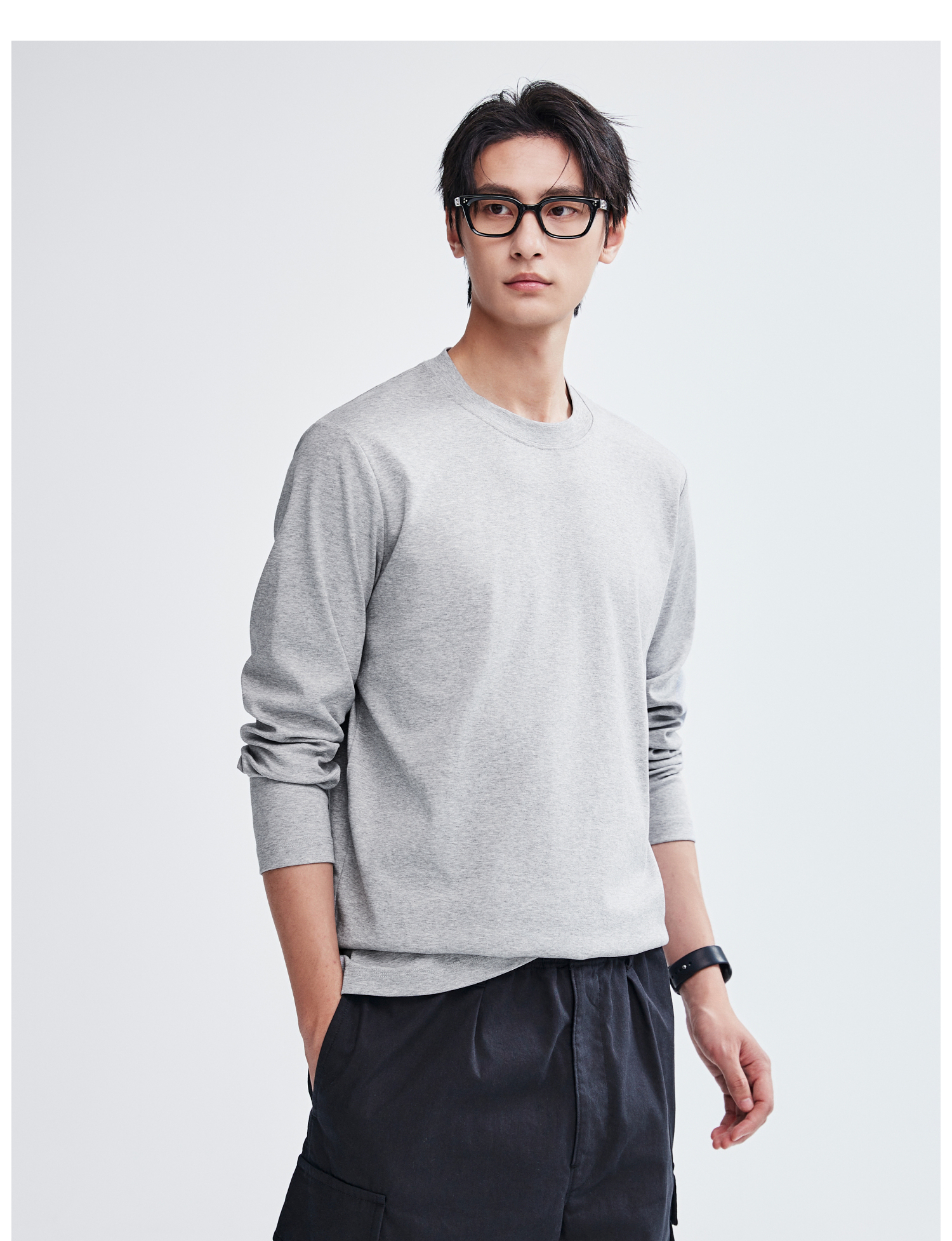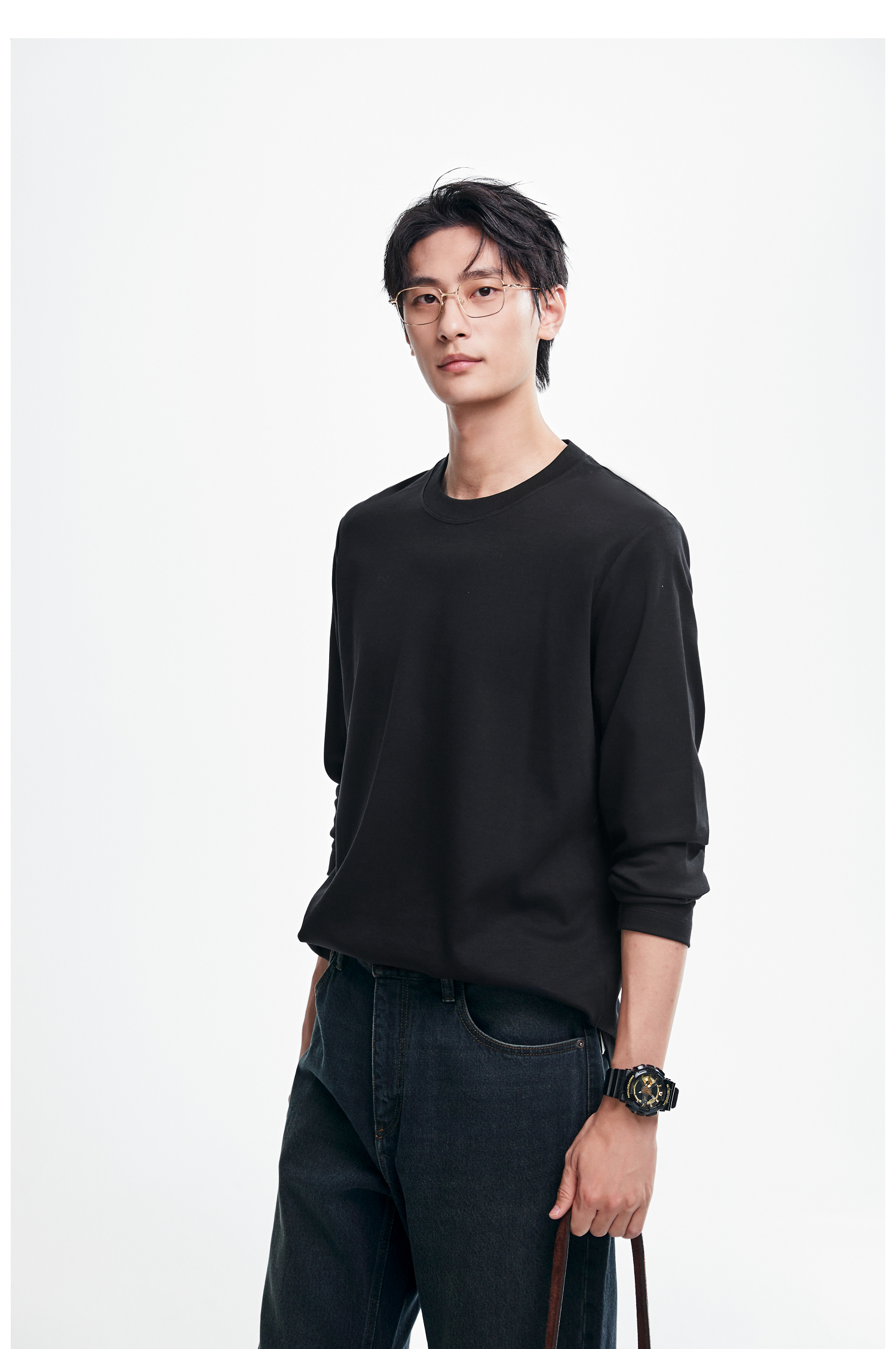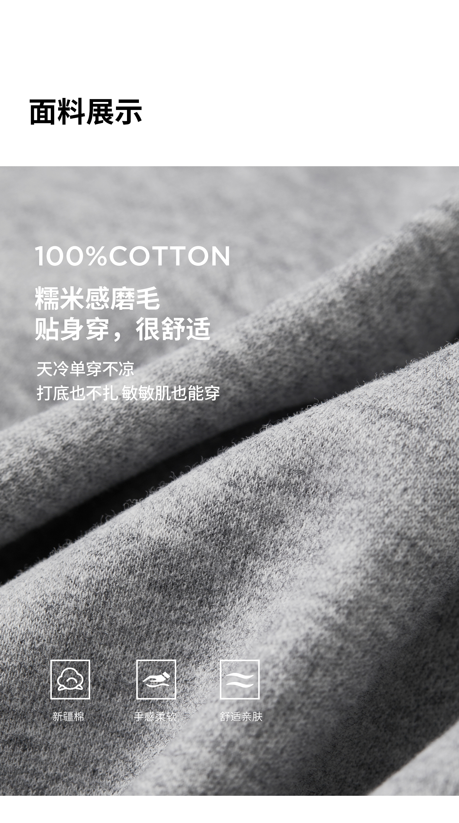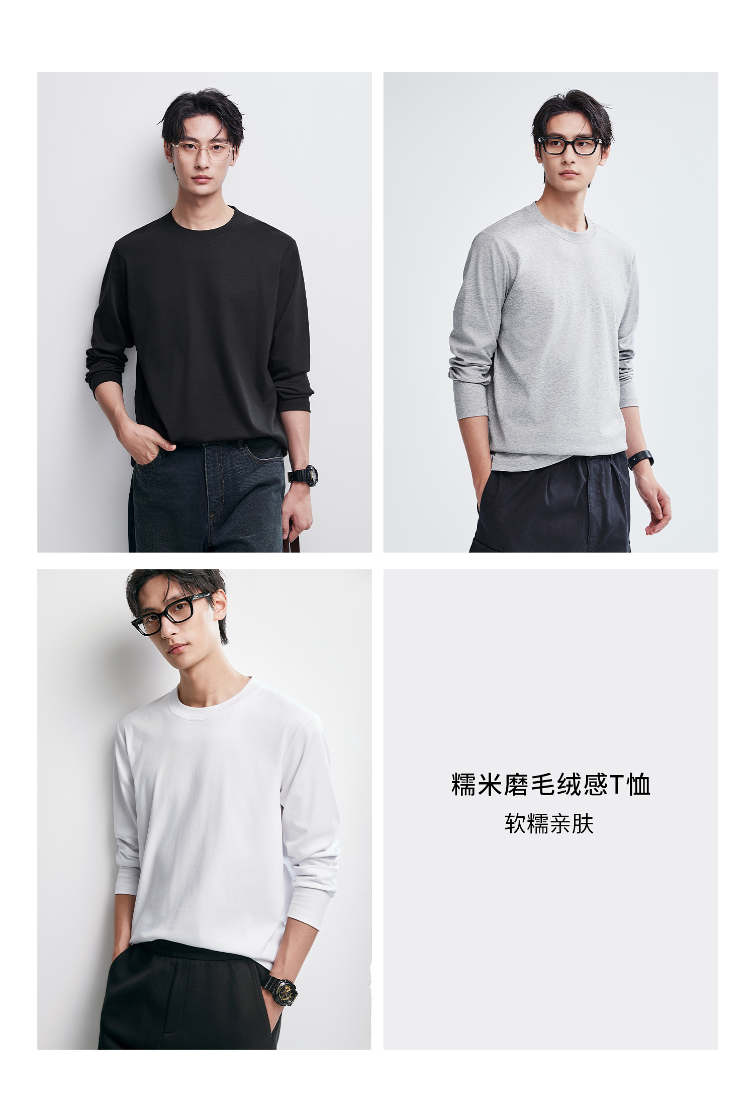 棉仓366801003-全棉磨毛绒感圆领长袖T恤