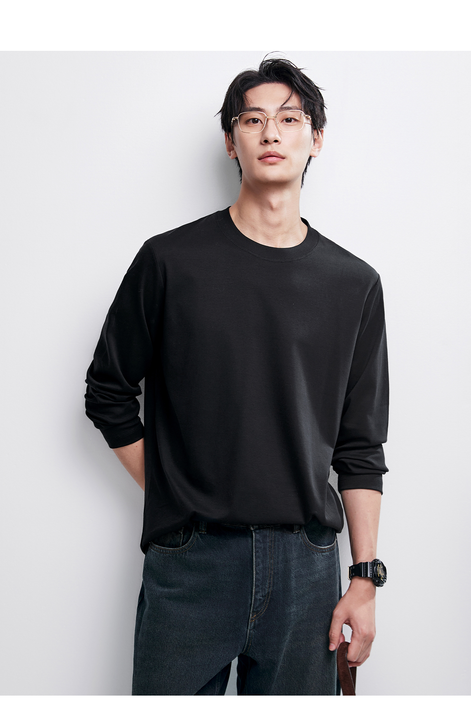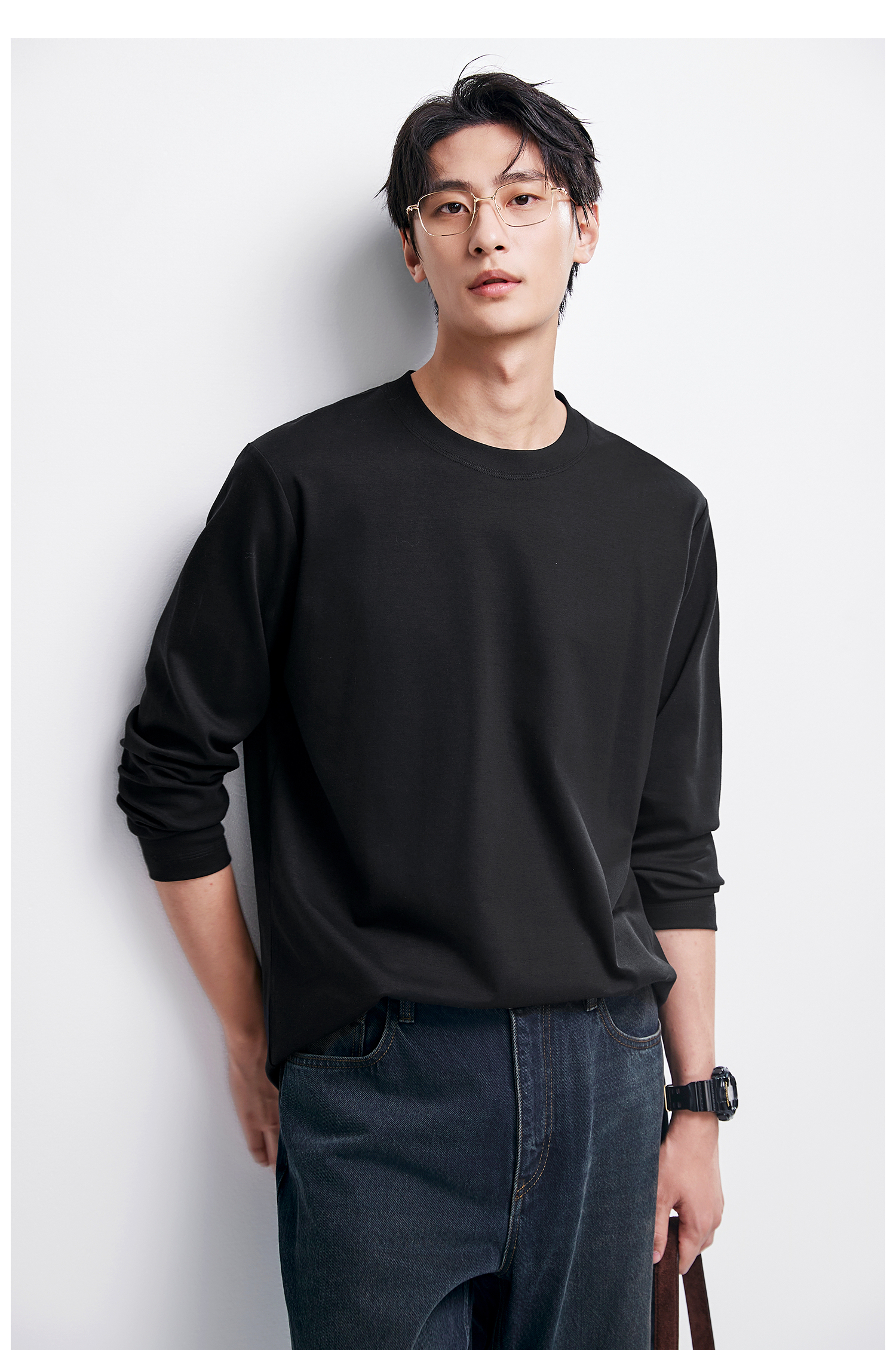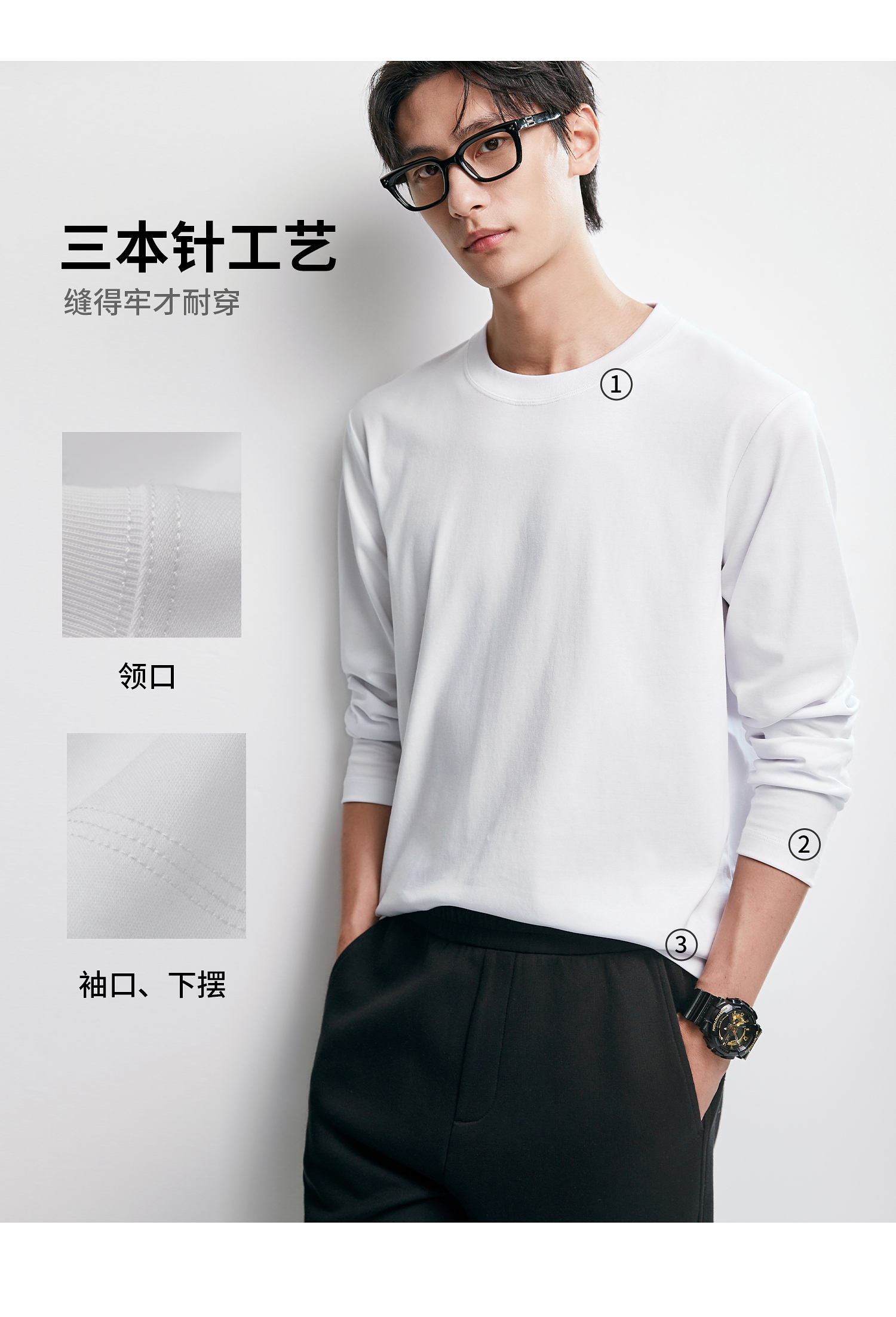 棉仓366801003-全棉磨毛绒感圆领长袖T恤