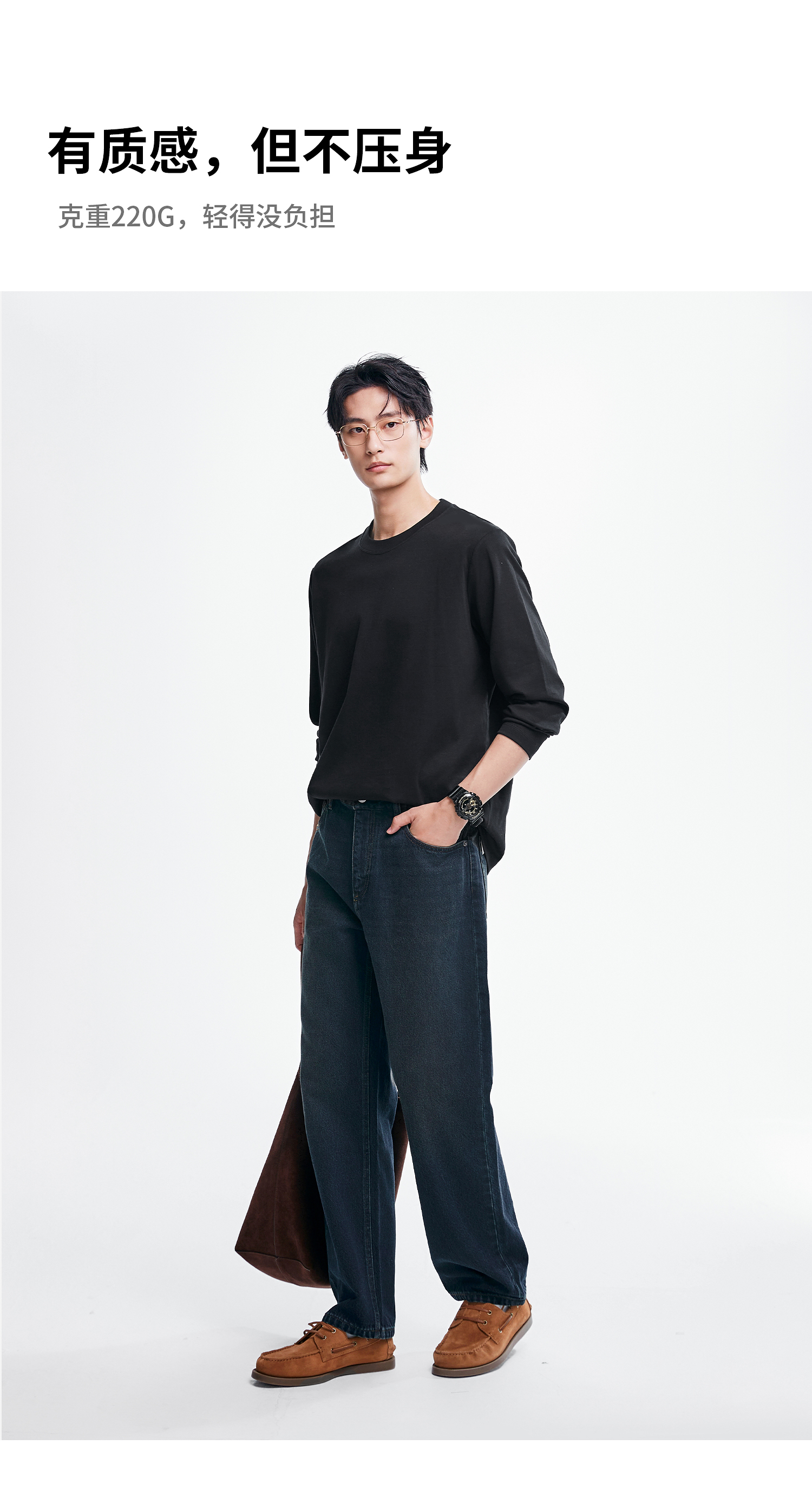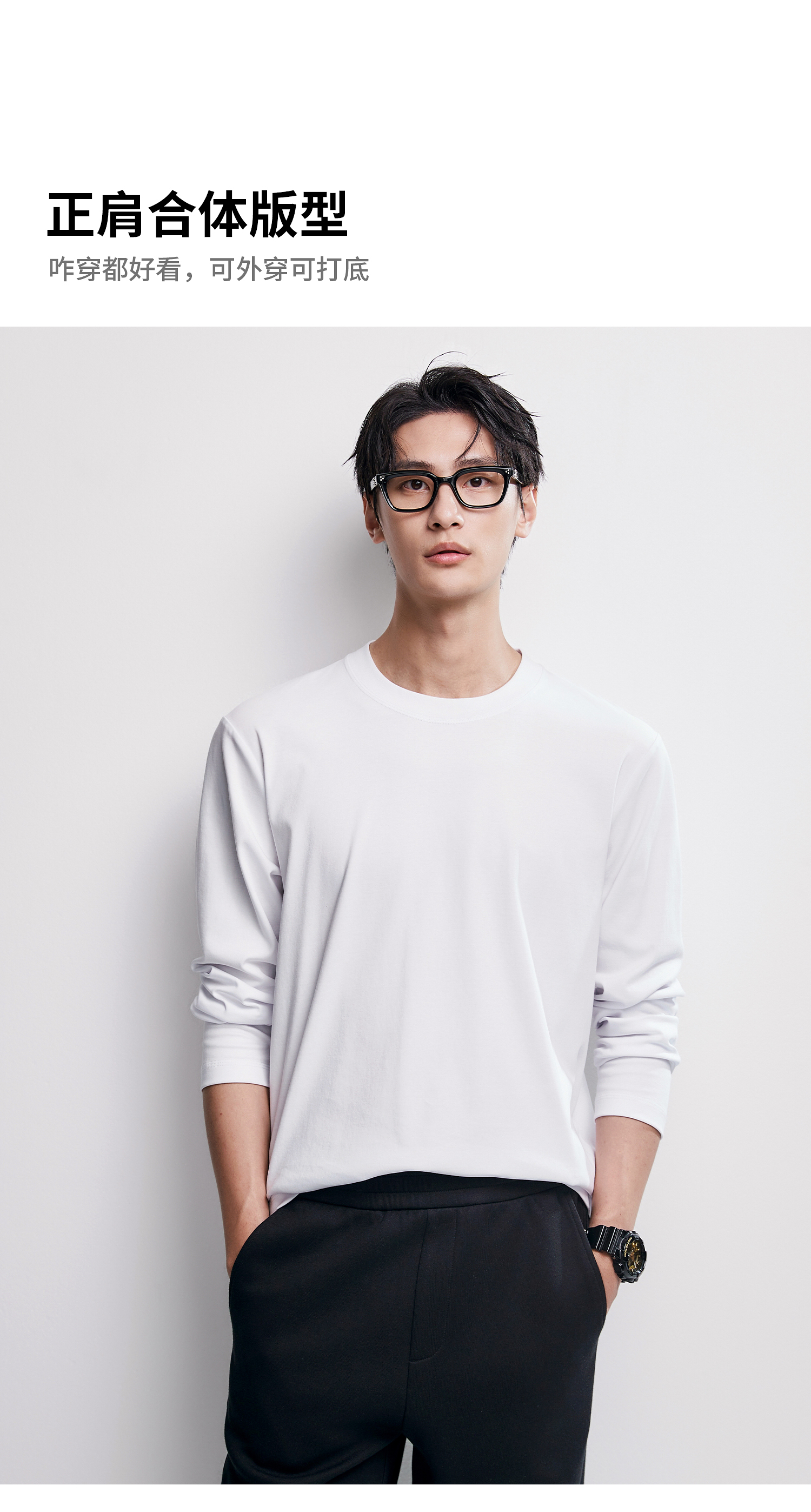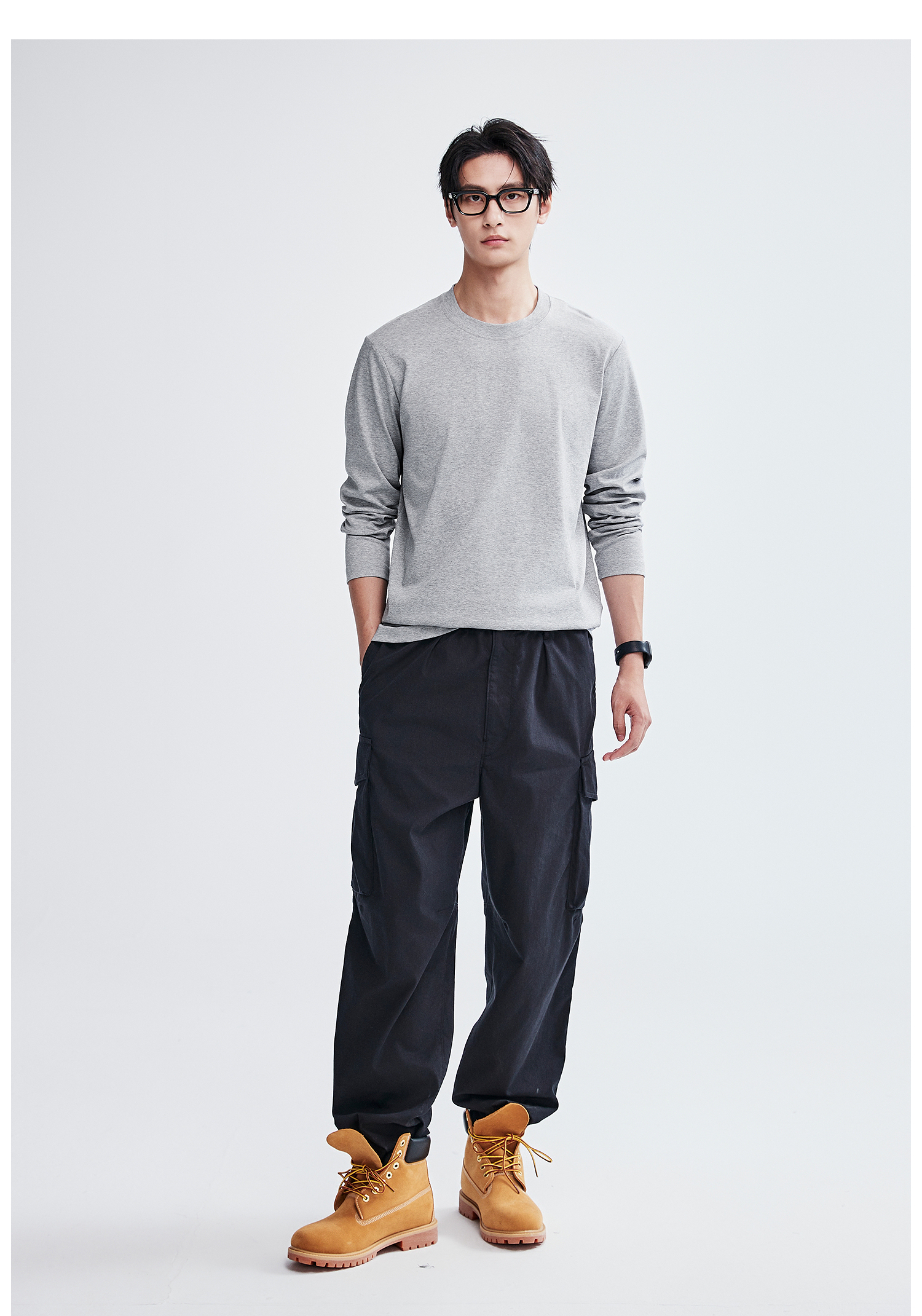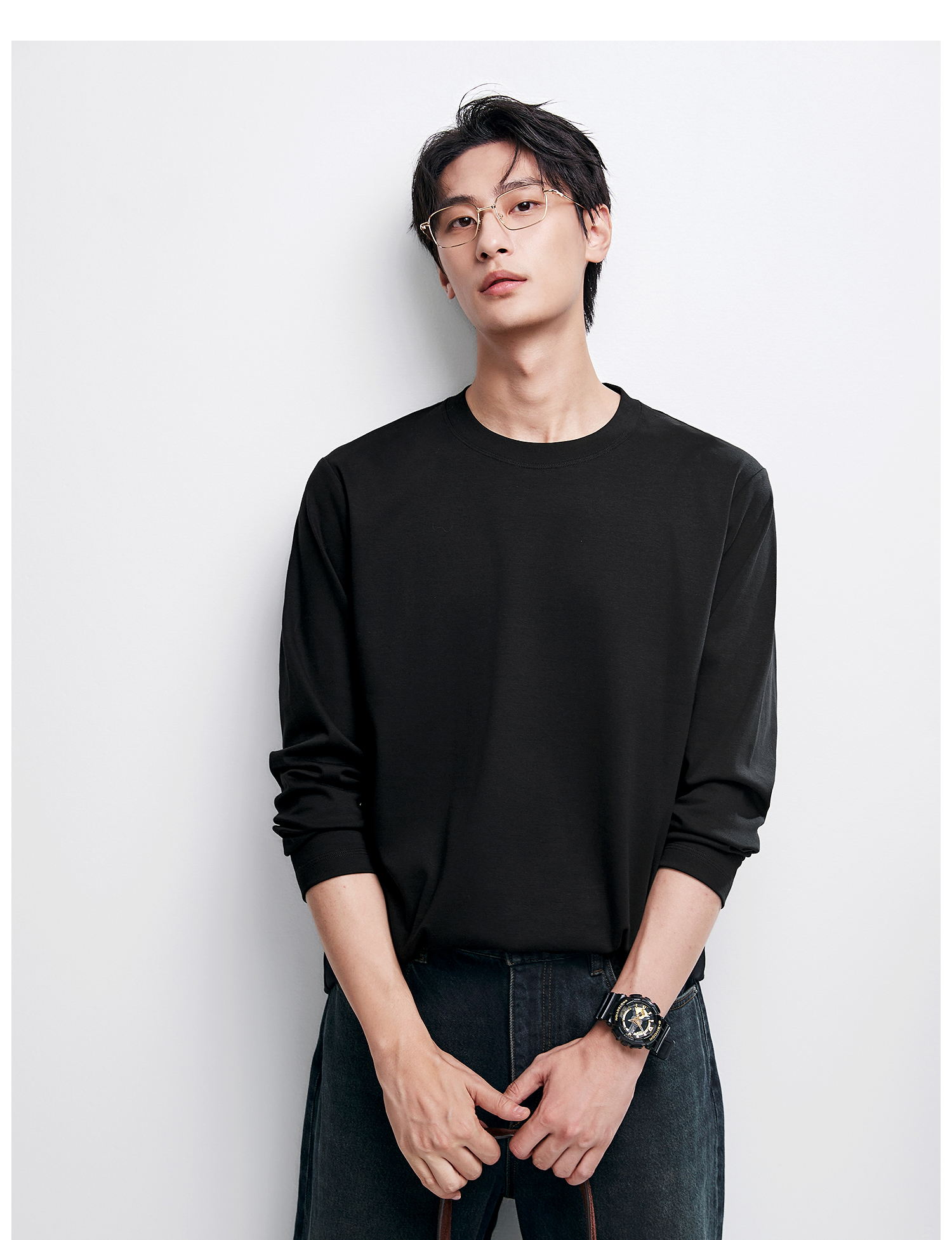 棉仓366801003-全棉磨毛绒感圆领长袖T恤