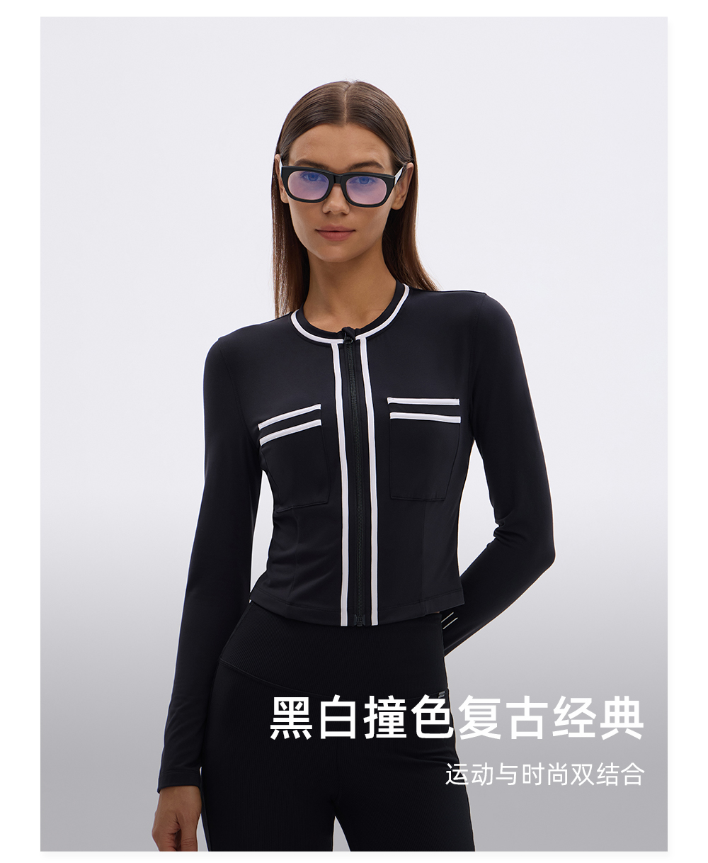 加拿大TITIKA小香风修身运动夹克女秋季健身跑步休闲短款外套女31127