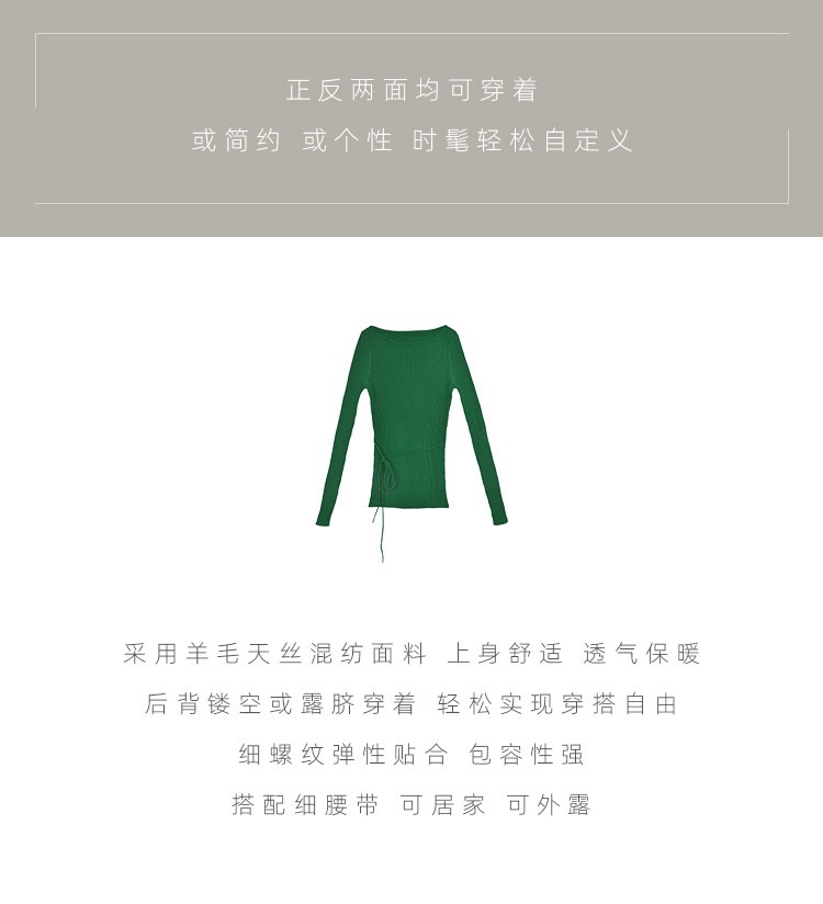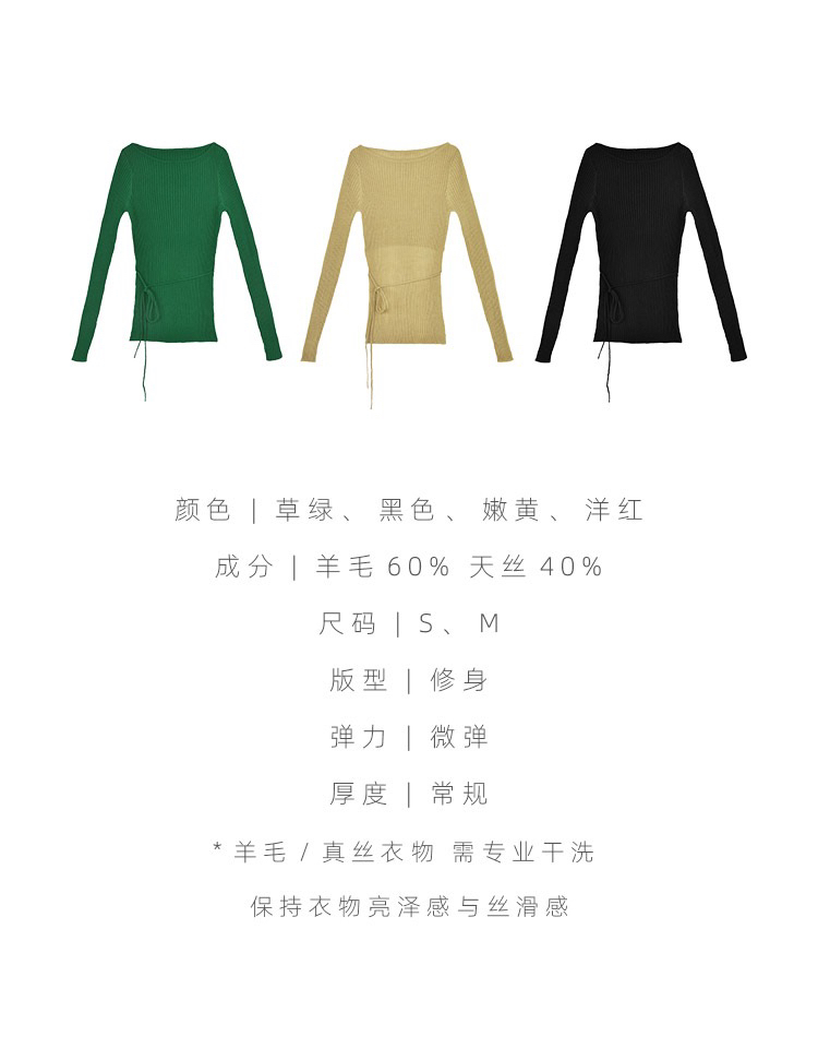 Her Senses|时装 04-C018-SW ⽺⽑圆领系带⽑⾐ [ 黑 / 嫩黄 / 草绿 / 洋红 ]
