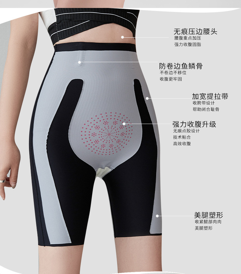收腹裤是一片式无痕设计,一点都不用担心尴尬腰部还有记忆软骨防卷边的设计也不用担心会卷起来。