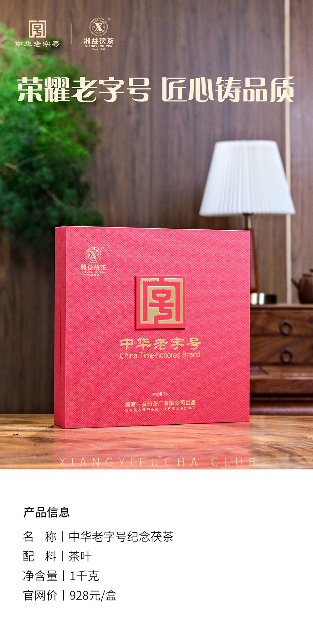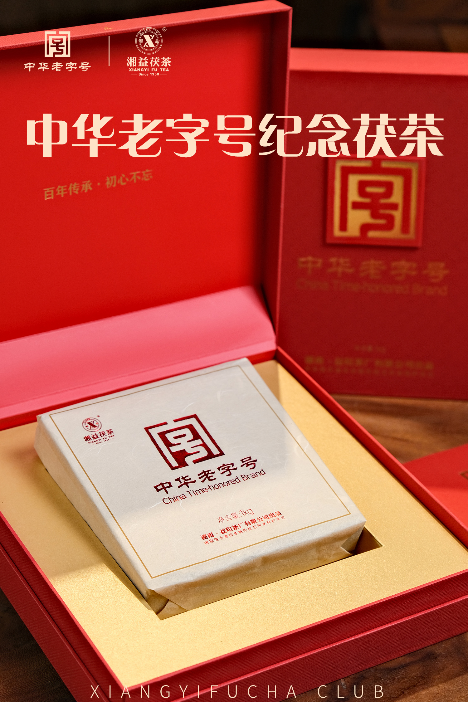 【倩倩直播间推荐】中华老字号纪念茯茶 湘益茯茶 非遗大师匠制 1kg/块 加赠益甲天下一片