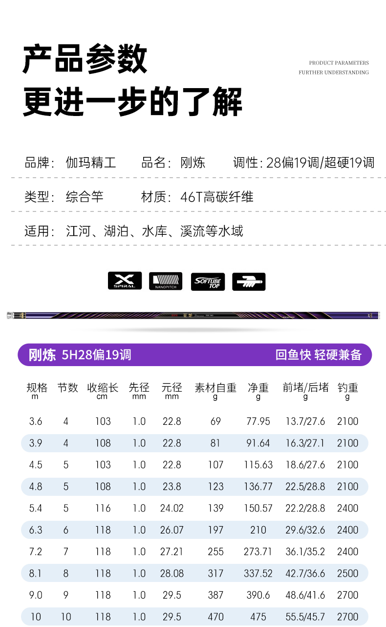 伽玛精工刚炼旗舰版鱼竿19调高碳钓鱼竿超轻手竿威海综合竿渔具综合竿