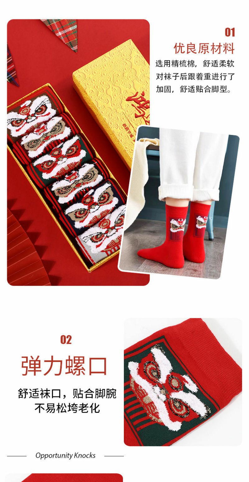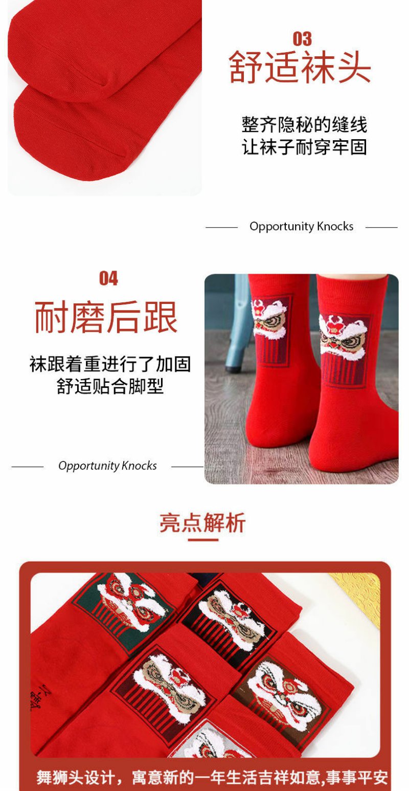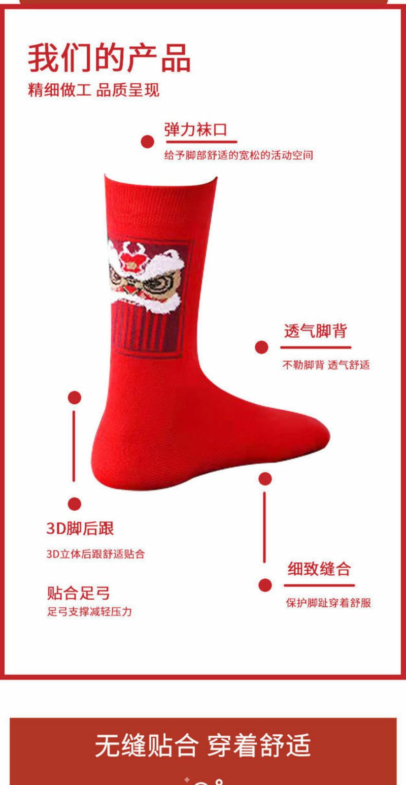 本命年踩小人袜子情侣秋冬狮子头刺绣红袜
