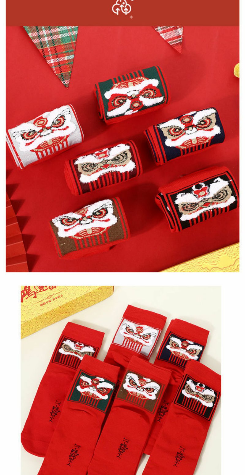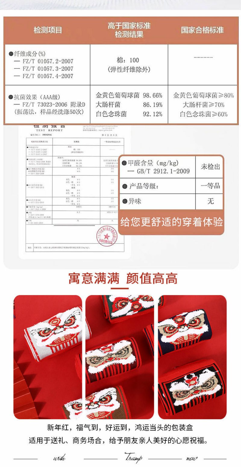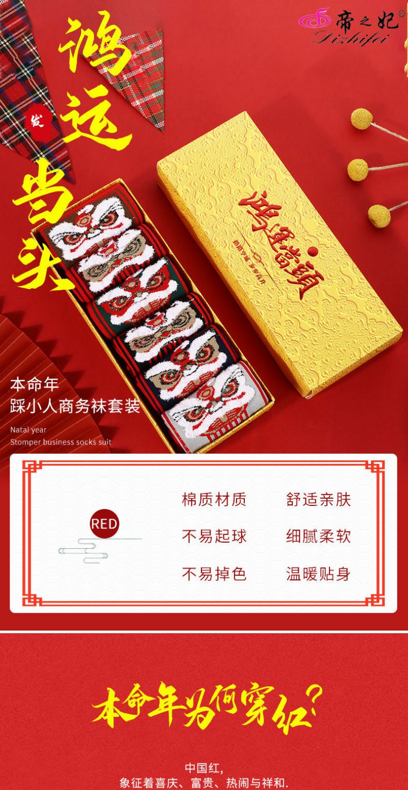 本命年踩小人袜子情侣秋冬狮子头刺绣红袜