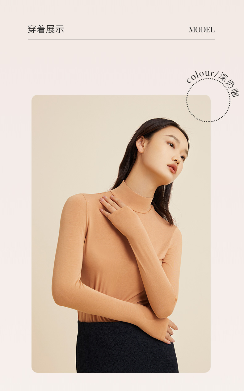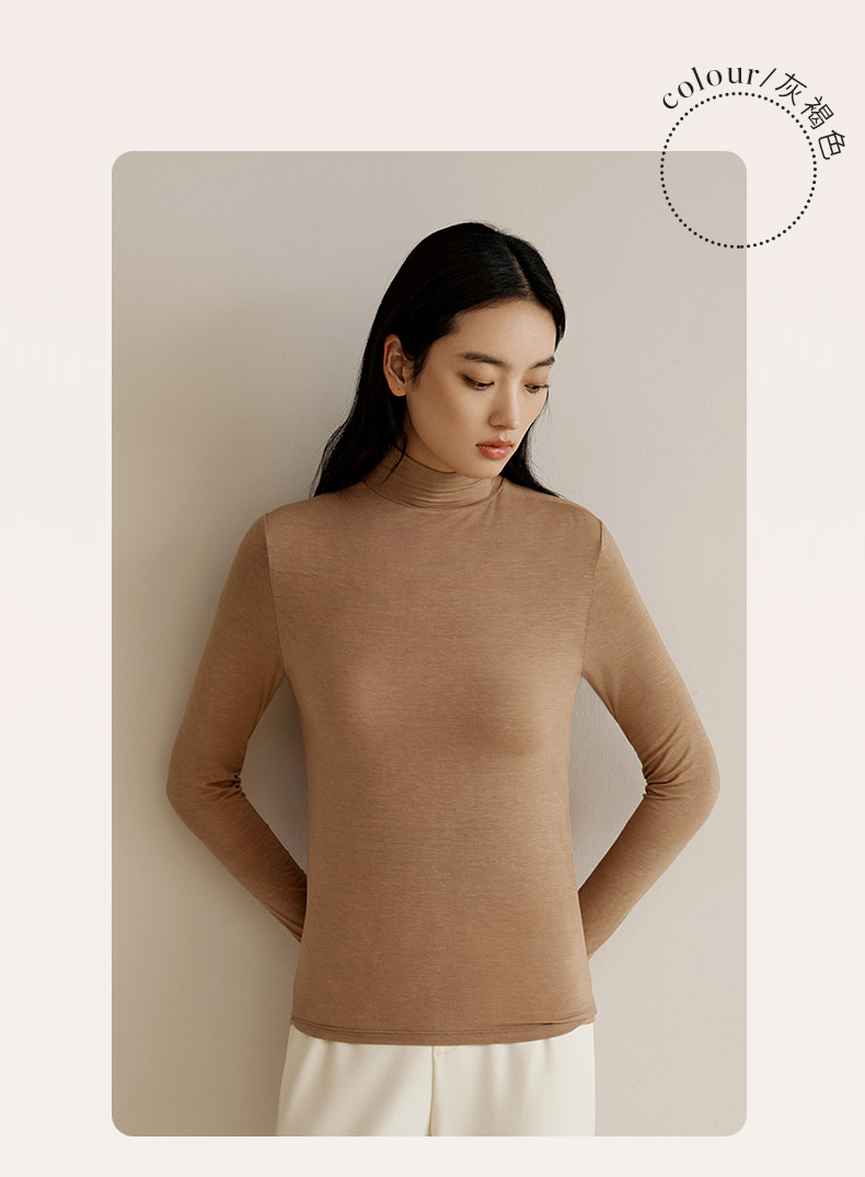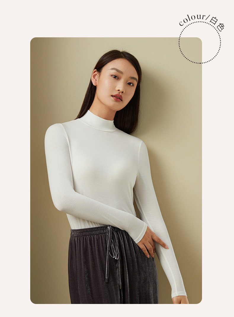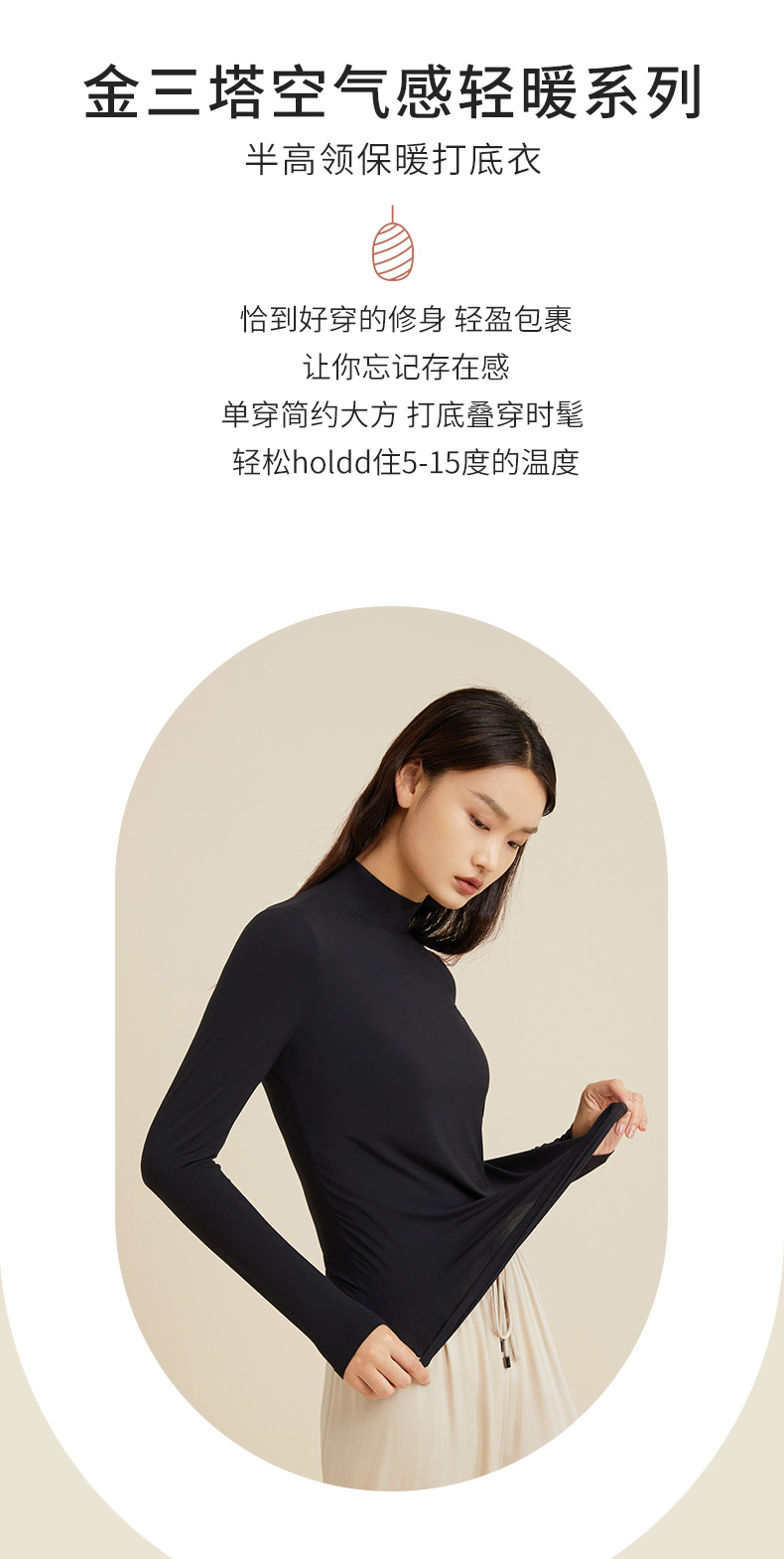 金三塔桑蚕丝莫代尔 空气感轻暖系列女士半高领舒适轻盈打底衫(限价款) NZFCC721