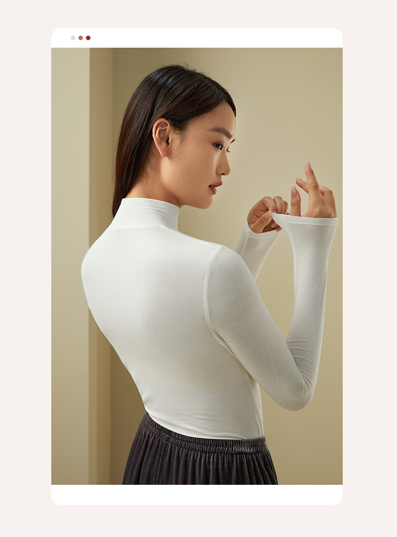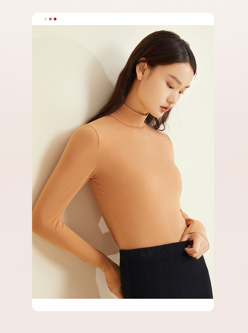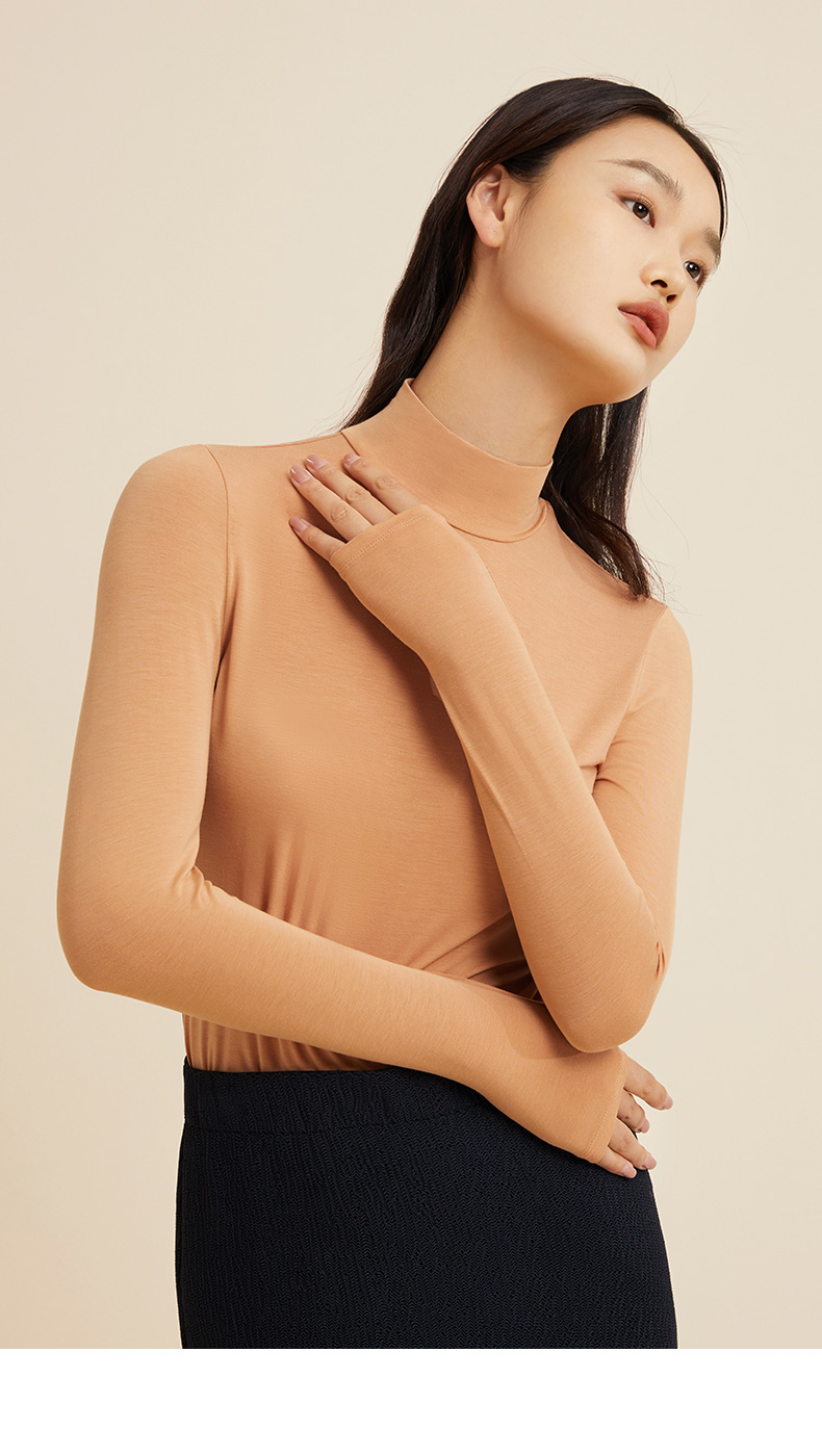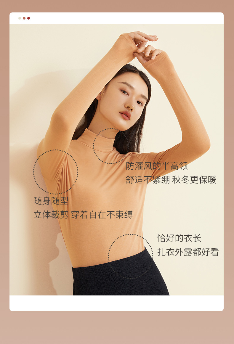金三塔桑蚕丝莫代尔 空气感轻暖系列女士半高领舒适轻盈打底衫(限价款) NZFCC721