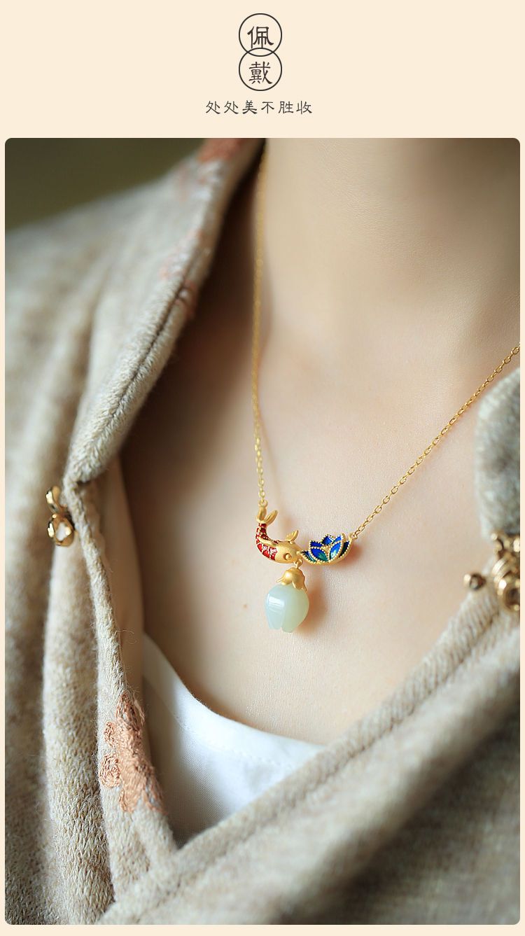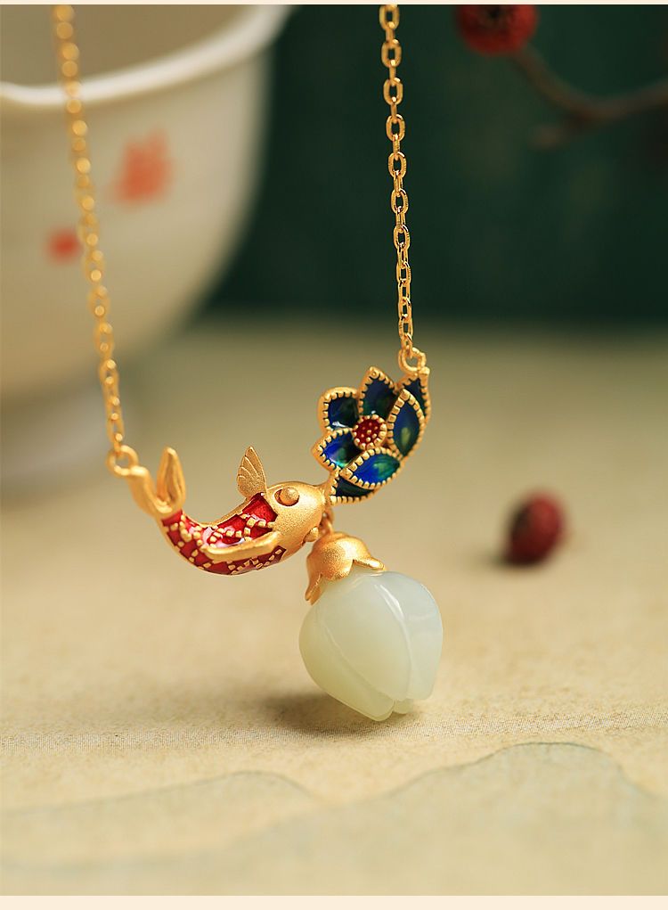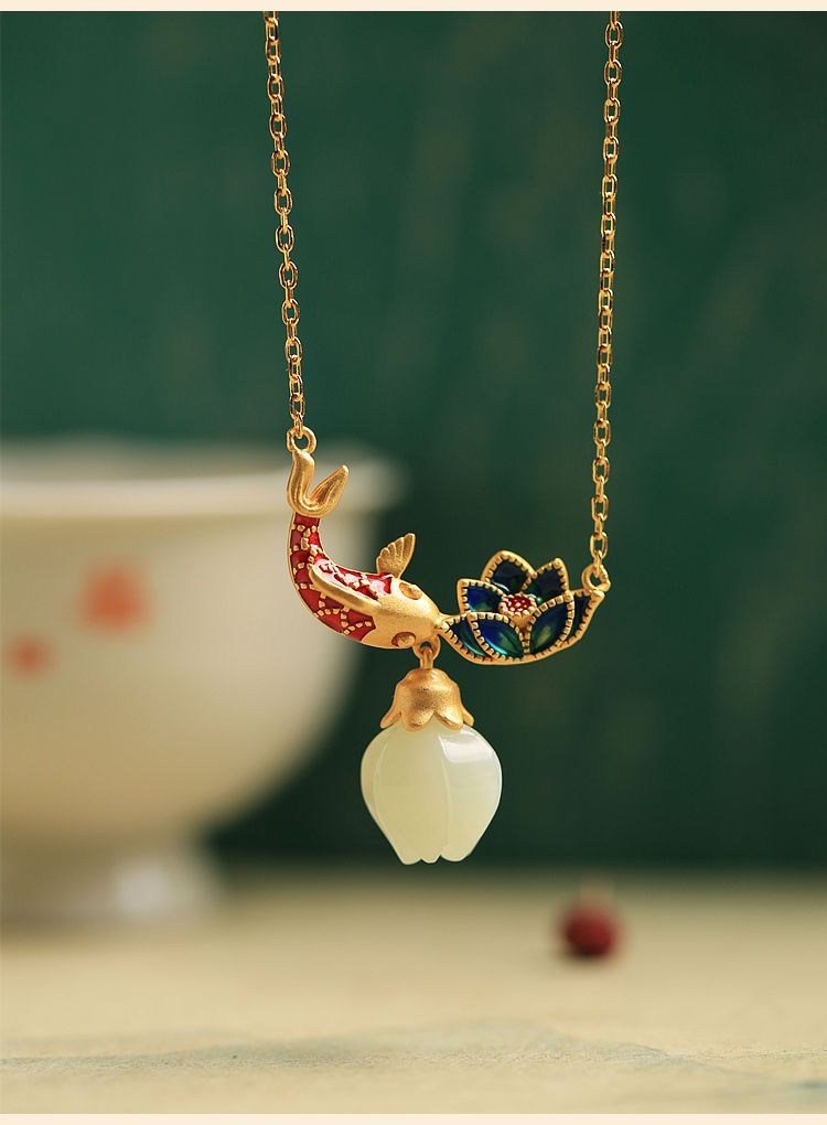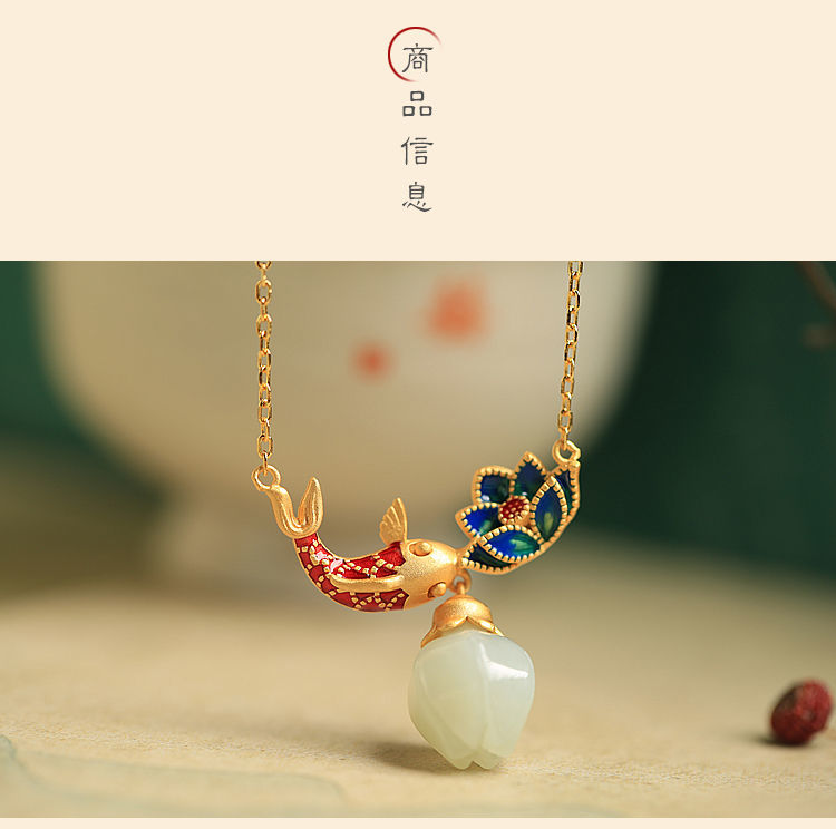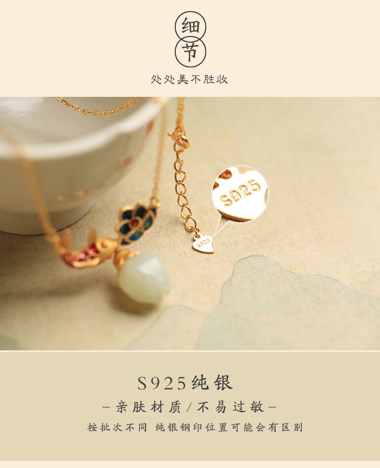s925纯银莲花锦鲤吊坠项链女小众设计2022新款转运锁骨链高级感