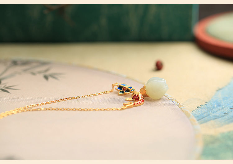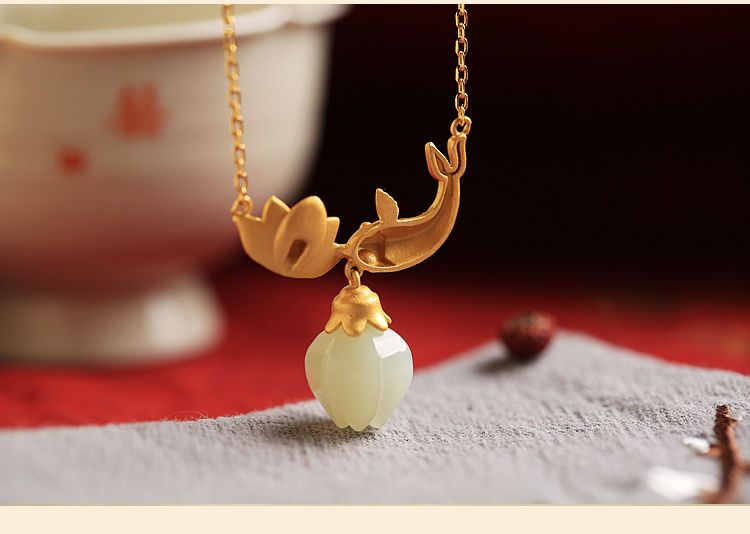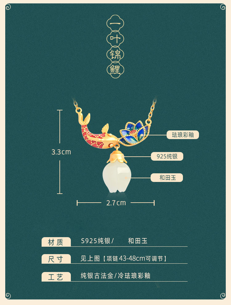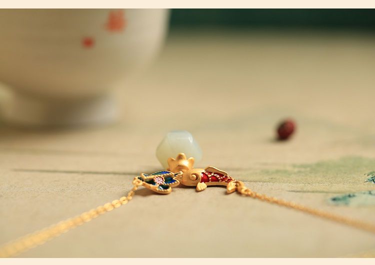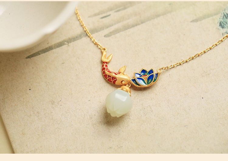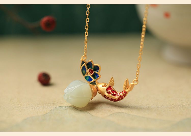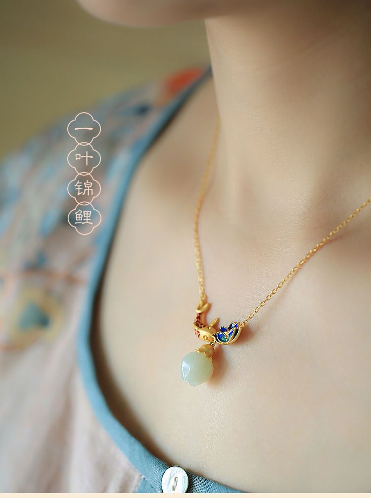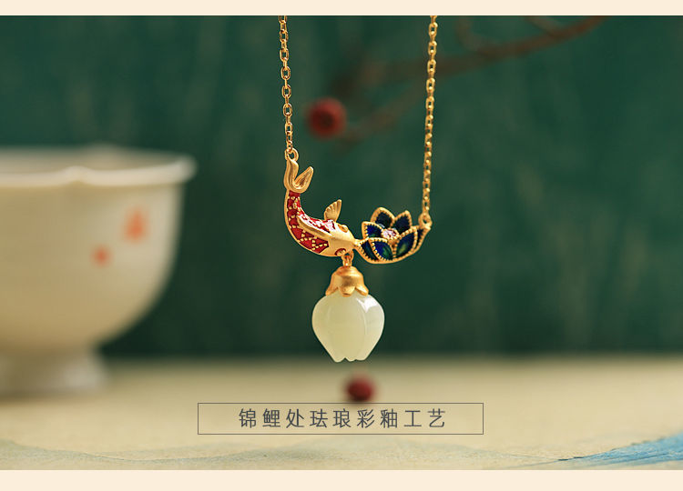 s925纯银莲花锦鲤吊坠项链女小众设计2022新款转运锁骨链高级感