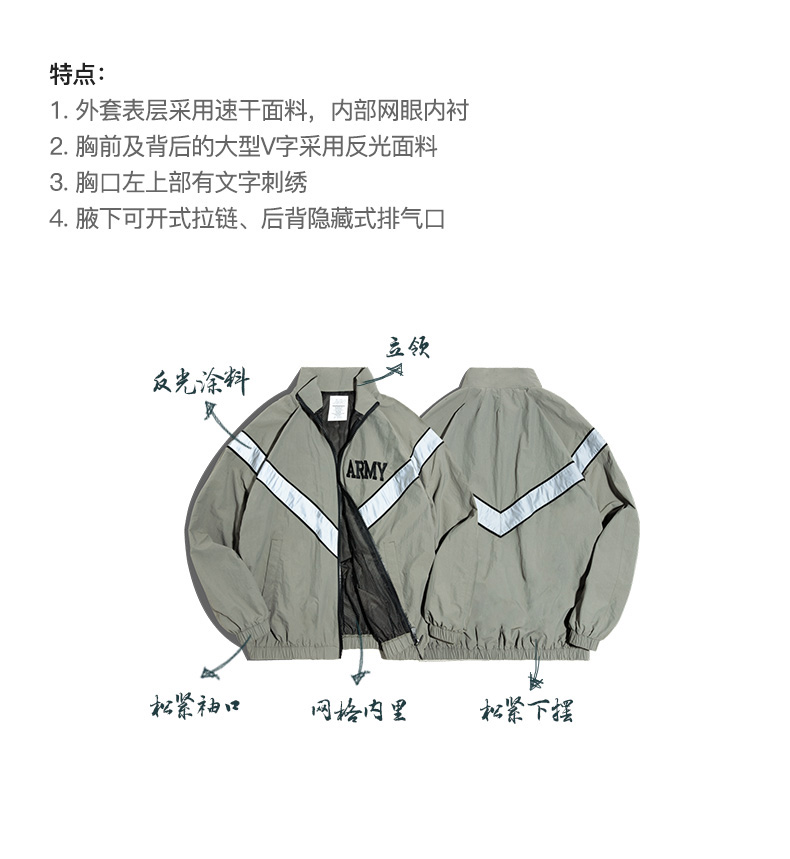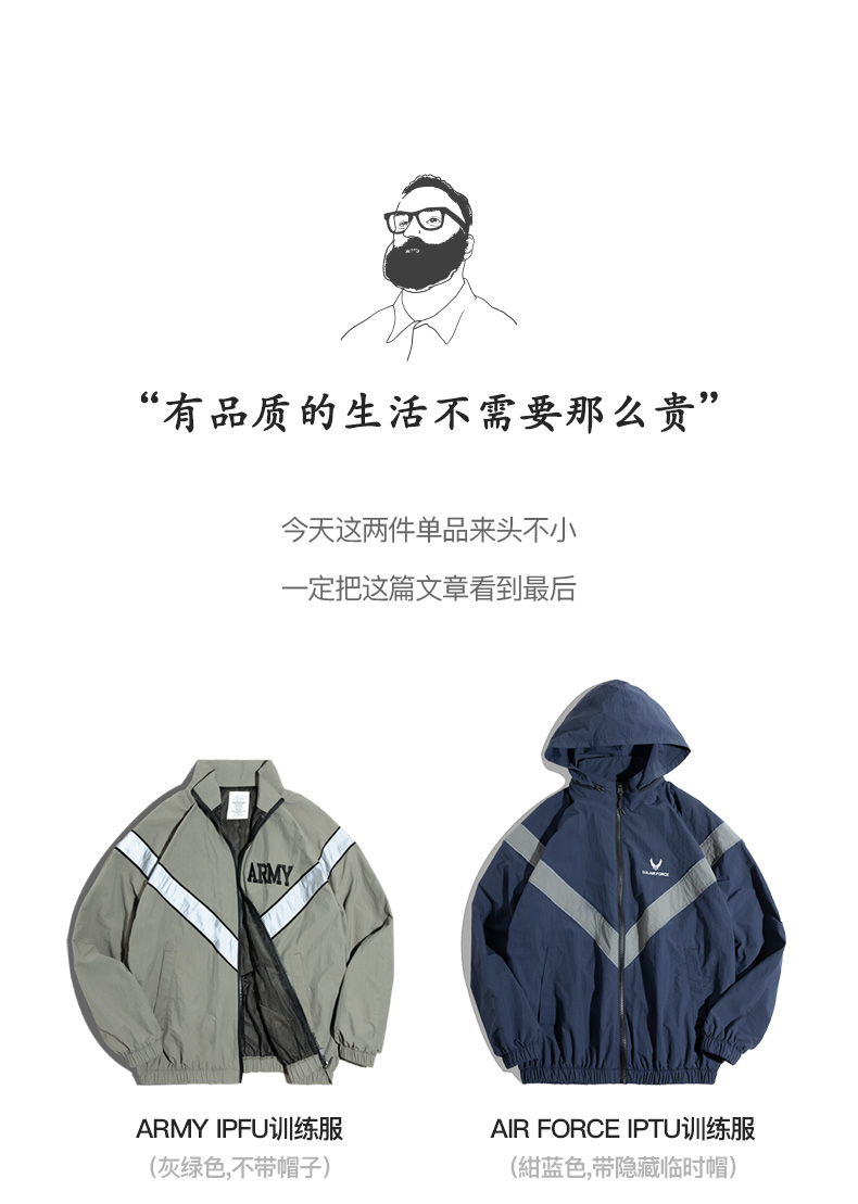 工装优选 ARMY飞行员夹克训练服IPFU风反光连帽速干外套男潮春秋