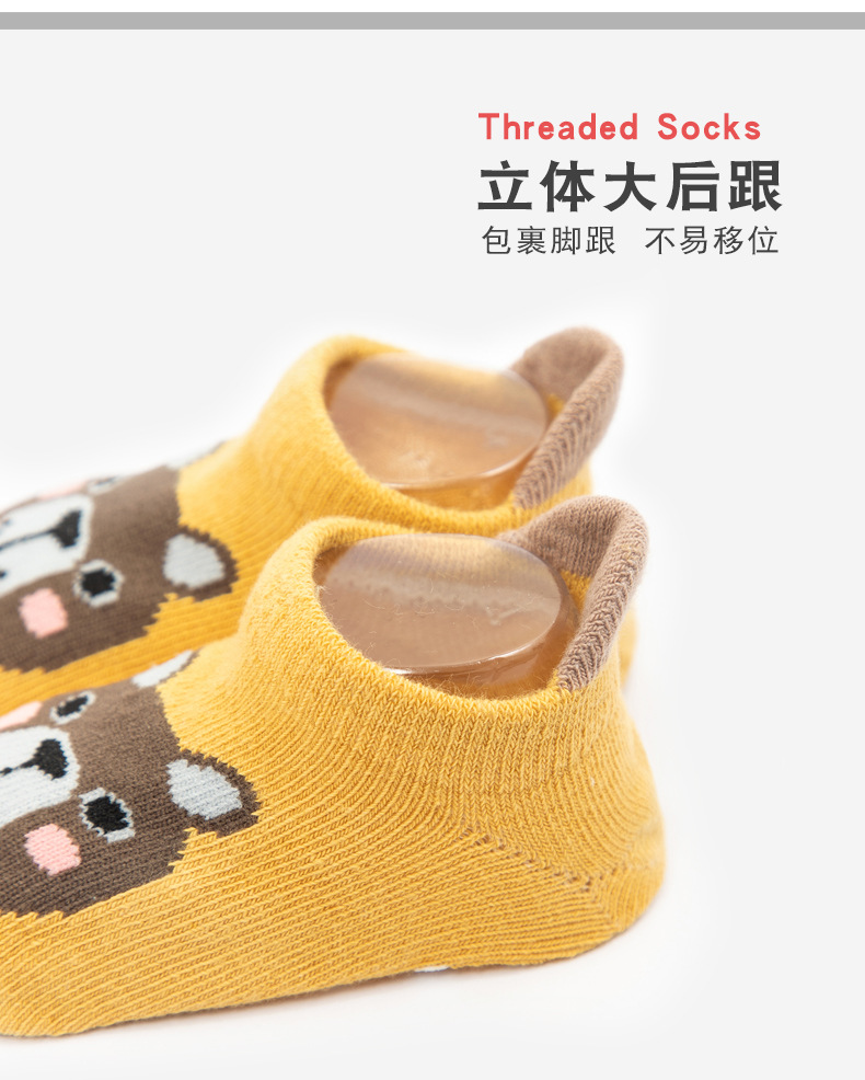 【3双装 俏皮可爱 安全防滑】新款立体卡通低帮地板袜婴幼儿小童宝宝蹦床袜子大后跟点胶船袜