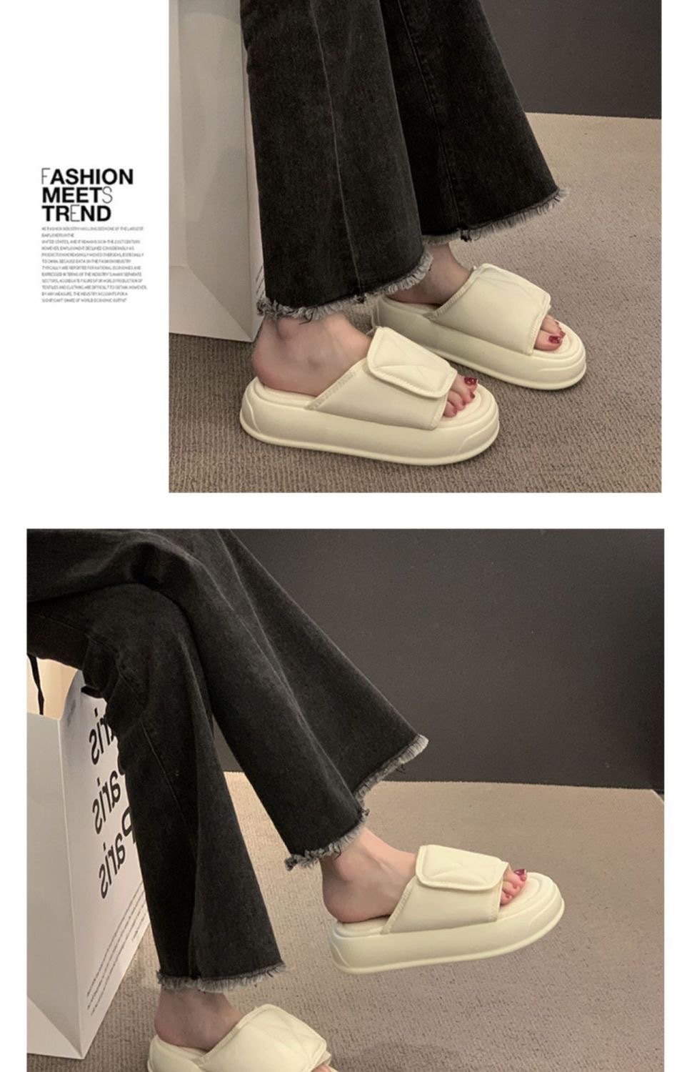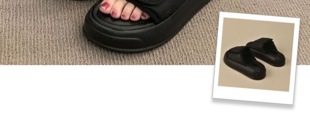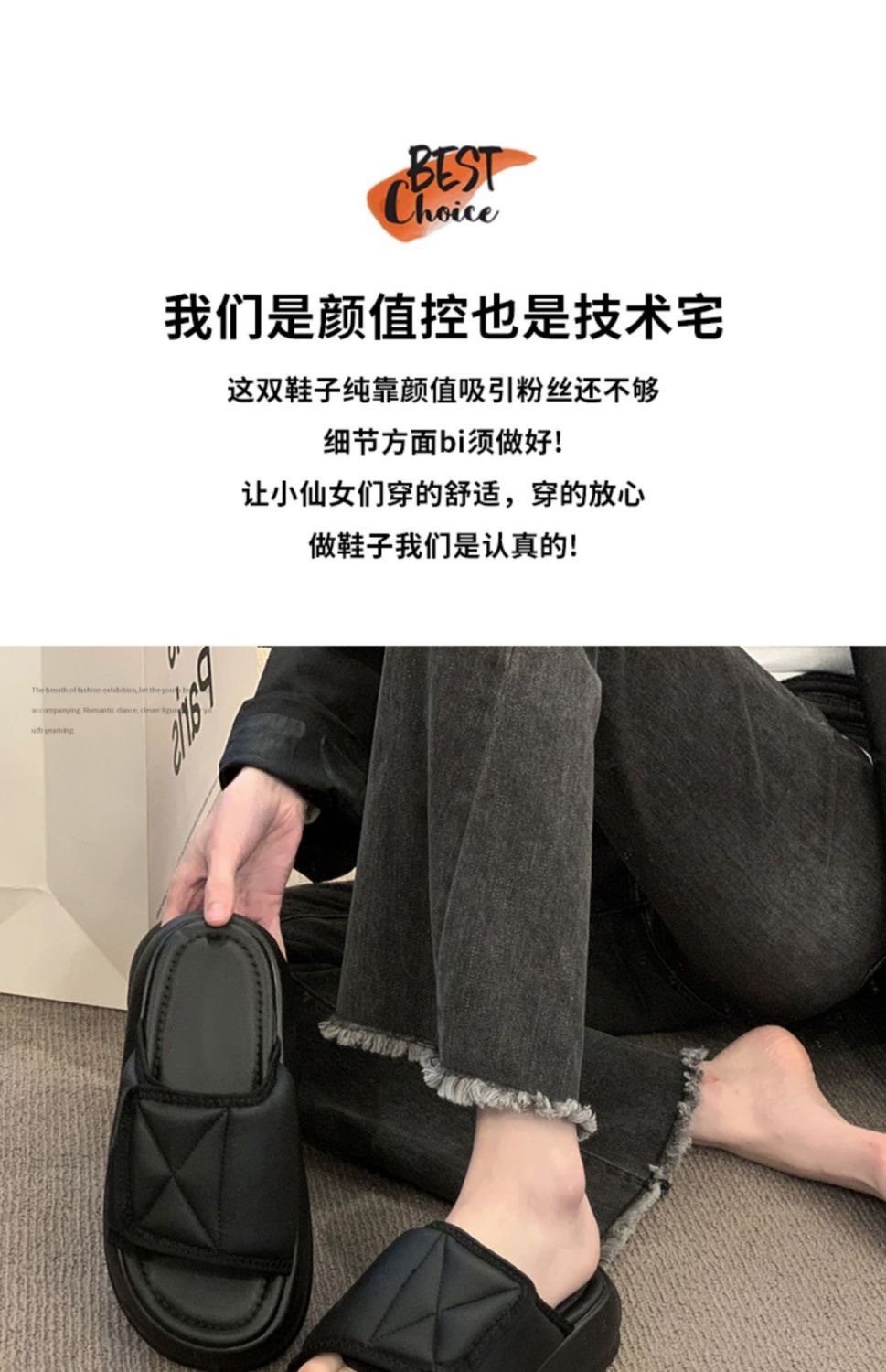 【厚底外穿魔术贴拖鞋】厚底外穿拖鞋女夏魔术贴,亲肤透气舒适内里细腻面料,高级感踩屎感松糕小个子防滑沙滩凉拖鞋女QQ