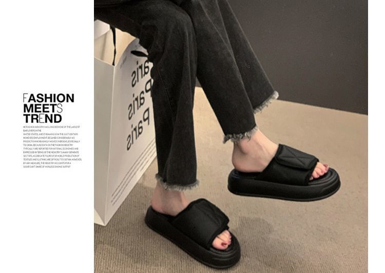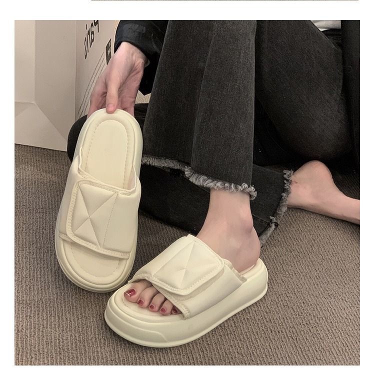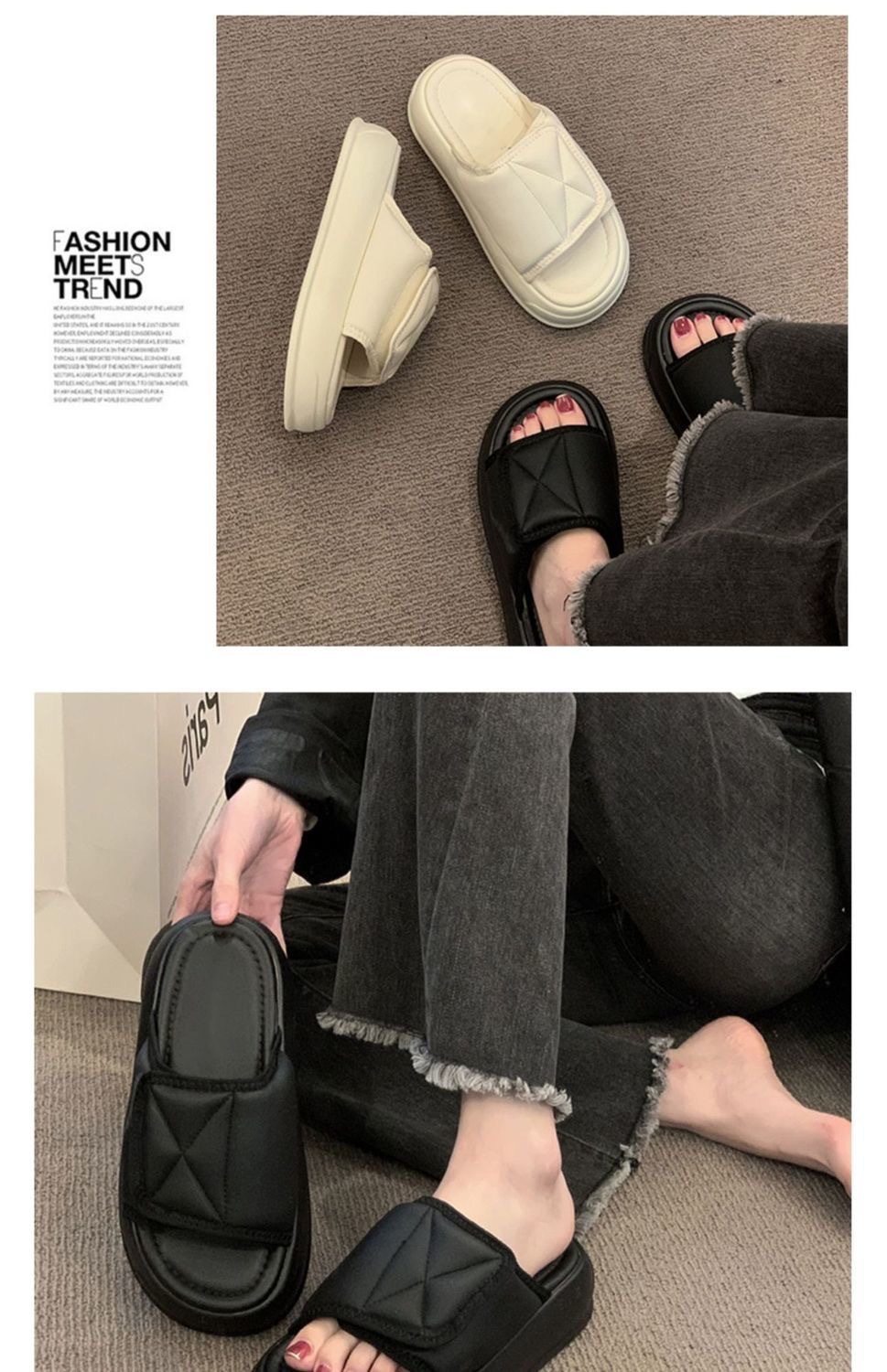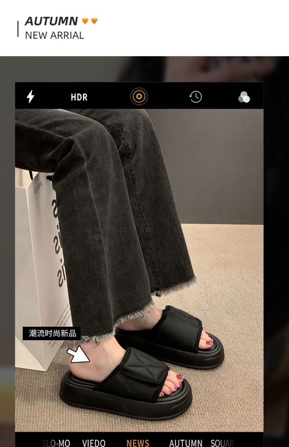 【厚底外穿魔术贴拖鞋】厚底外穿拖鞋女夏魔术贴,亲肤透气舒适内里细腻面料,高级感踩屎感松糕小个子防滑沙滩凉拖鞋女QQ