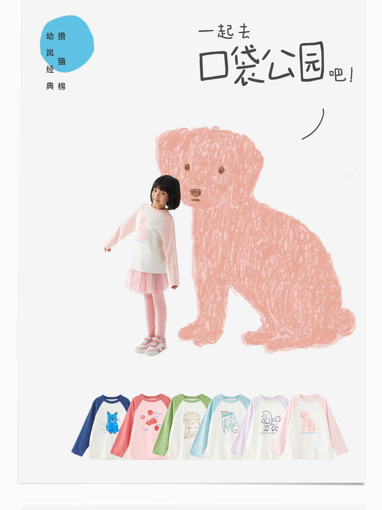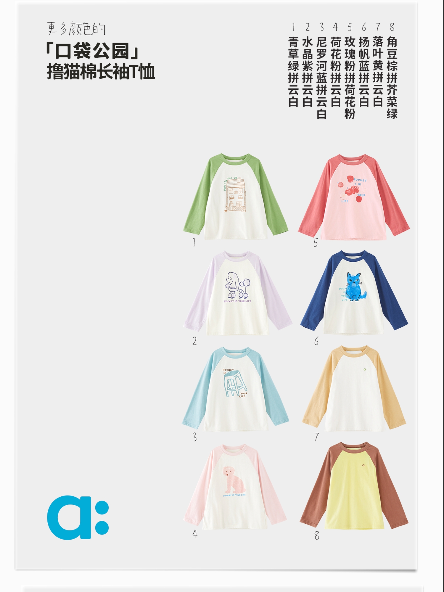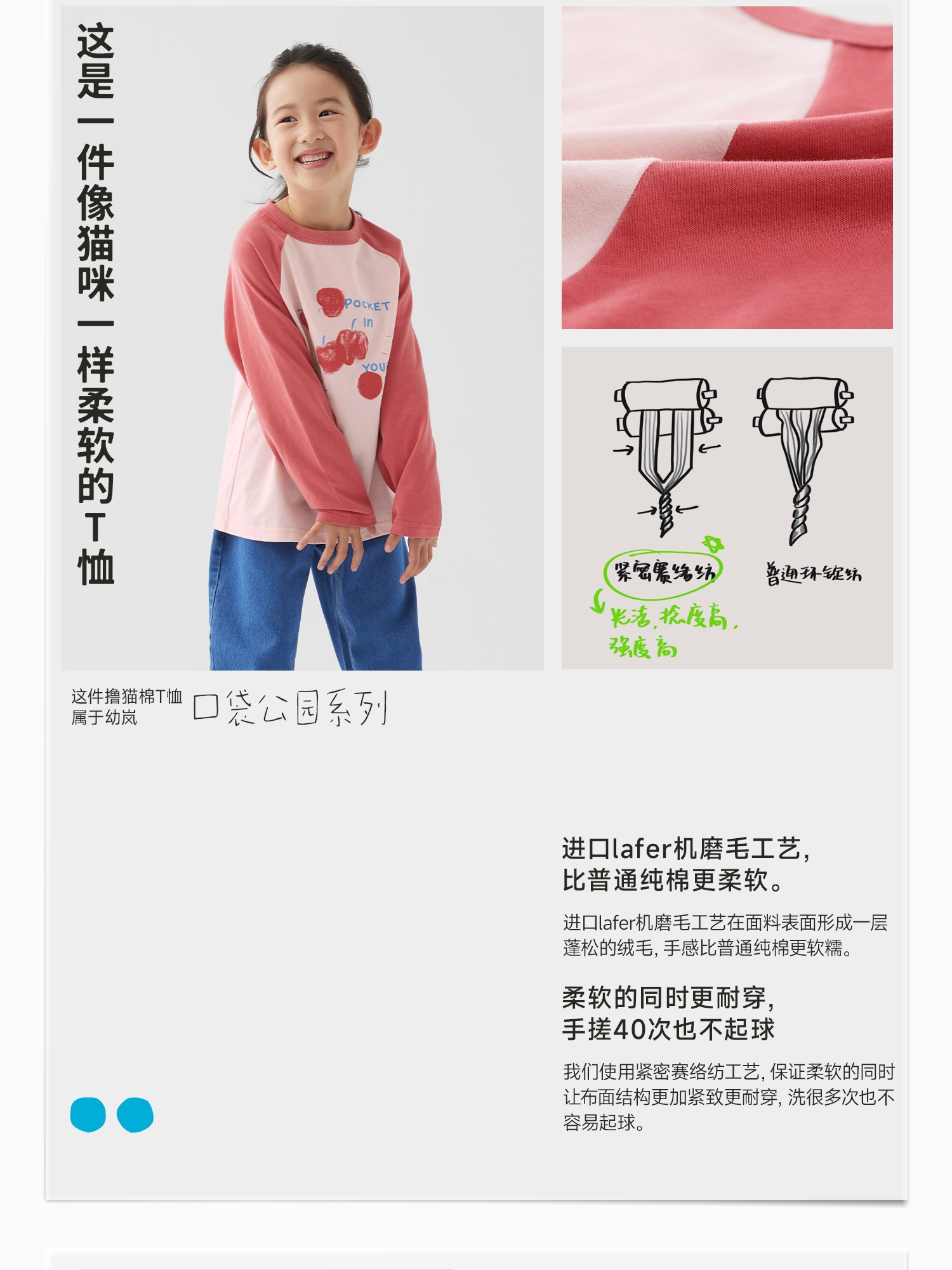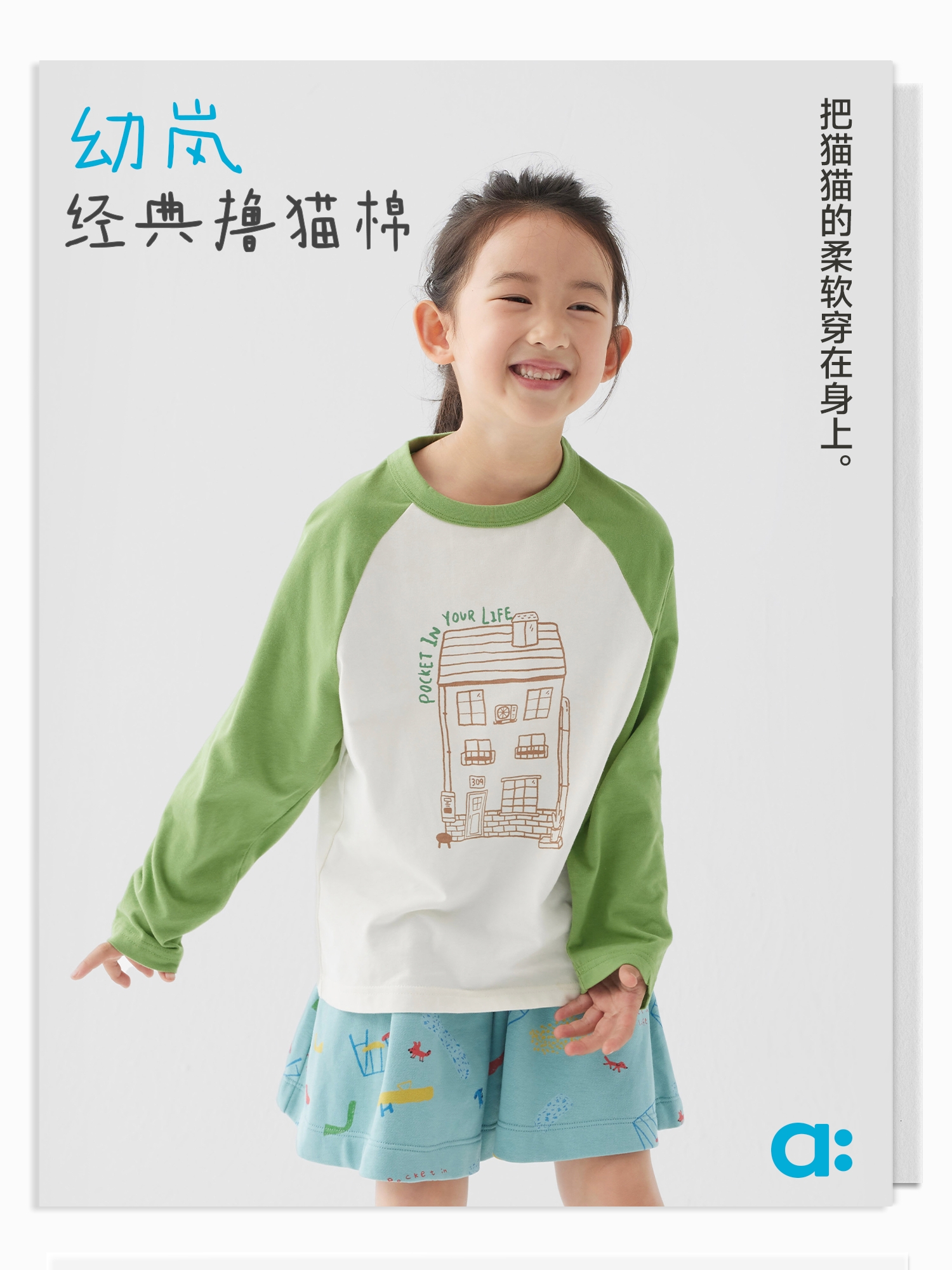 【春Vol.1】幼岚「经典撸猫棉」舒适柔软长袖T恤插肩袖24春季新款儿童T恤ZY