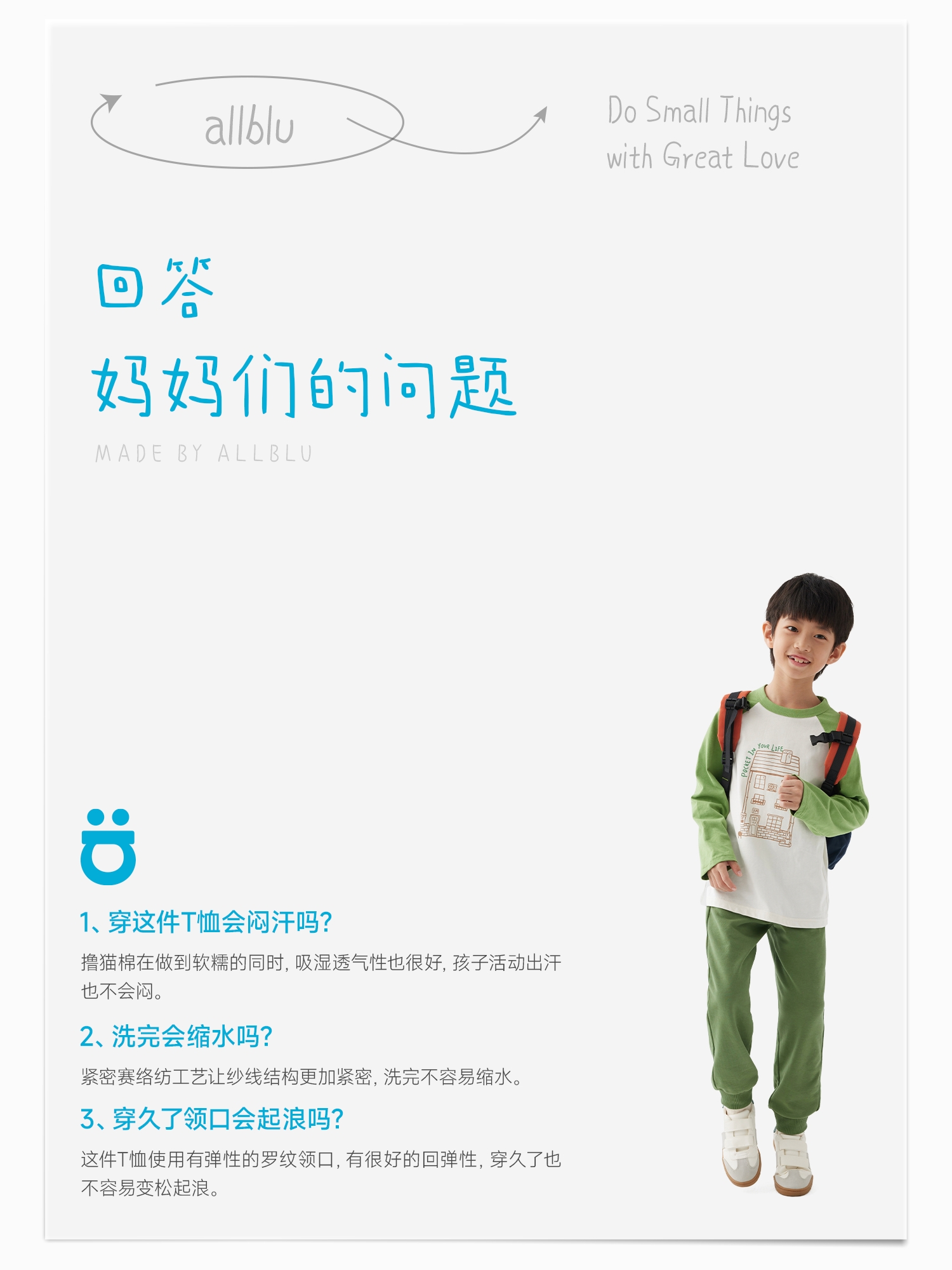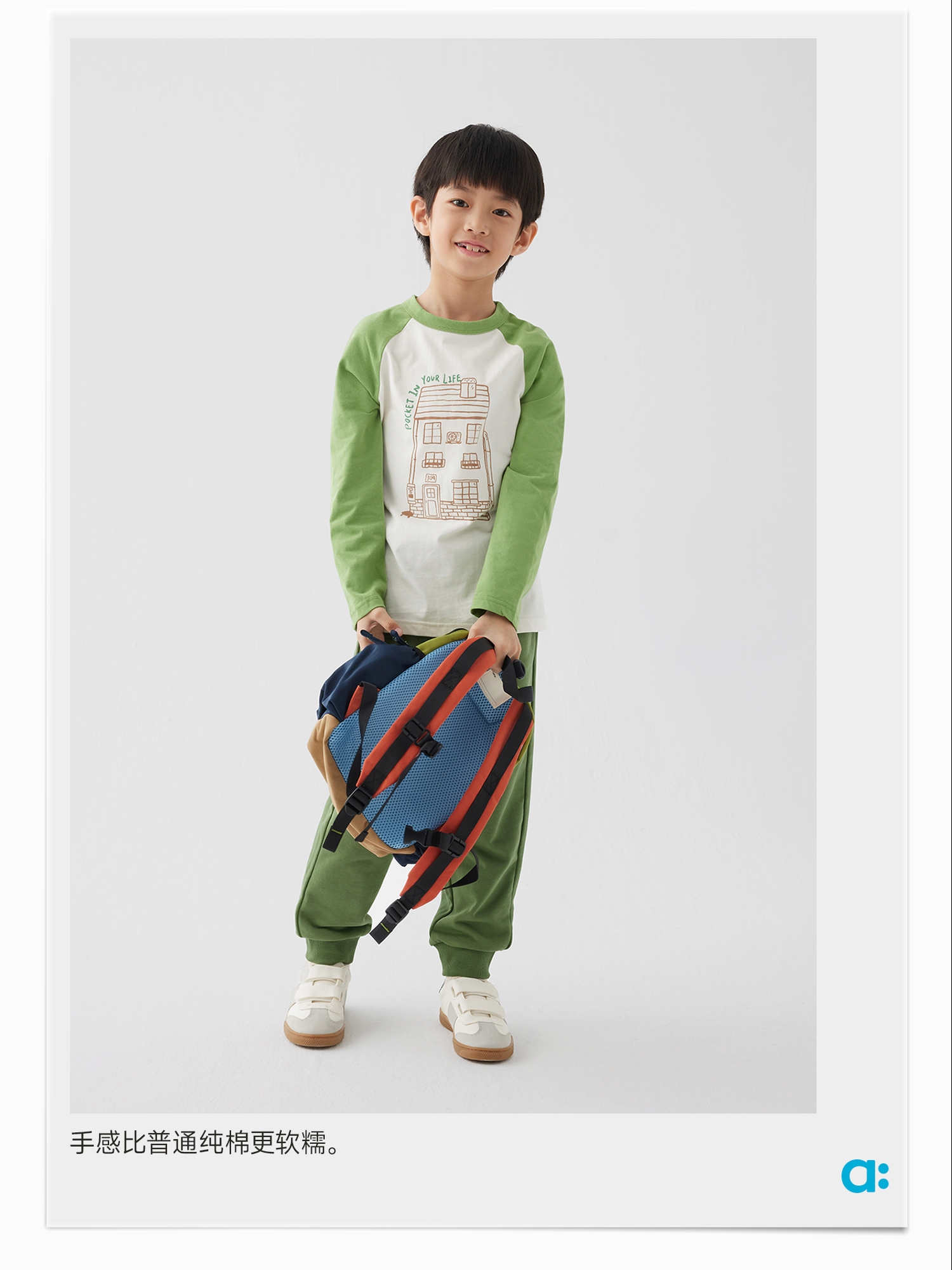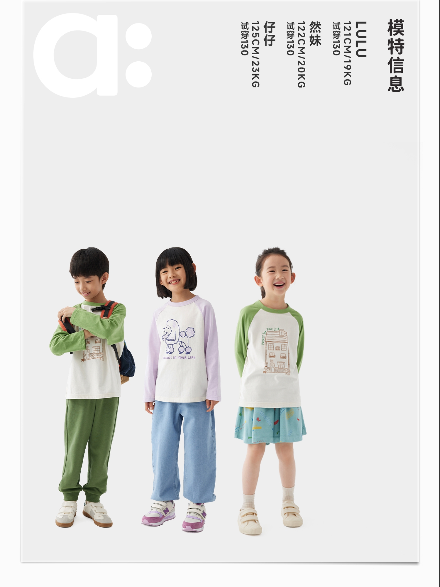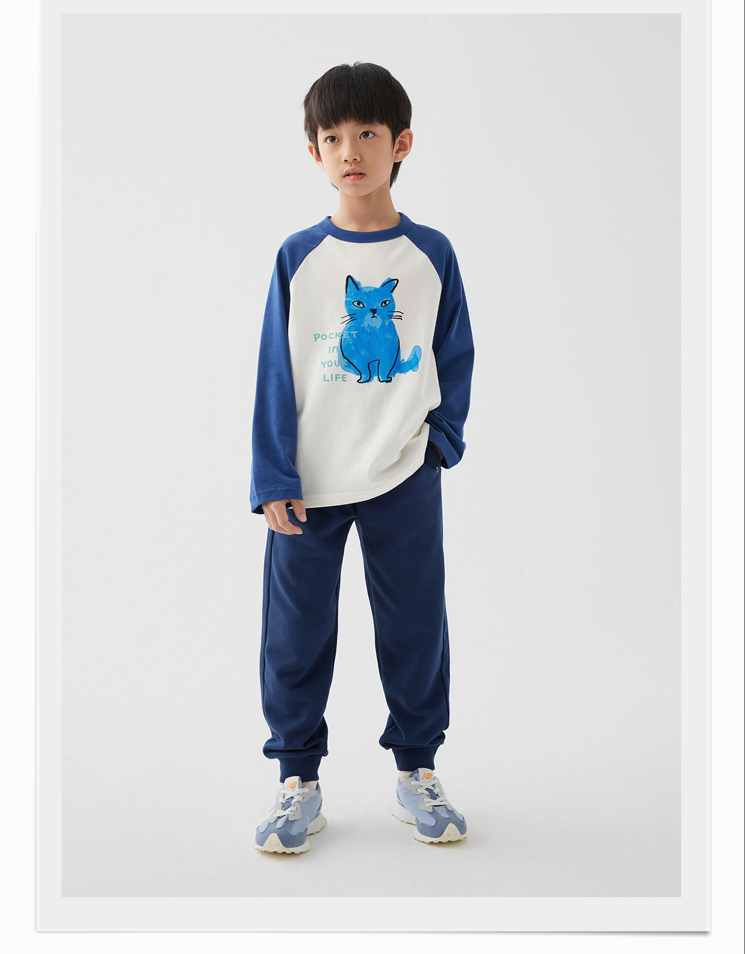 【春Vol.1】幼岚「经典撸猫棉」舒适柔软长袖T恤插肩袖24春季新款儿童T恤ZY