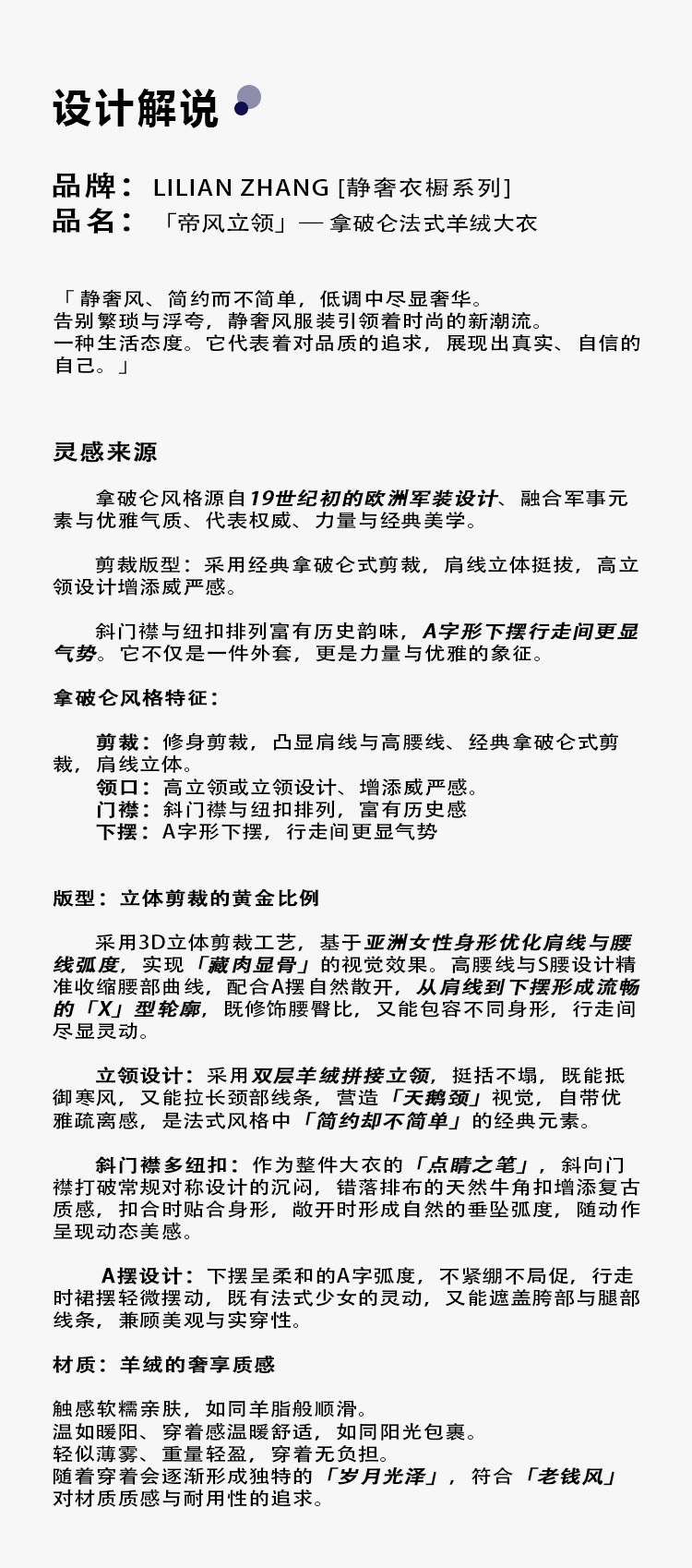 定制—静奢风—帝风立领—拿破仑单排扣法式秋冬气场羊绒大衣2506013