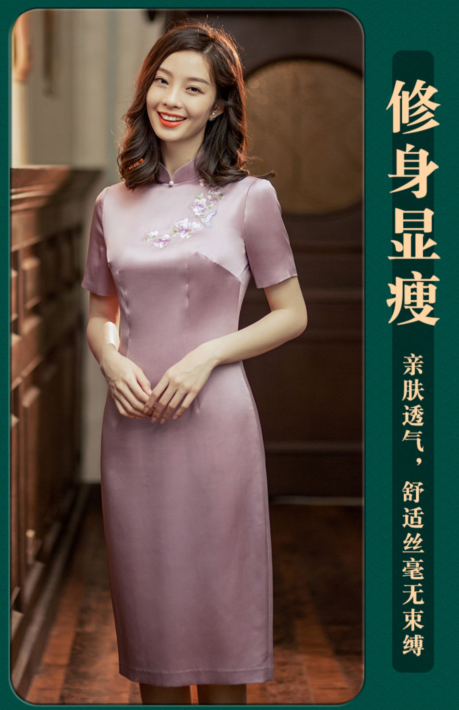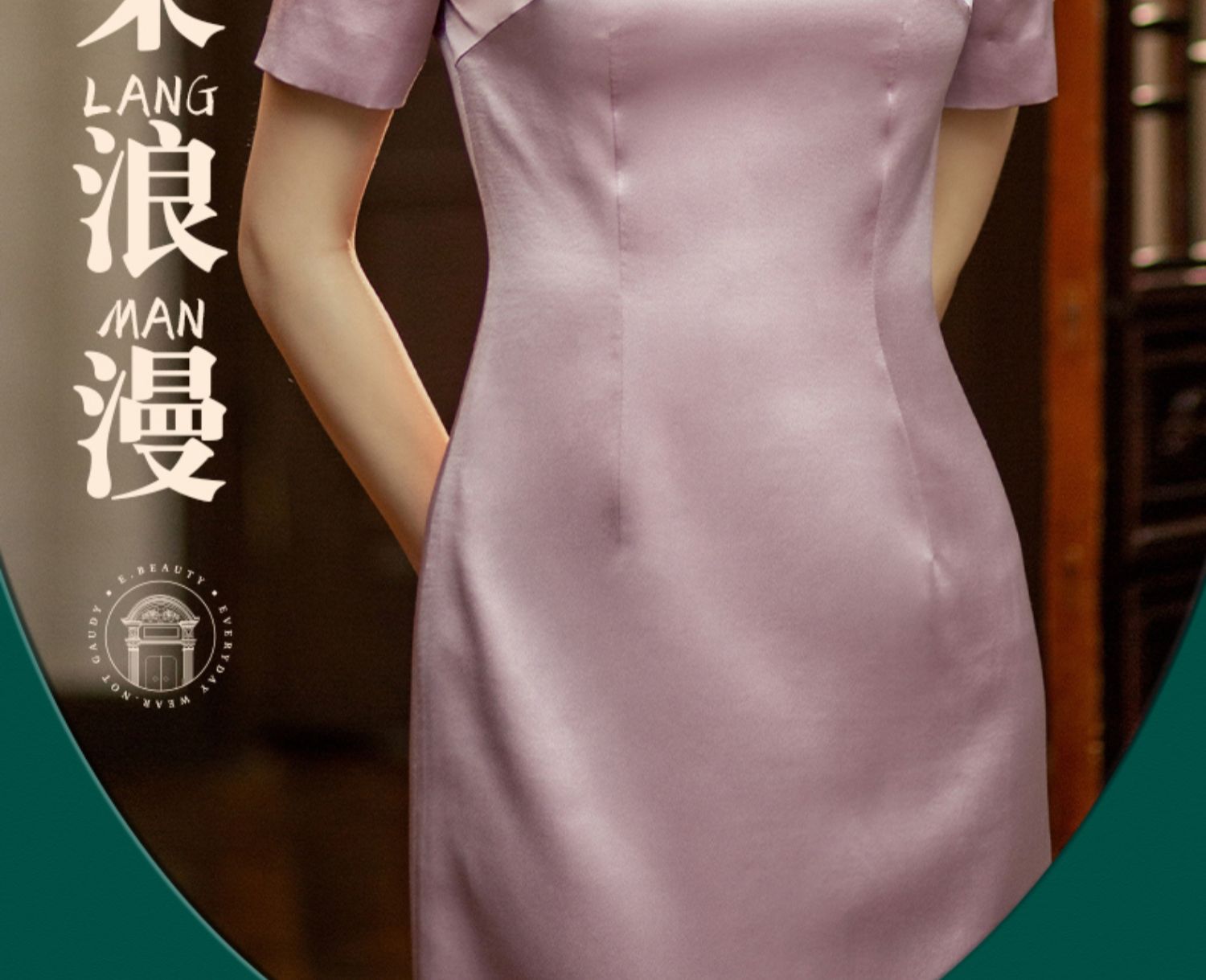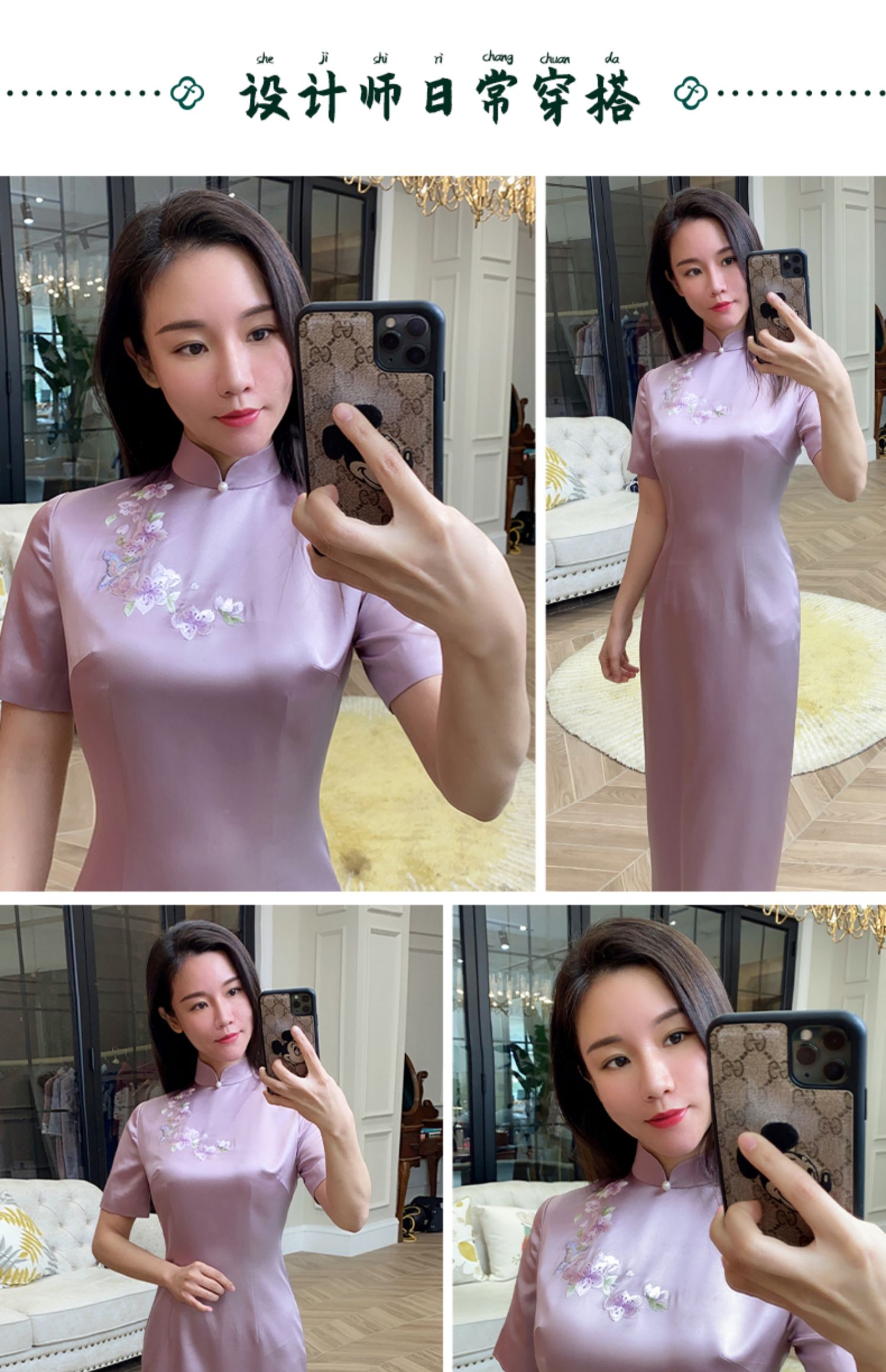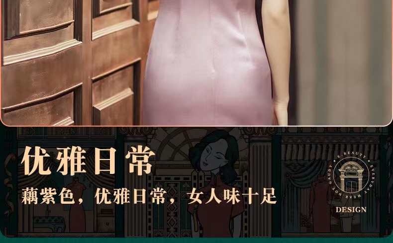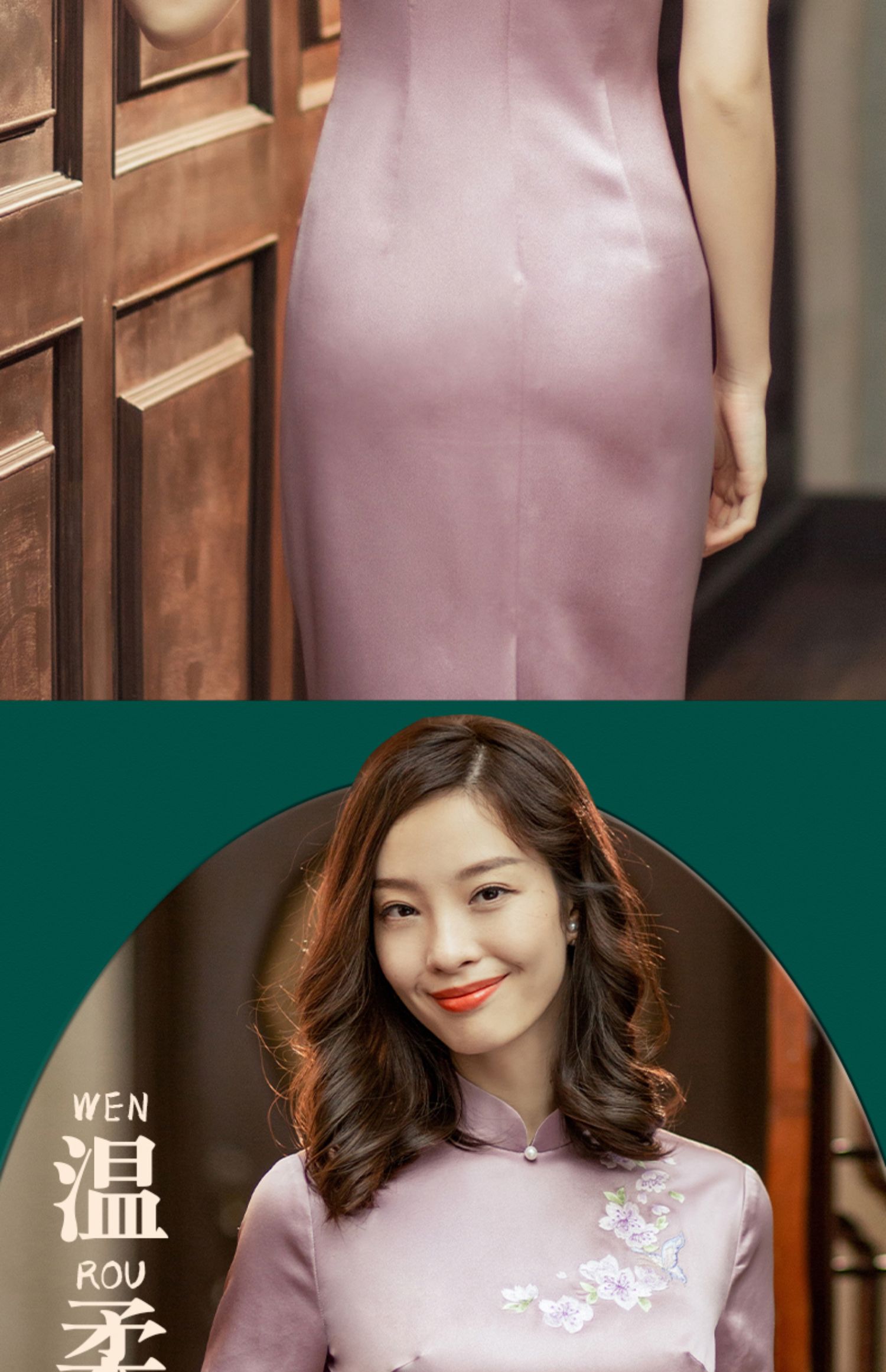 服装除了款式需要挑选外,颜色也是必须考虑的因素,这款旗袍明月给大家选择的是百搭藕紫色,我最爱的颜色就是紫色,但明艳的紫色确实不适合日常穿在身上。藕紫色就很百搭,独特又不高调。