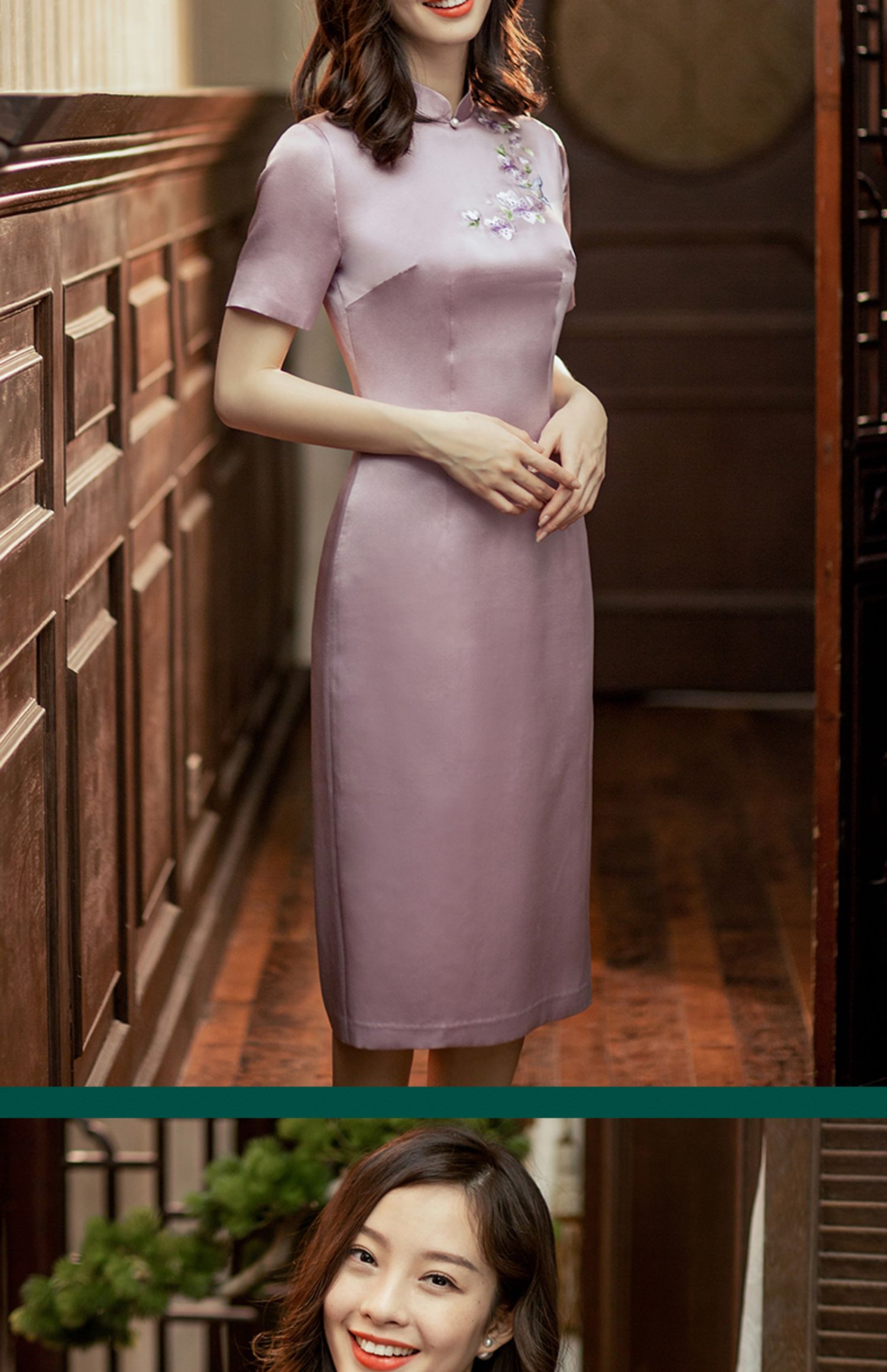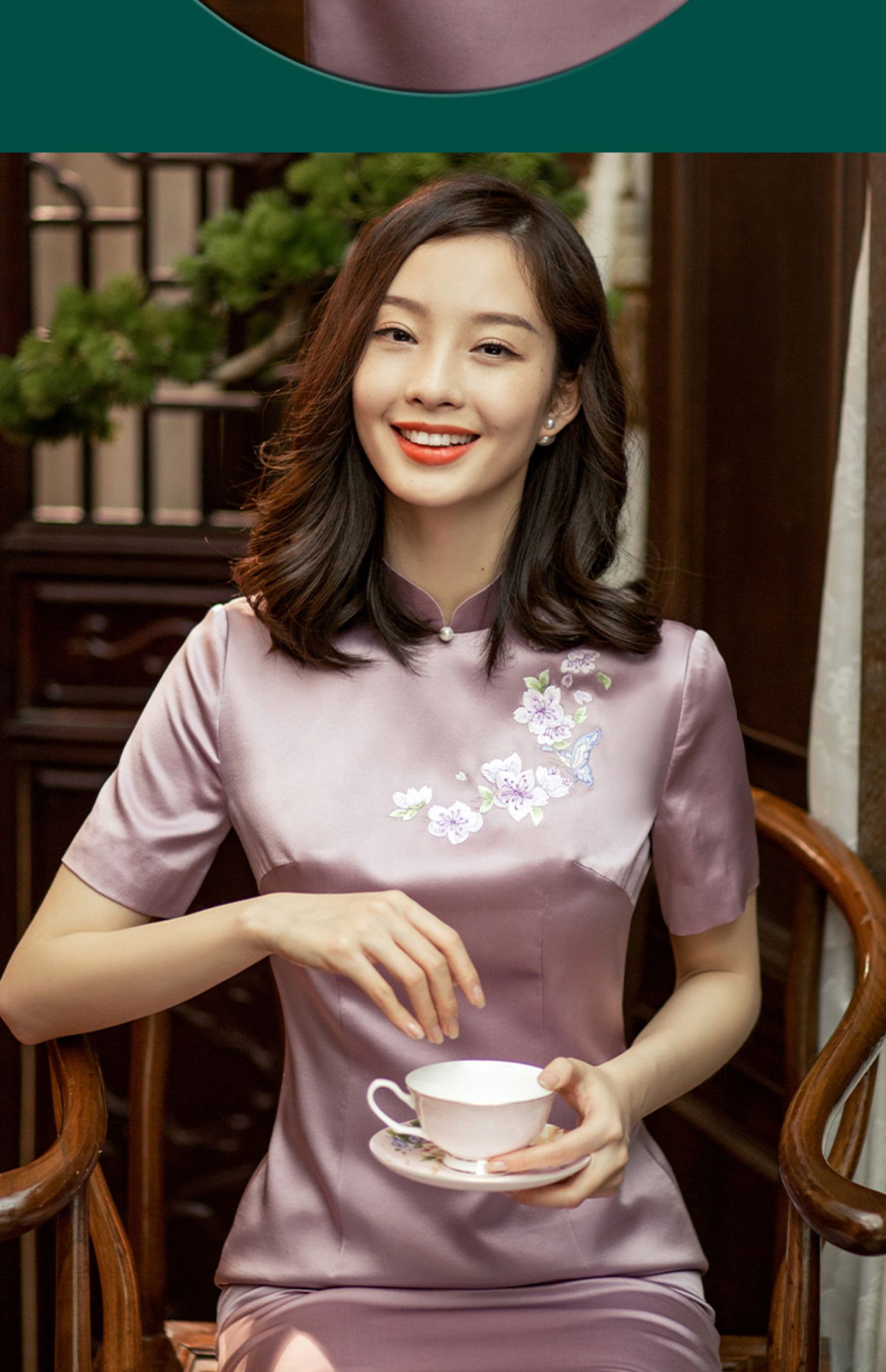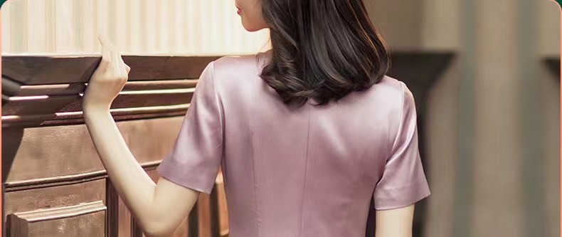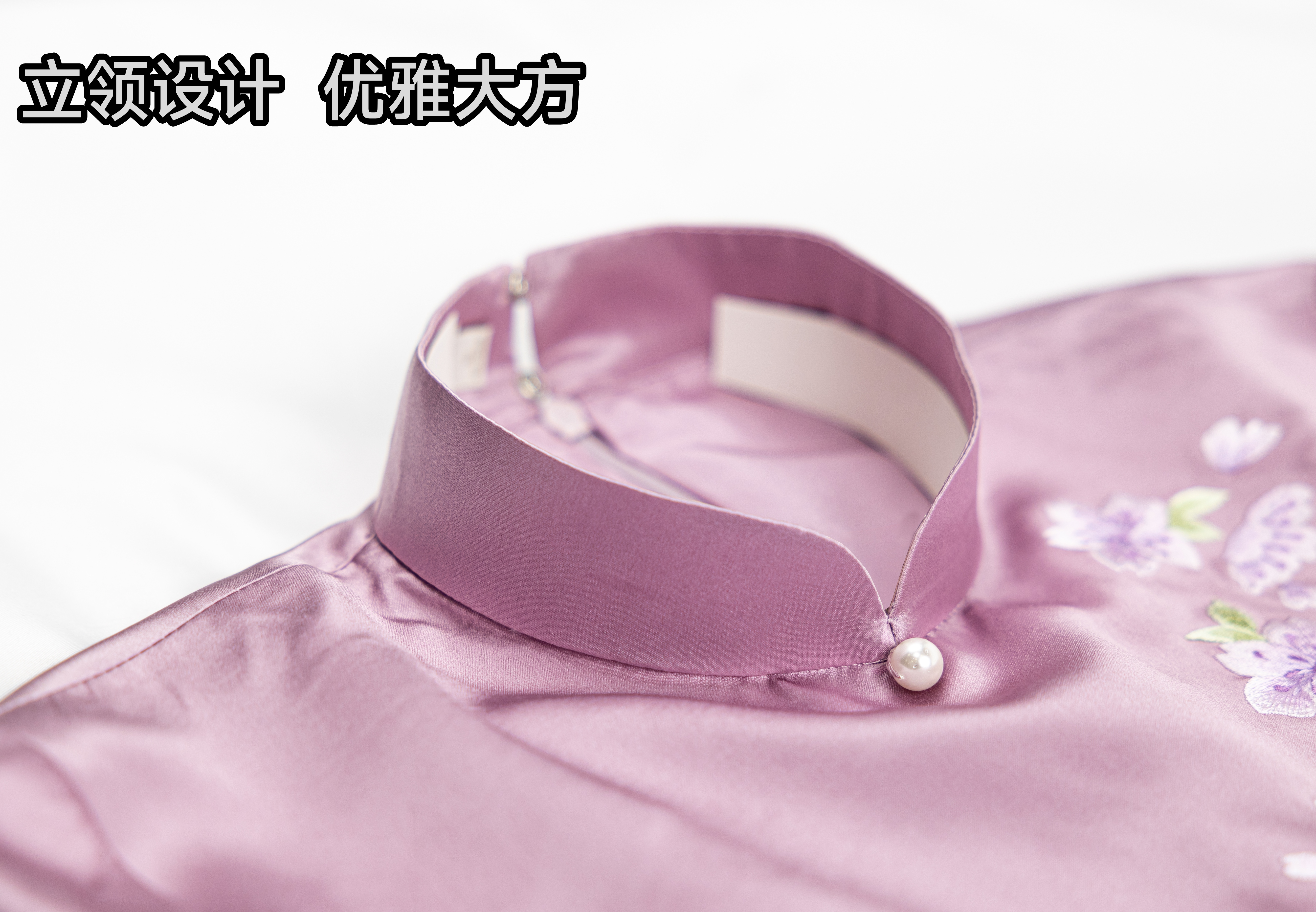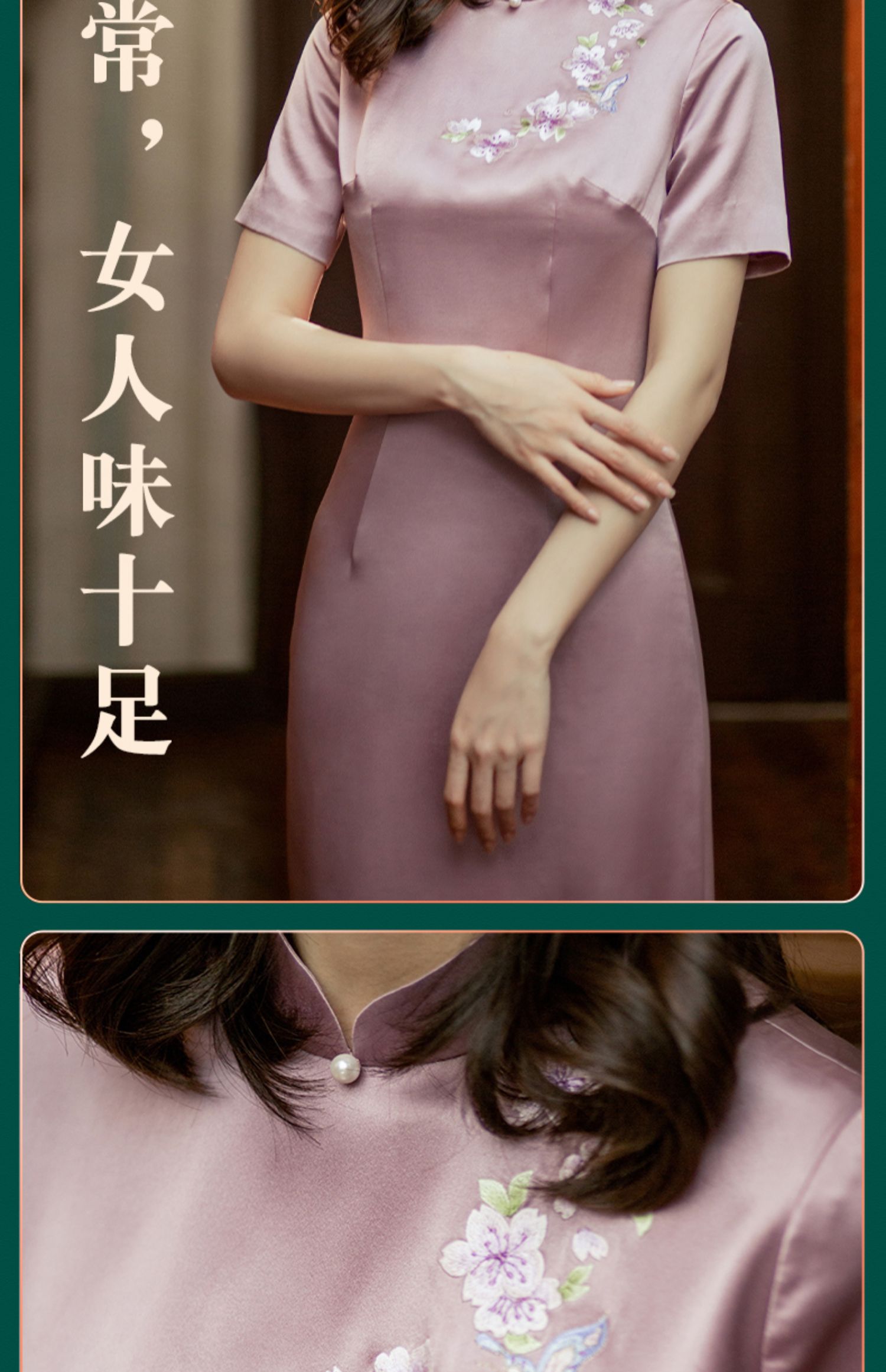 服装除了款式需要挑选外,颜色也是必须考虑的因素,这款旗袍明月给大家选择的是百搭藕紫色,我最爱的颜色就是紫色,但明艳的紫色确实不适合日常穿在身上。藕紫色就很百搭,独特又不高调。
