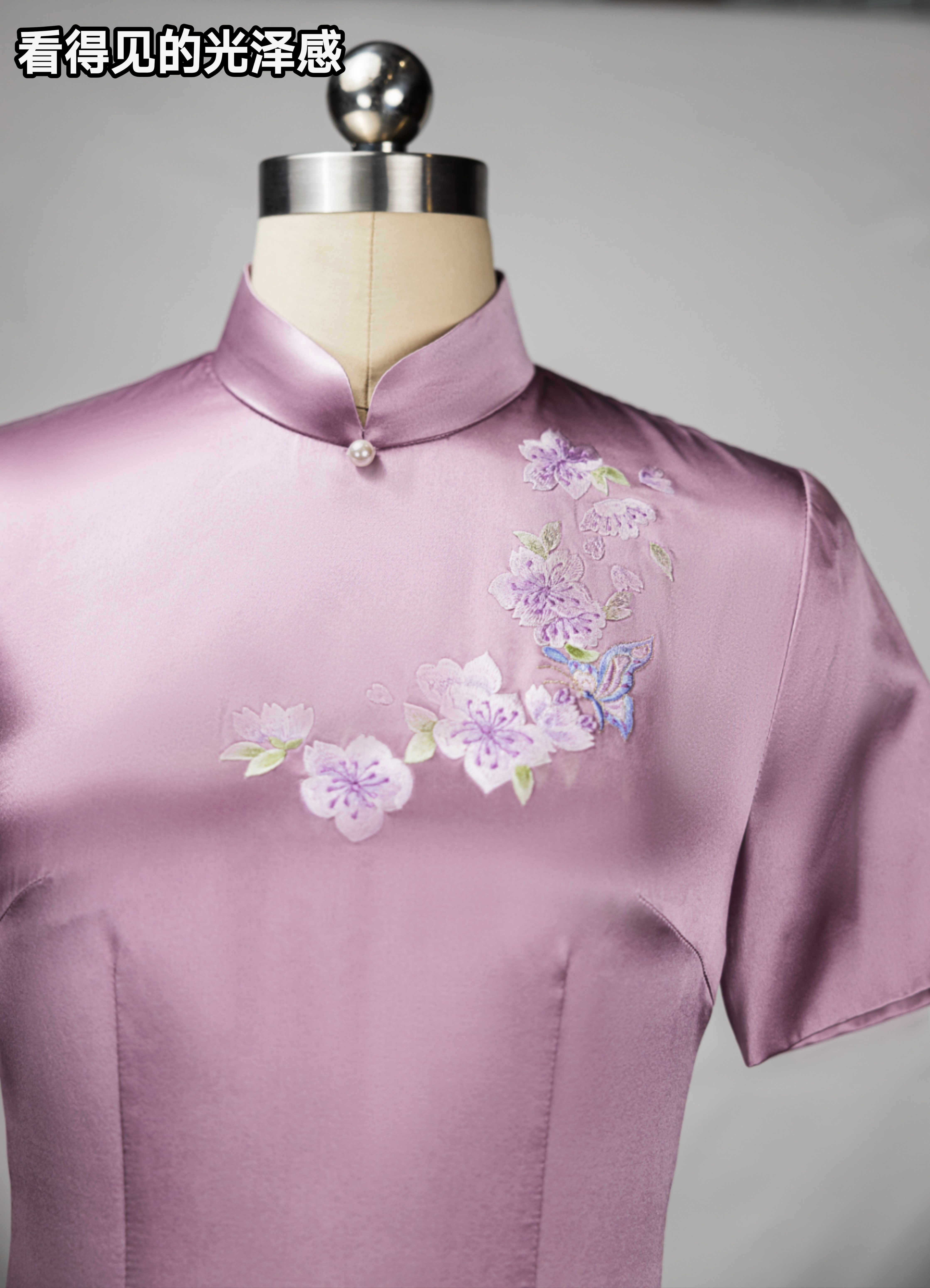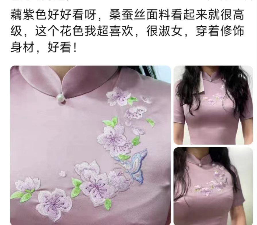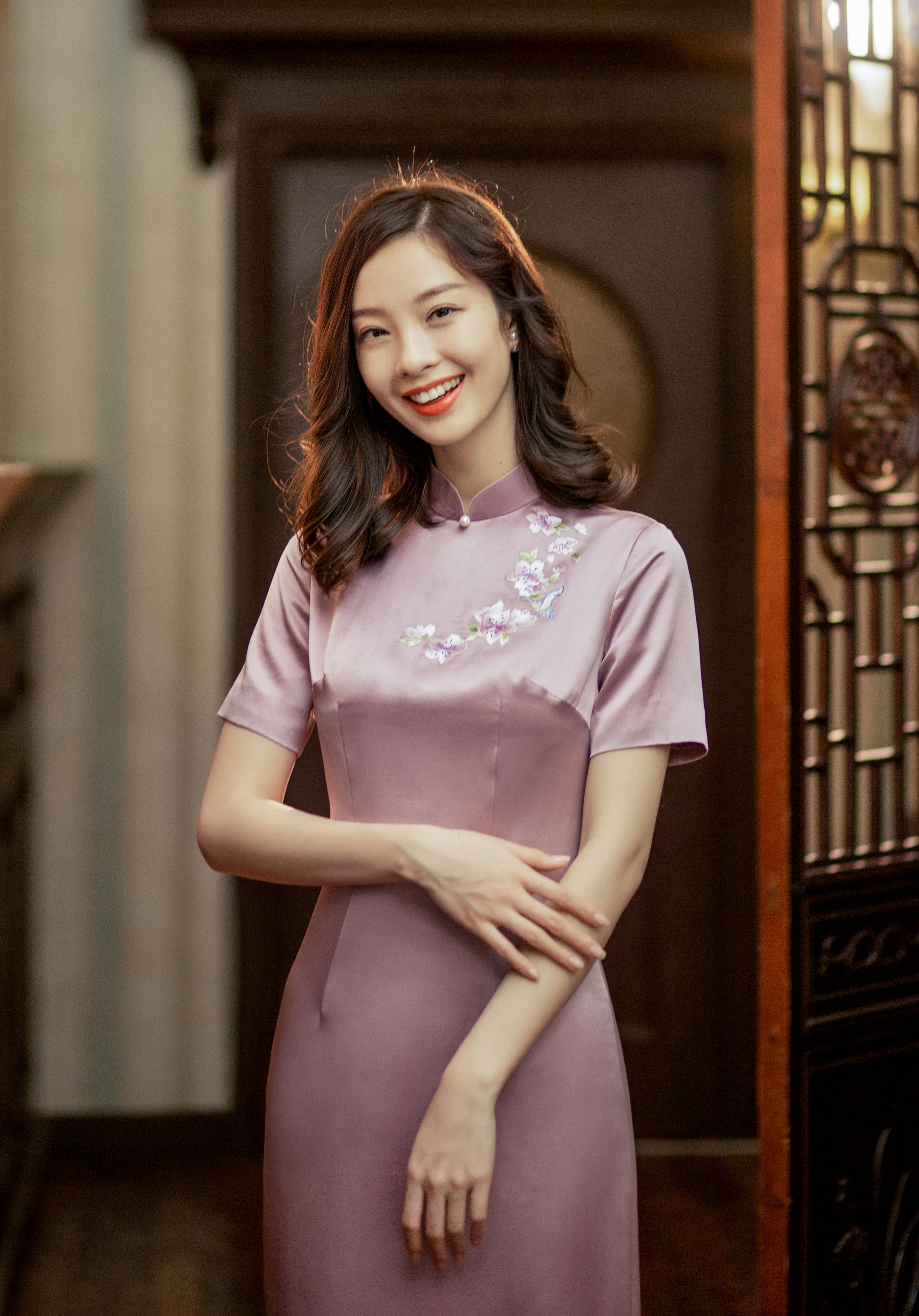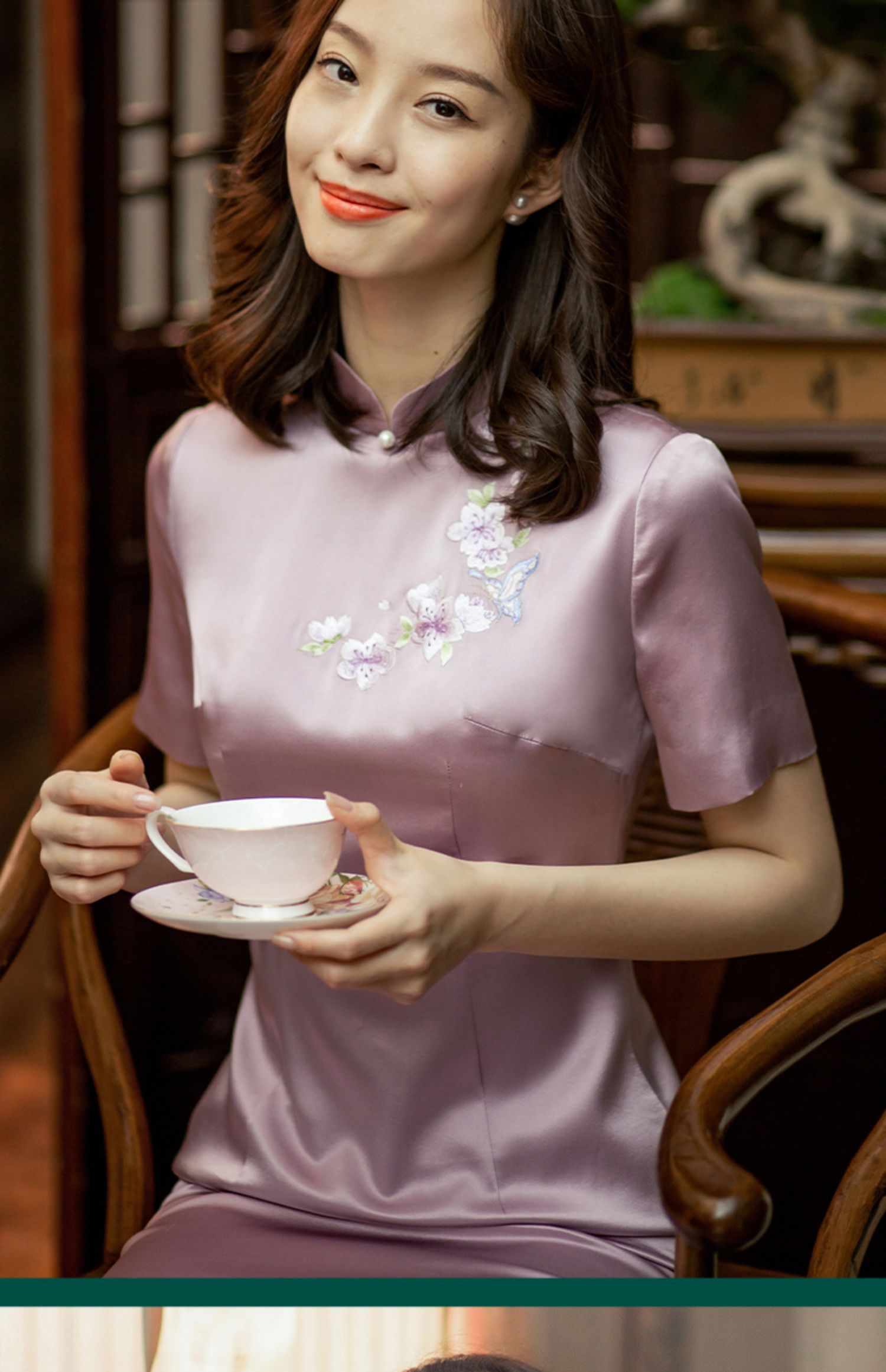 服装除了款式需要挑选外,颜色也是必须考虑的因素,这款旗袍明月给大家选择的是百搭藕紫色,我最爱的颜色就是紫色,但明艳的紫色确实不适合日常穿在身上。藕紫色就很百搭,独特又不高调。