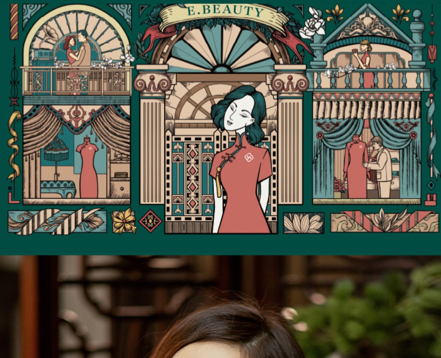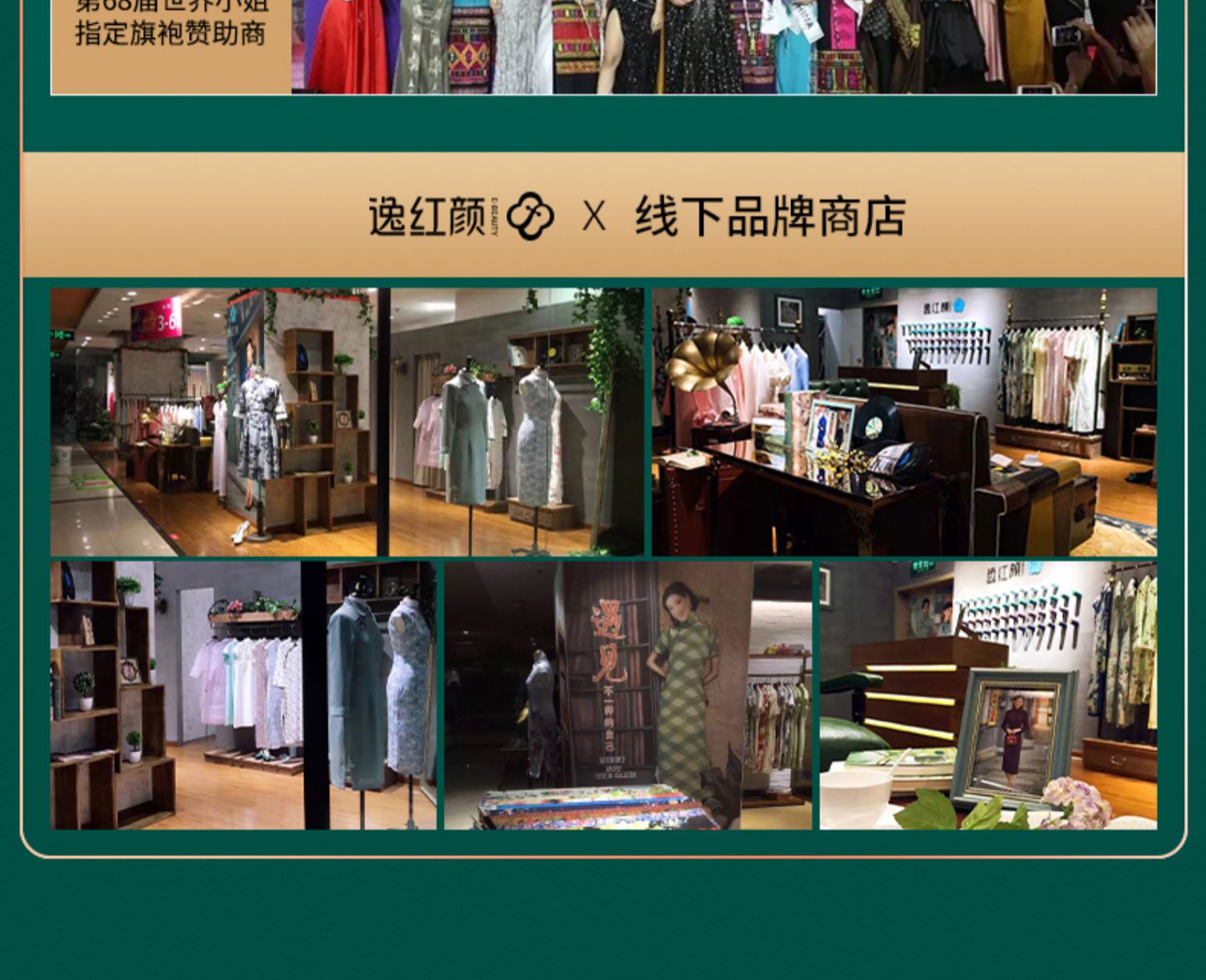 这款旗袍点睛之笔就是蝶恋花。一袭纯色旗袍,胸前蝶恋花作为点缀增添了生机,让人仿佛置身花园中,花香四溢。一方面表达美好的祝愿,象征爱情美好富贵花开,另一方面蝴是”福“的谐音,表示福在眼前之意。