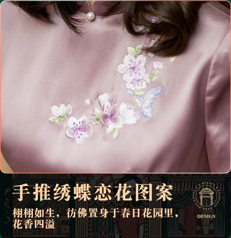 如果让明月选择一件日常穿搭显气质,回头率超高的旗袍,那这件【蝶恋花】当之无愧了。