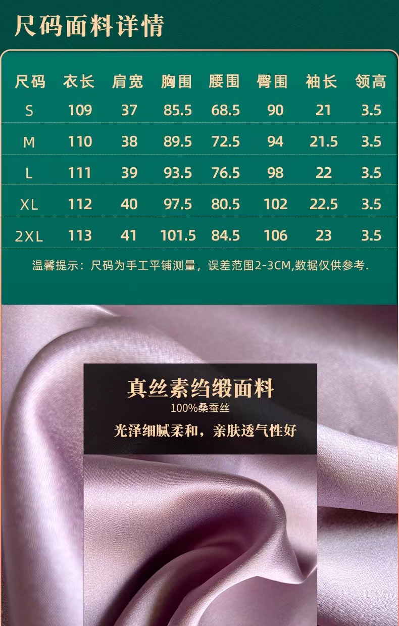双层真丝面料。光泽细腻柔和,亲肤透气,